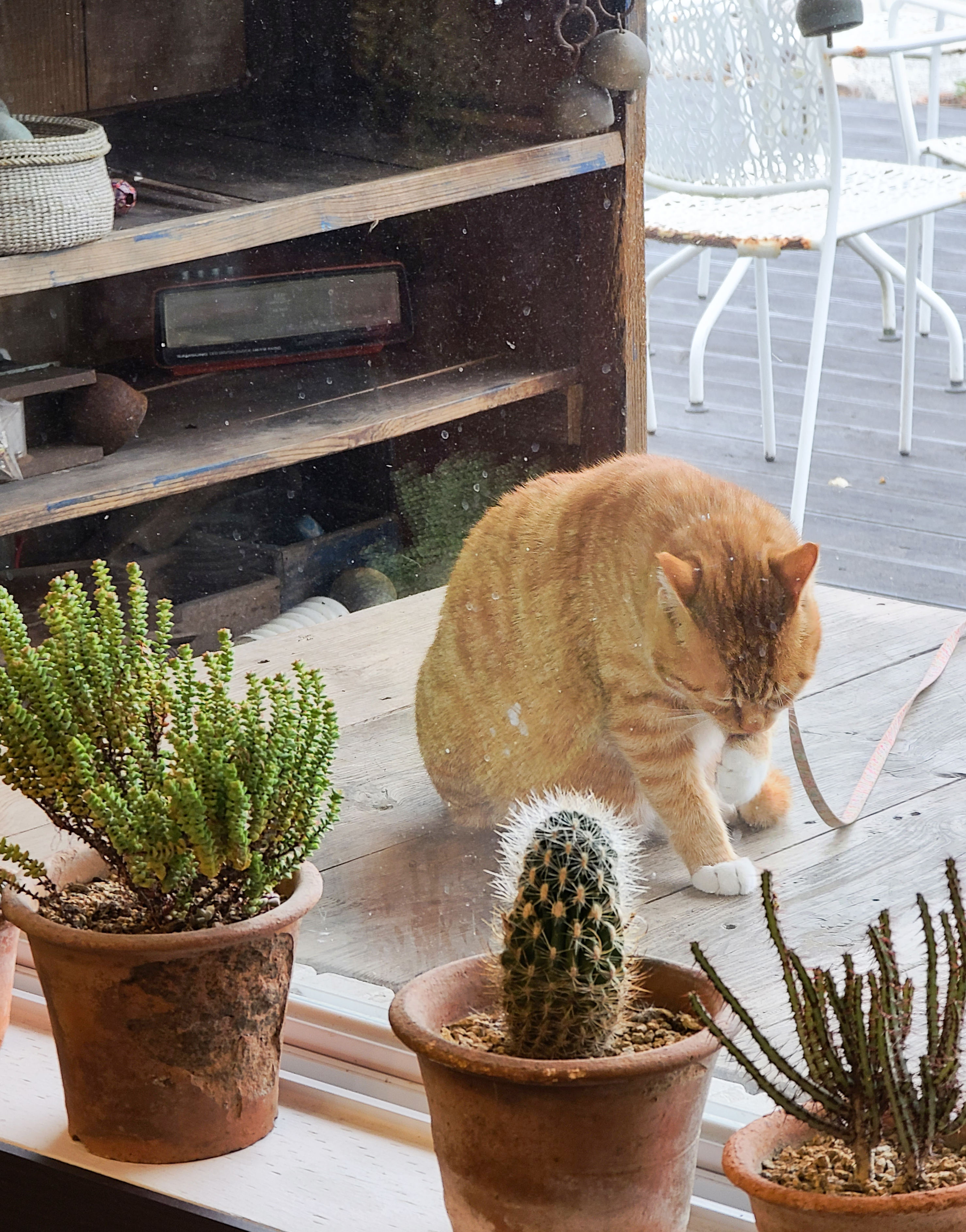 부안 인사동고갤러리 카페에는 마스코트와도 같은 고양이가 있었습니다. 실외에서 기르는 고양이라 냄새는 좀 났지만, 온갖 귀여운 포즈를 취하며 시선을 사로잡더라고요. 귀여워서 사진도 여러 장 찍었습니다.