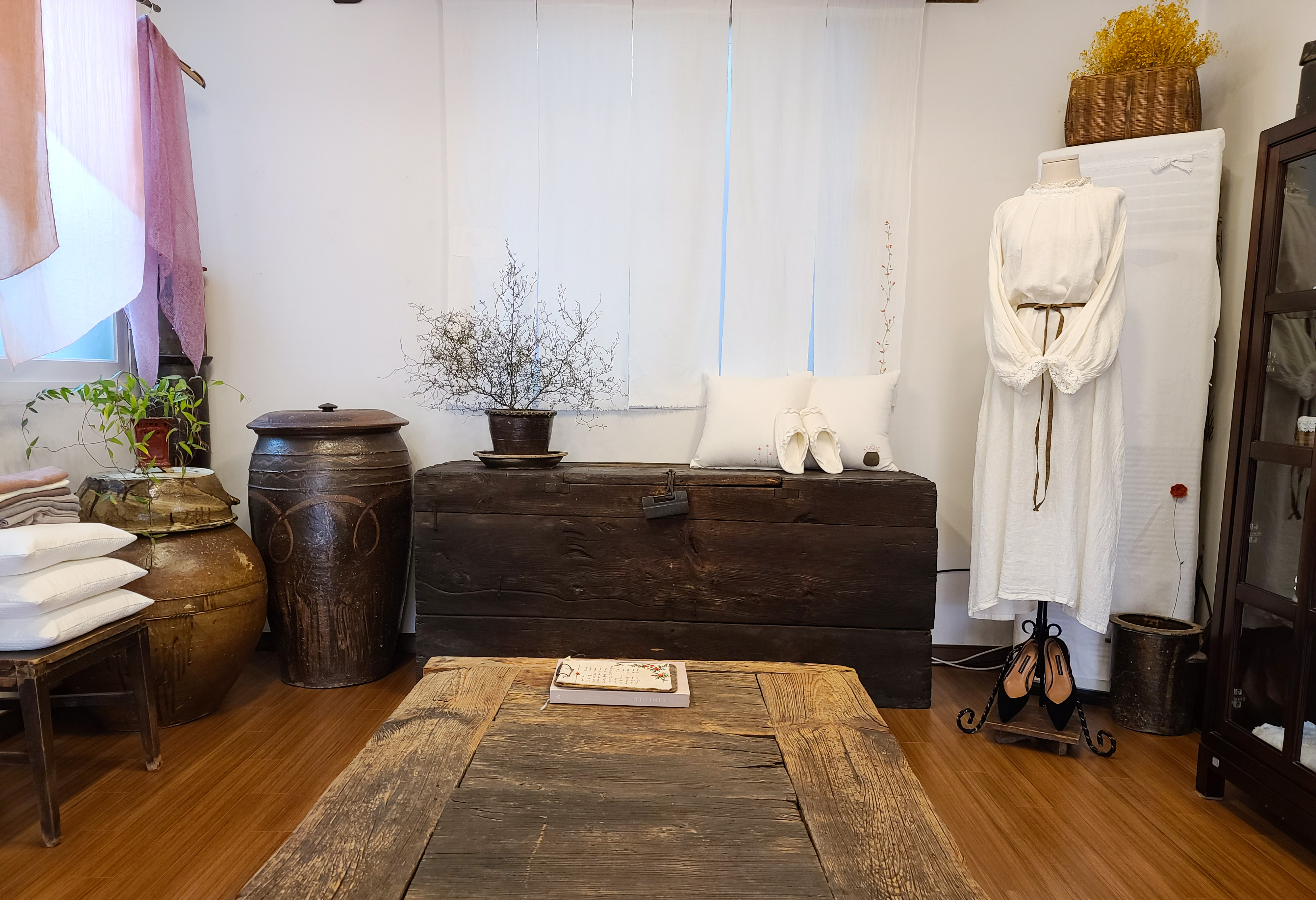 부안 <인사동 고갤러리> 카페는 유튜브 부안타샤아저씨(링크) 를 통해 알게 된 가게이며, 유튜브의 감성적인(?) 구도 선택이 마음에 들어서 제가 사는 곳에서 먼 곳이었지만, 시간을 내어 방문하였습니다. 이 카페는 커피와 음료뿐만이 아니라, 리넨으로 만든 의상도 판매하고 있는 가게였습니다.