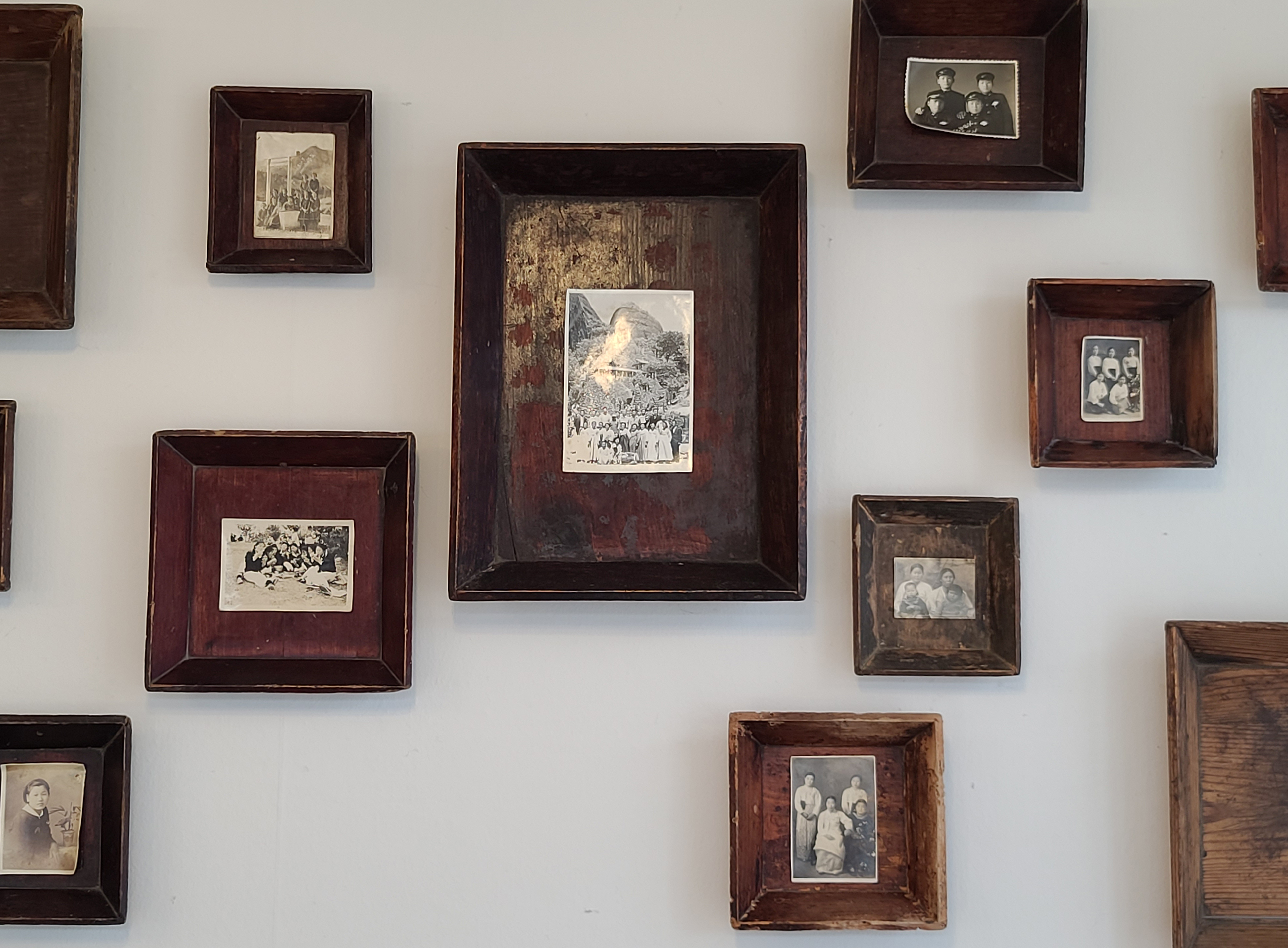 재밌는 소품들도 눈에 띄었는데, 도장들을 모아서 인테리어 소품으로 활용한 부분도 흥미로웠습니다. 물론 각자 개성이 다르다 보니 모두의 기호를 맞추기는 어렵지만 그래도 보기에 나쁘지는 않았습니다. 또 흥미로운 점은 액자의 배치였습니다.
