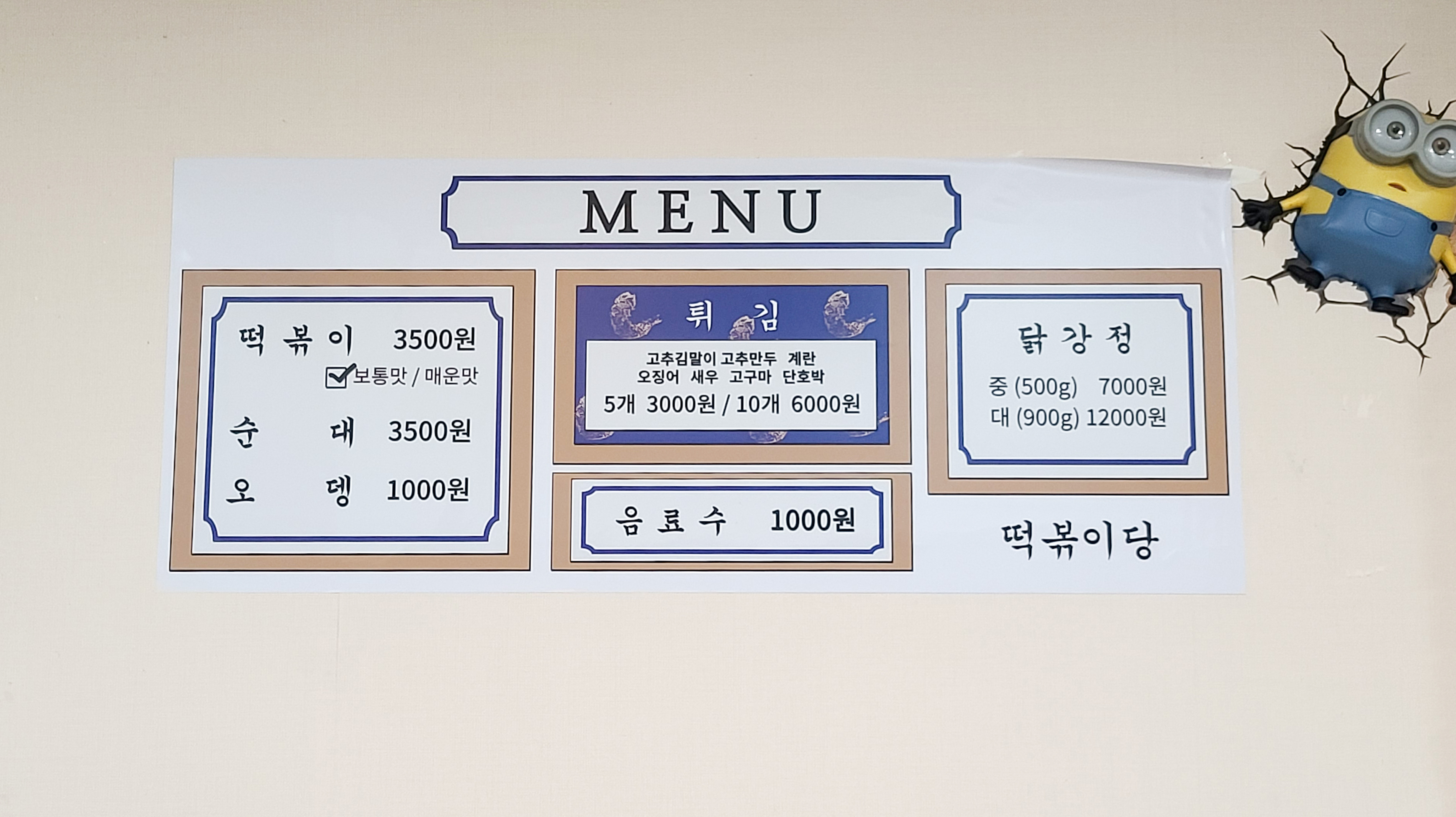 떡볶이당은 성남 수진역 인근 지하상가에 위치한 가게로, 떡볶이, 튀김, 순대, 오뎅, 닭강정 등을 판매하고 있었습니다. 가게 분위기도 깔끔하고 오며 가며 들르는 손님이 많더라고요. 자, 그럼 가게 안으로 들어가 보실까요?