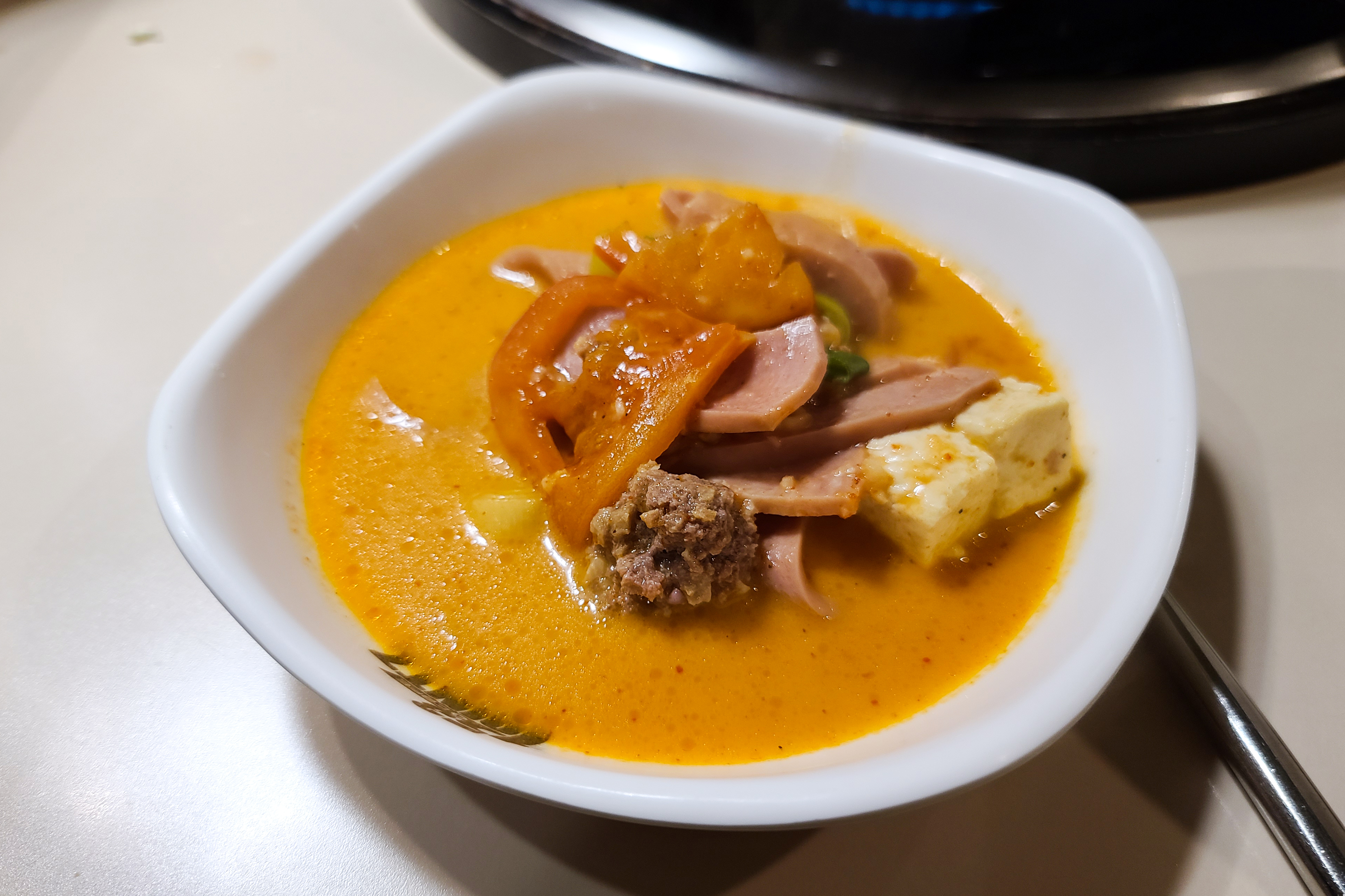 어느 정도 익었을 때 부대찌개의 햄과 건더기를 건져서 먹었습니다. 저염식 부대찌개라는 말처럼 부대찌개는 짠맛이 적어서 좋았습니다. 공기밥이랑 같이 국물을 먹었는데 맛은 괜찮았고요, 기존에 먹었던 부대찌개들 보다는 덜 자극적이었습니다. 제 기준에 맛은 크게 뛰어나다거나 하지는 않았습니다.