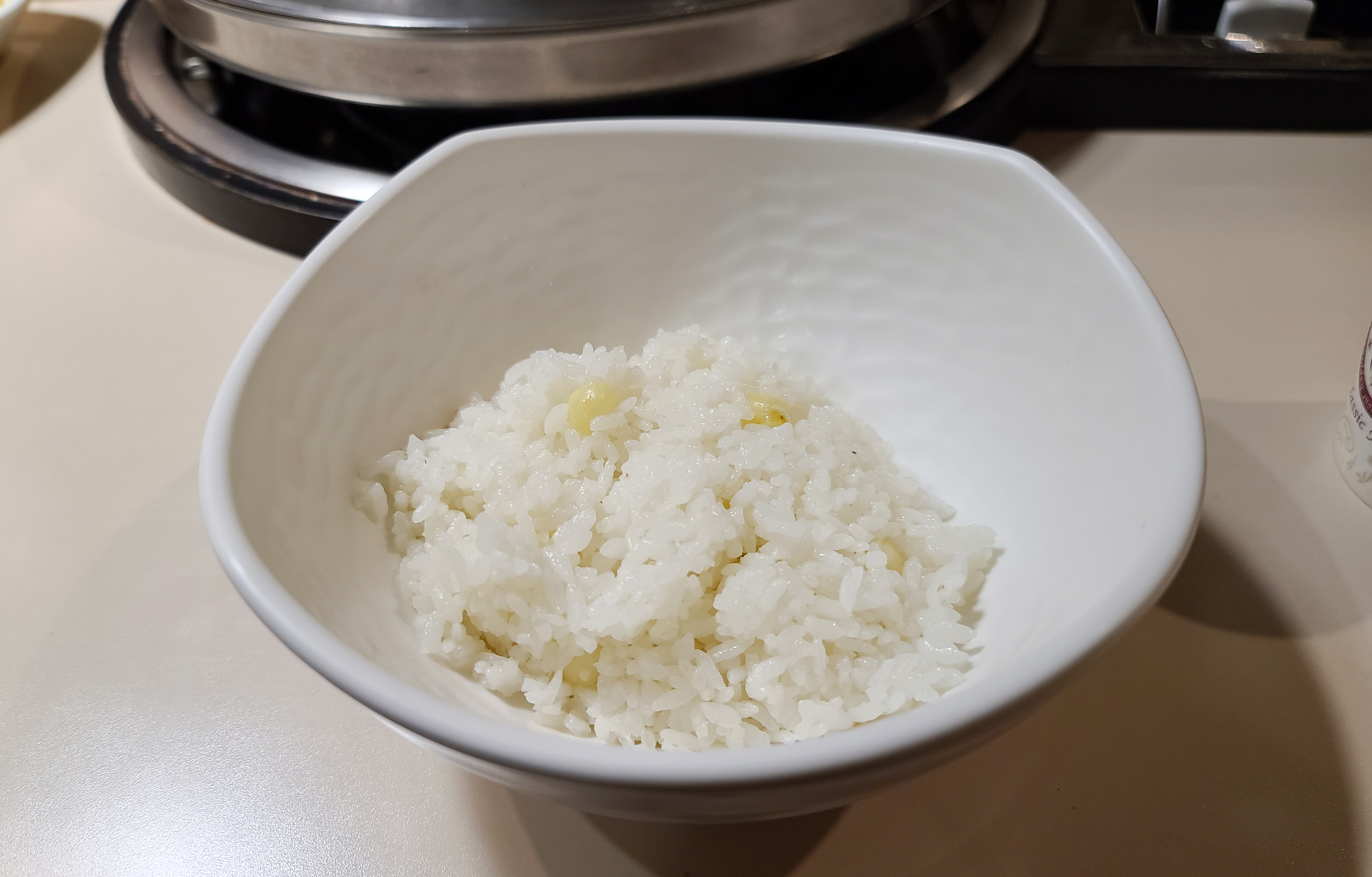 어느 정도 익었을 때 부대찌개의 햄과 건더기를 건져서 먹었습니다. 저염식 부대찌개라는 말처럼 부대찌개는 짠맛이 적어서 좋았습니다. 공기밥이랑 같이 국물을 먹었는데 맛은 괜찮았고요, 기존에 먹었던 부대찌개들 보다는 덜 자극적이었습니다. 제 기준에 맛은 크게 뛰어나다거나 하지는 않았습니다.