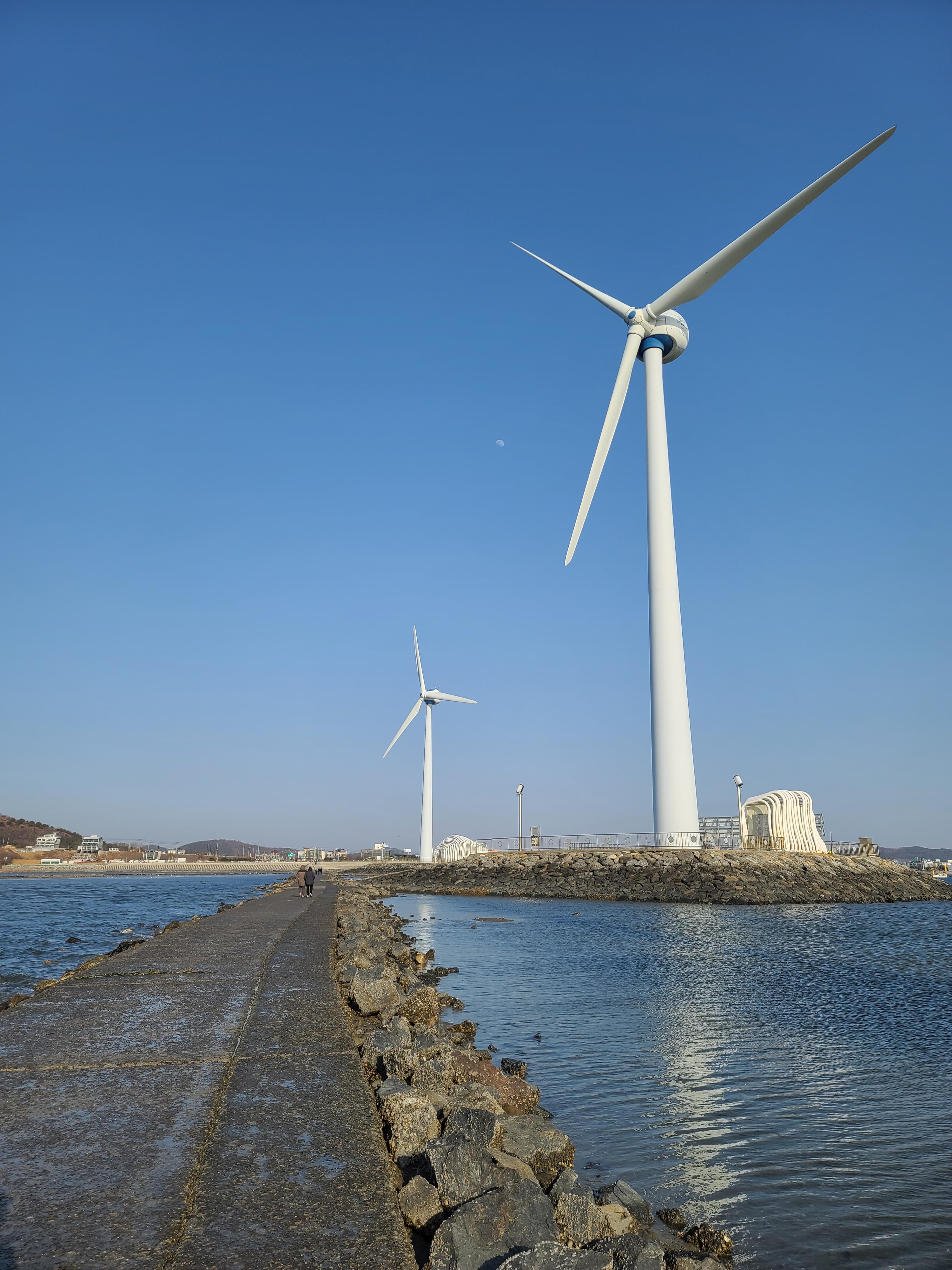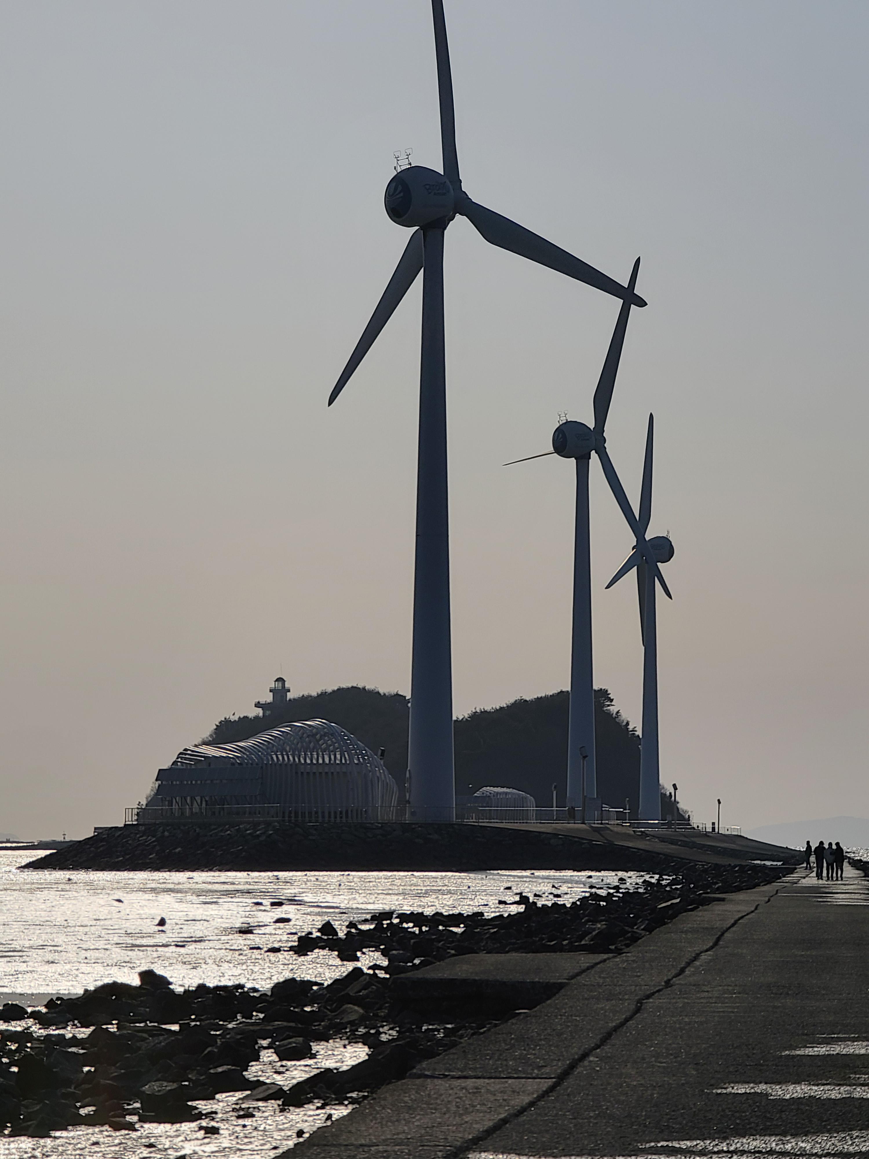 <탄도항> 은 누에섬 풍력발전기를 배경으로 일몰 사진과 기념사진을 많이 찍고, 블로그나 소셜 미디어를 통해 많은 공유가 이루어져 유명해진 장소입니다. 이 곳은 차박하는 사람들도 많이 방문하여 주차장에 1대의 차량으로 1.5대 혹은 2대의 공간을 차지하고 있는 모습도 볼 수 있는 곳이었습니다.