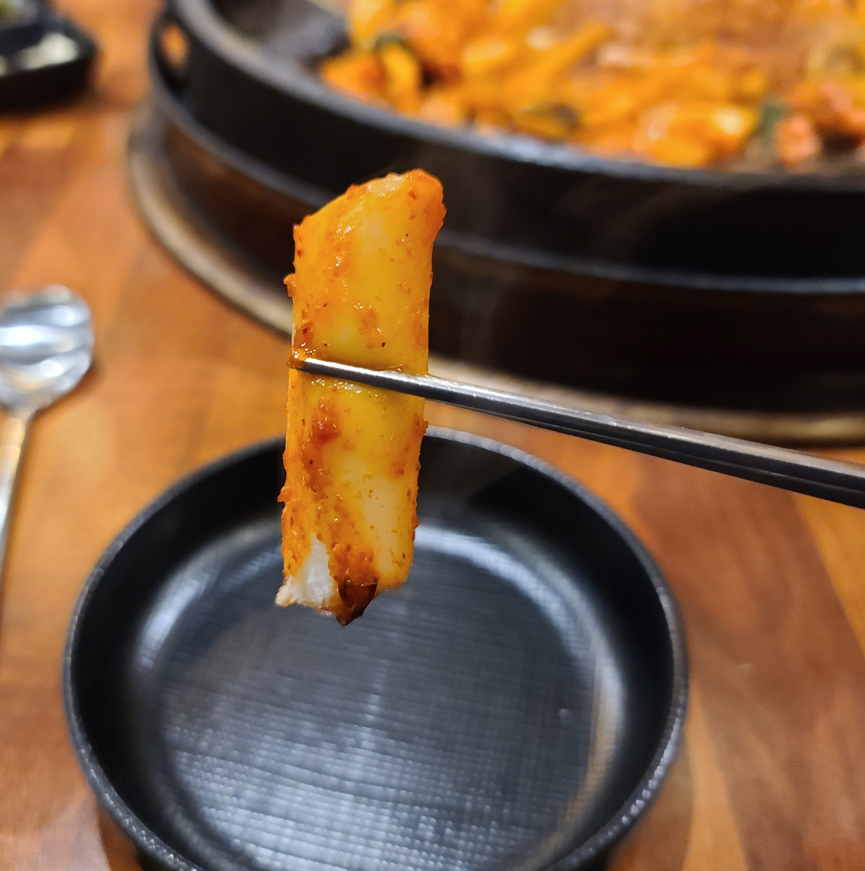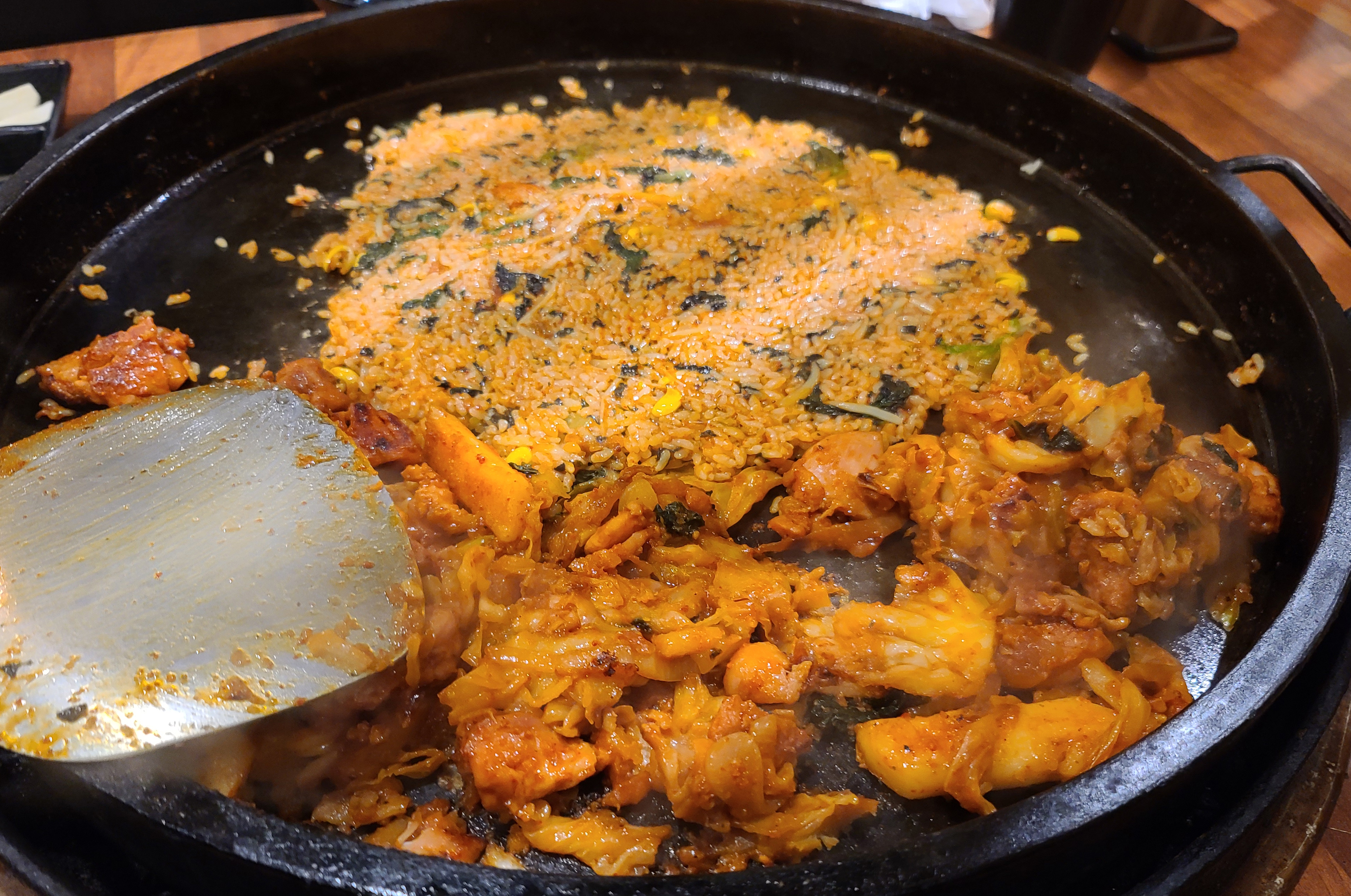 떡과 고구마는 먼저 익기 때문에 배가 고플 땐 떡을 먼저 골라먹으면 되었습니다. 고구마도 잘 익어서 맛있었는데 사진을 별도로 찍지는 않았더라고요. 닭갈비가 먹기 좋게 익을 때가 되면 "이제 드셔도 됩니다" 하고 직원이 알려줍니다.