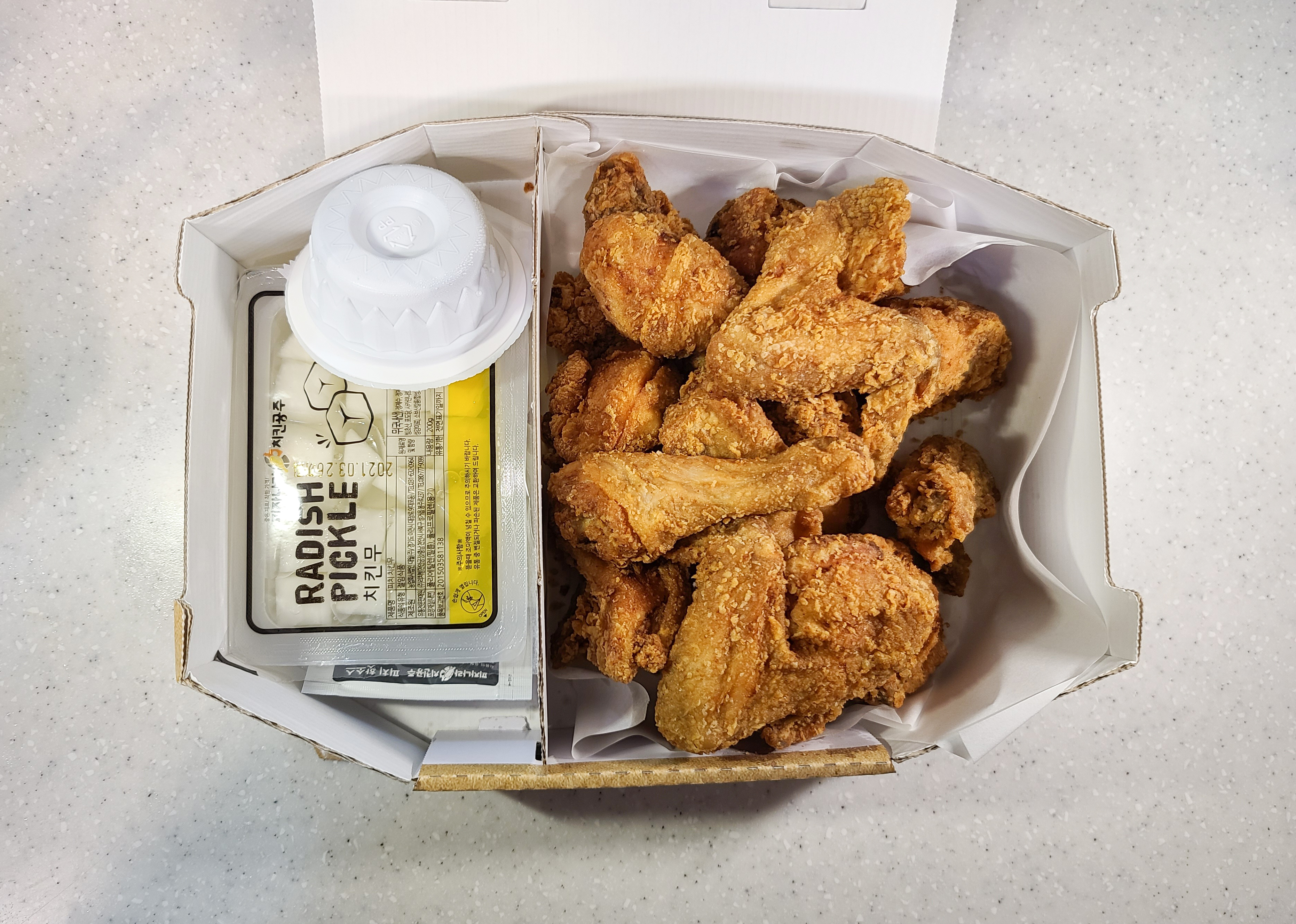 피자에는 크러스트를 추가해서 에지 부분까지 치즈가 들어있어 쫄깃하고 고소한 맛이 좋았습니다. 피자의 두께도 너무 두껍지 않고 적당해서 먹기 불편하지 않았습니다. 사실 저는 피자보다 치킨을 더 좋아해서 치킨으로 바로 넘어가겠습니다.