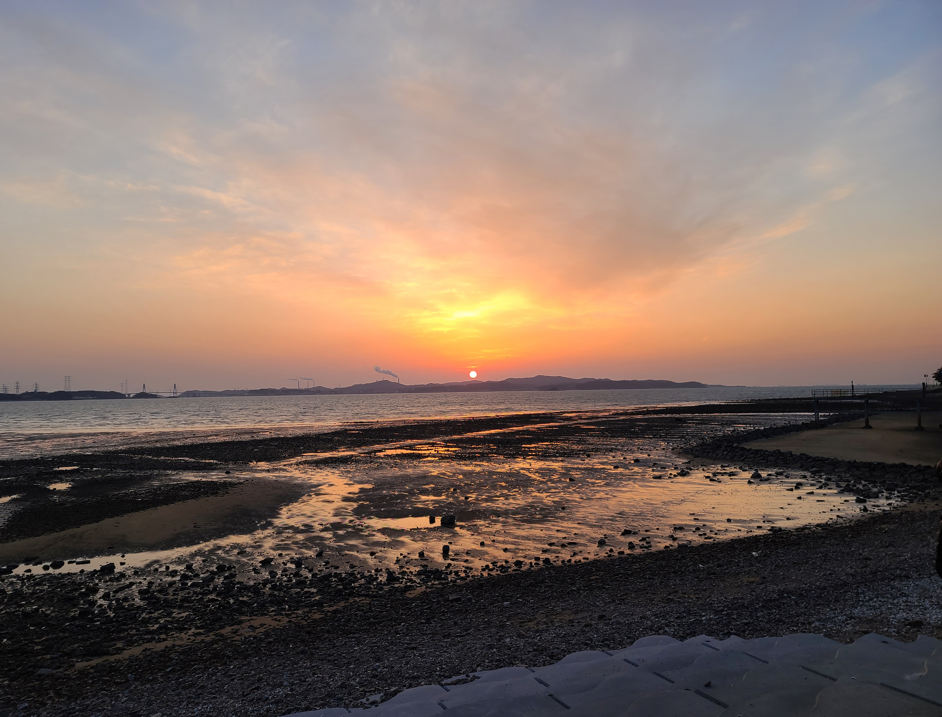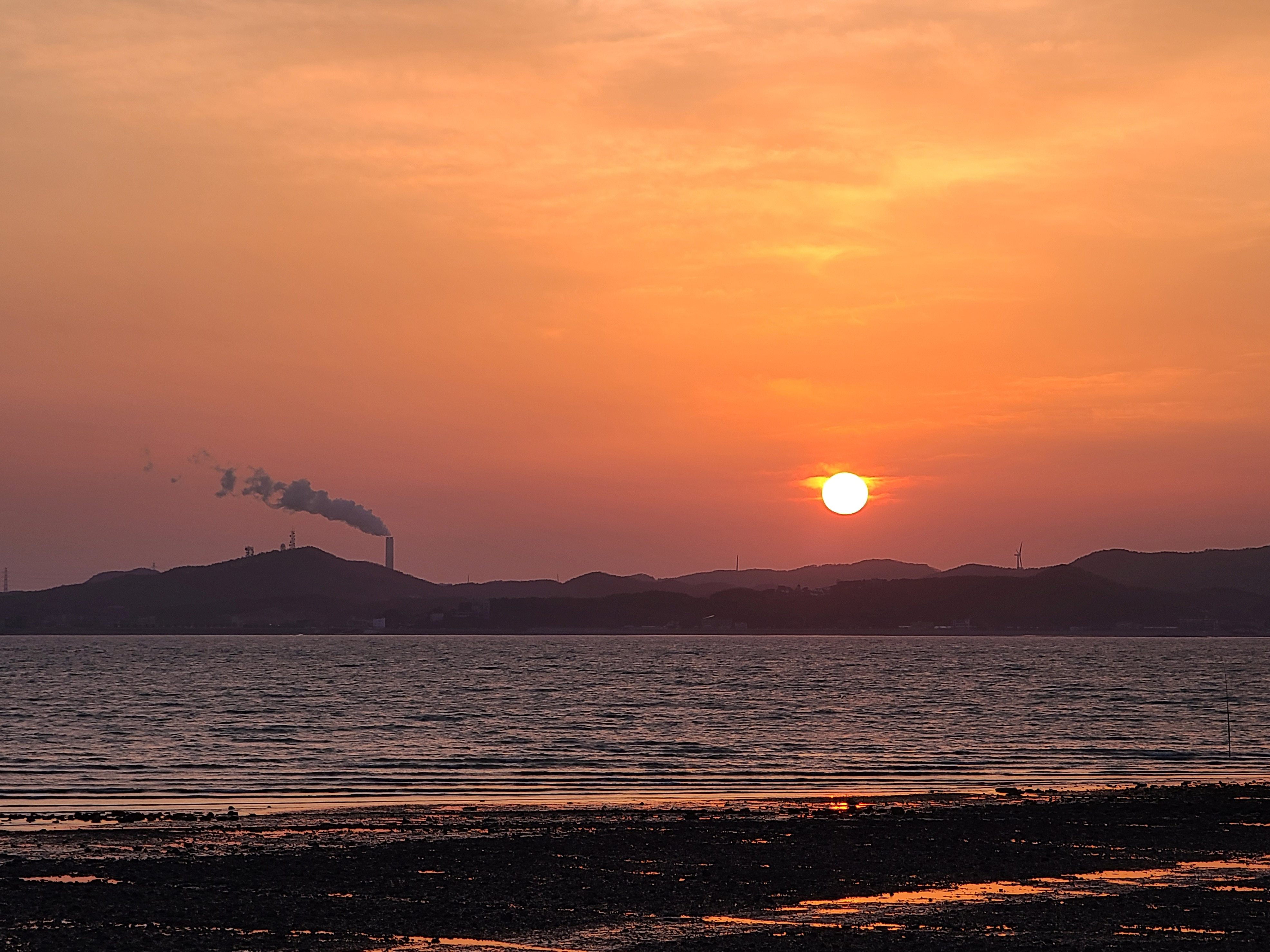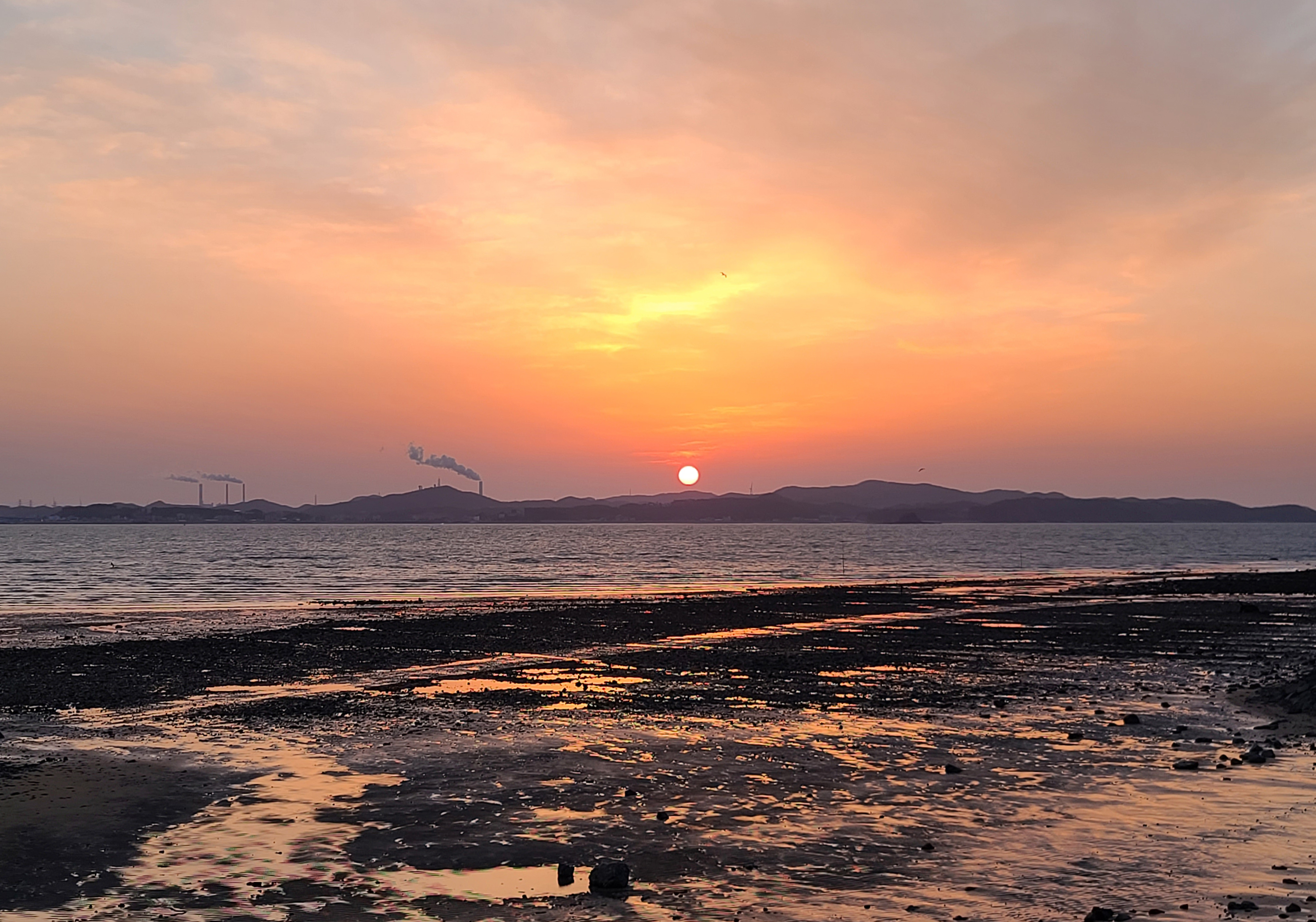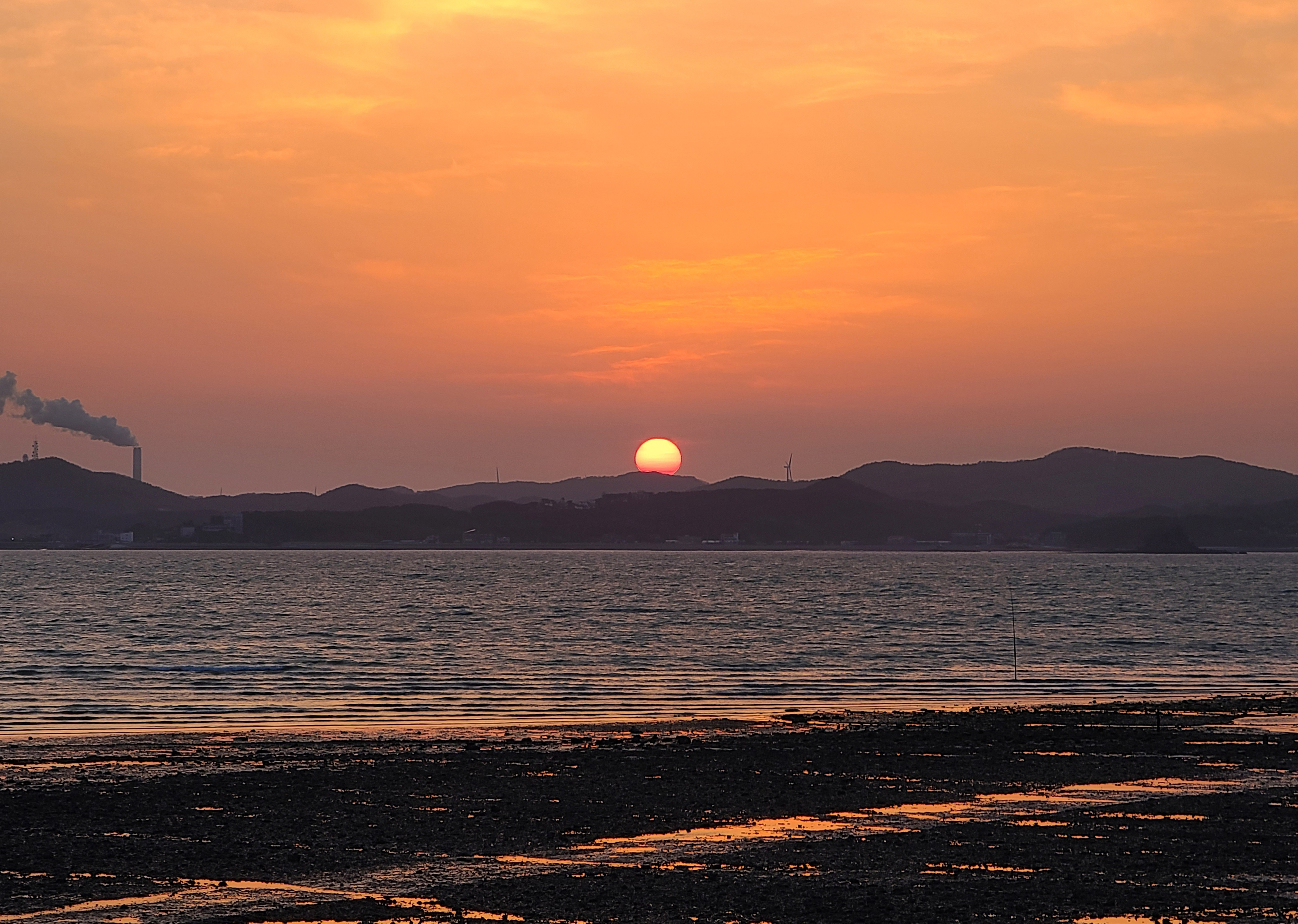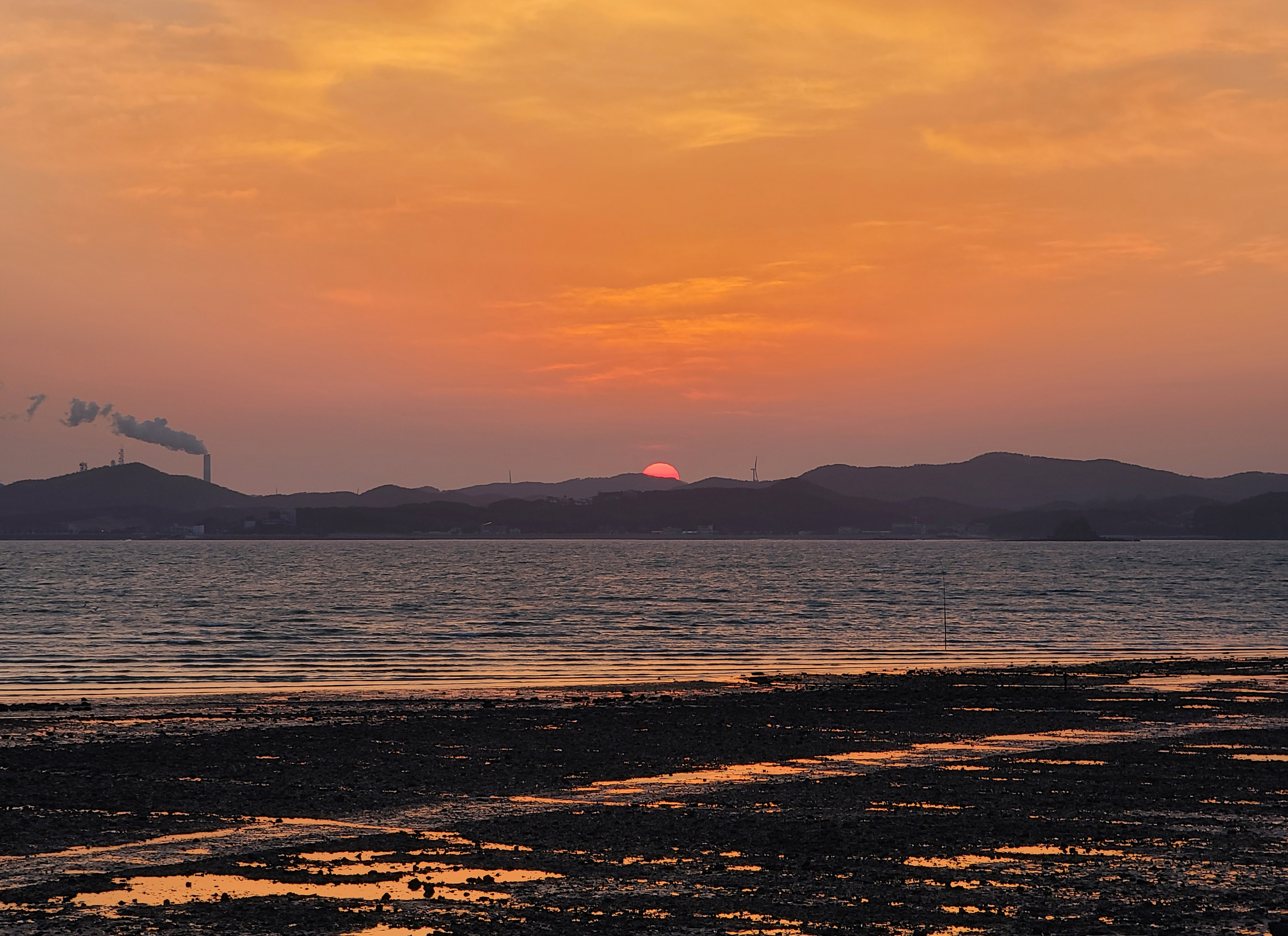 대부도의 노을은 편하게 볼 수 있다는 장점이 있지만, 공장의 굴뚝과 철탑들이 시야에 많이 걸리는 게 조금 아쉽더라고요. 강화도에서 일몰을 구경할 때는 바다와 산 외에는 카메라 앵글에 나오지 않아서 좋았는데, 대부도의 사진은 배경에 좀 거슬리는 장면이 많지만, 그래도 나름의 매력이 있는 것 같습니다.