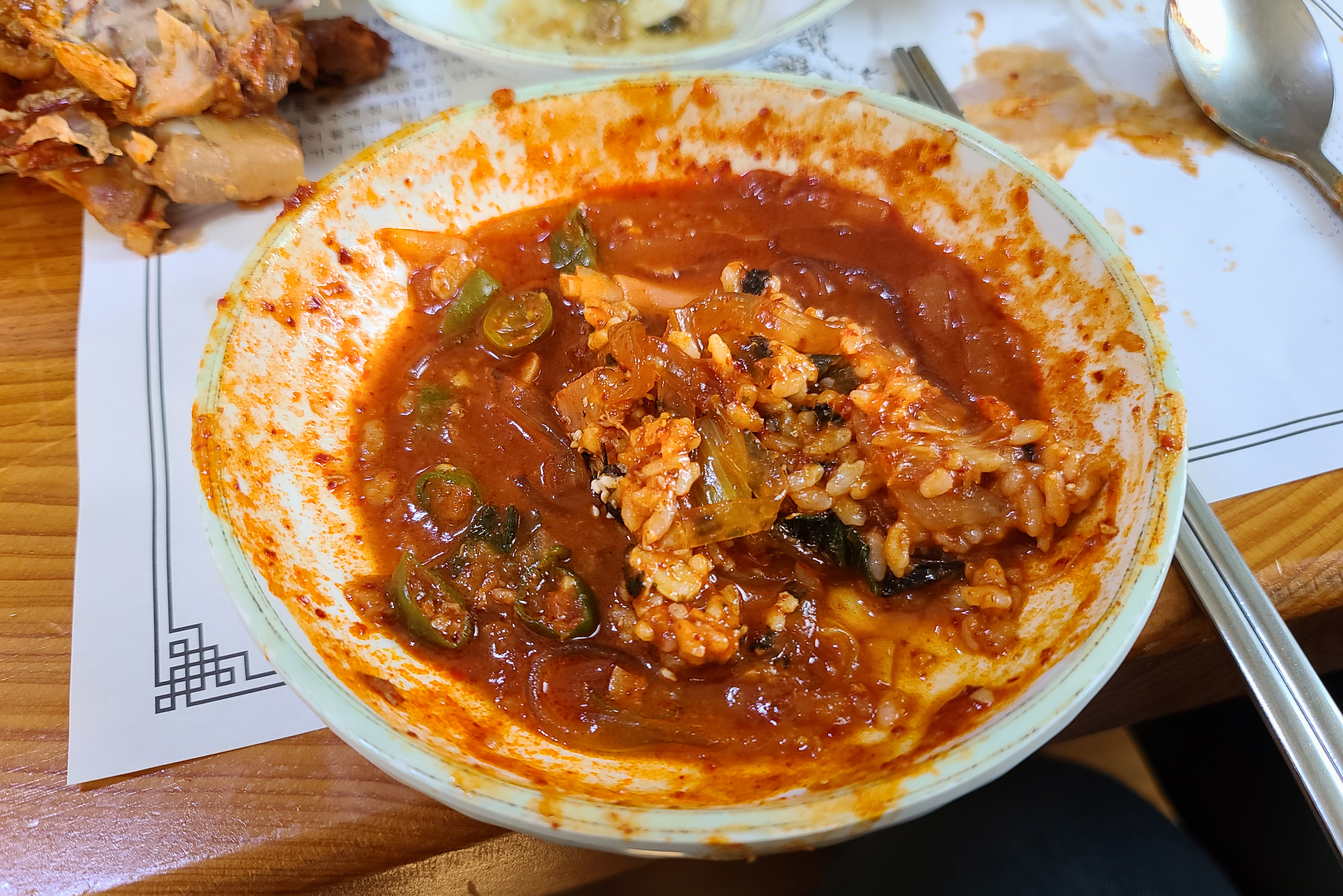 끝으로 볶음밥까지 추가했습니다. 1개만 볶아달라고 했는데도 양이 꽤 많더라고요. 친구한테도 배불리 먹었는지 물어보니 만족스럽게 먹었다고 하더라고요. 소나무집 닭도리탕은 언제 먹어도 실망시키지 않는 것 같습니다.