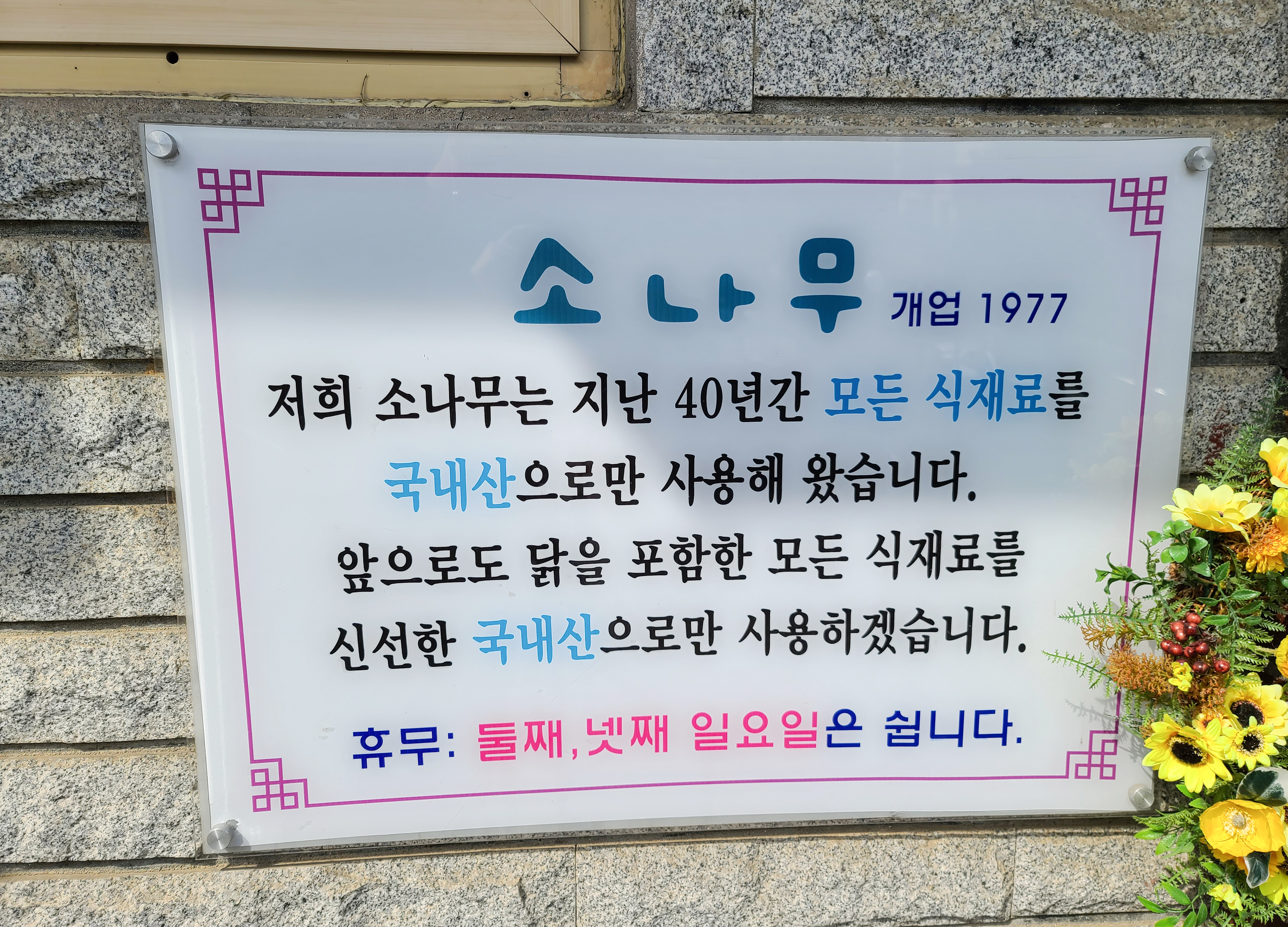 제가 맛있게 이용했던 가게는 재방문으로 이용하고 있는데, 우면동 소나무집도 마찬가지로 여러 차례 재방문했던 가게입니다. 지인들에게 소개도 해주고, 지인과 함께 방문하기도 하는 가게이죠. 이 날은 친구와 함께 청국장 닭도리탕을 먹기 위해 방문했습니다.