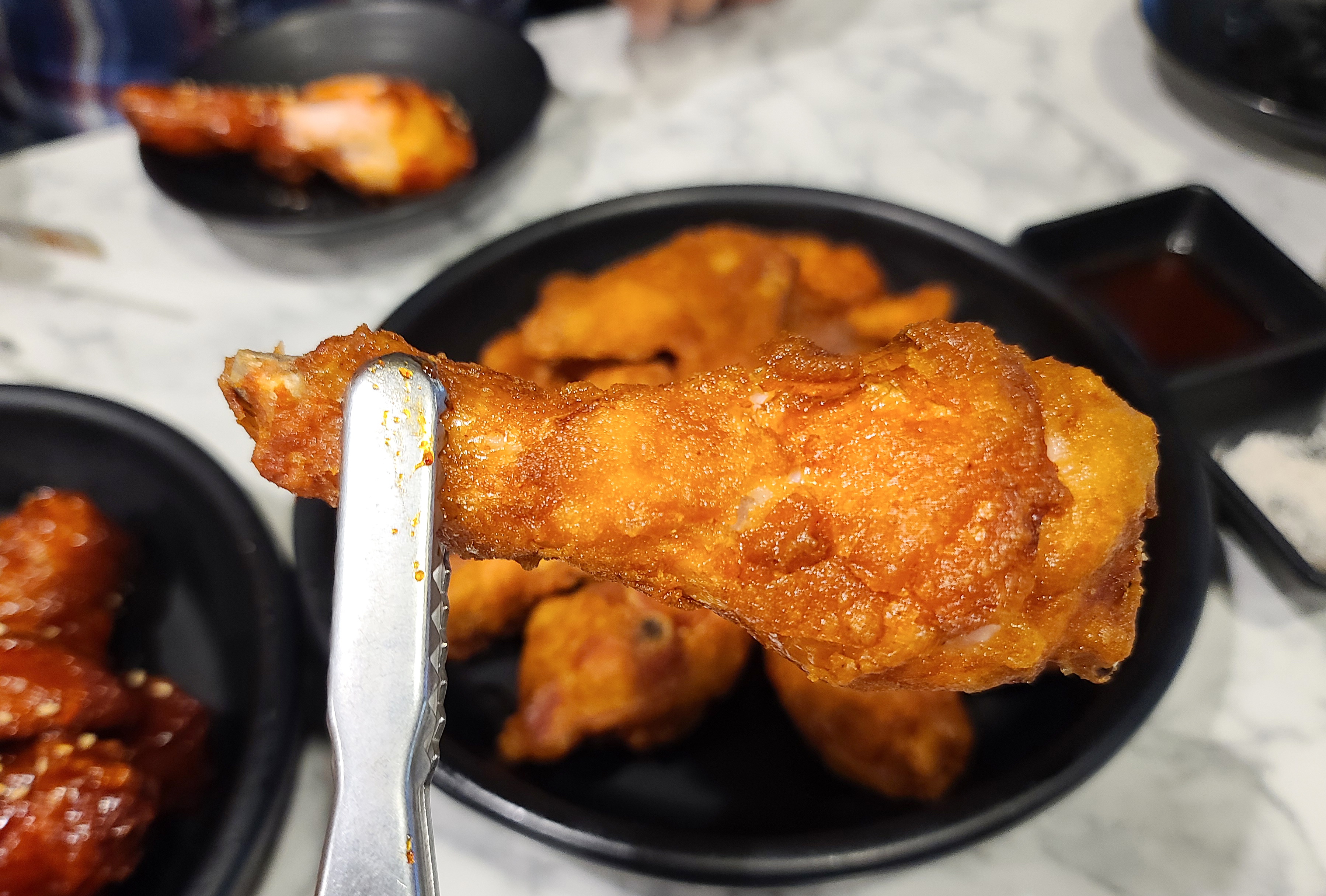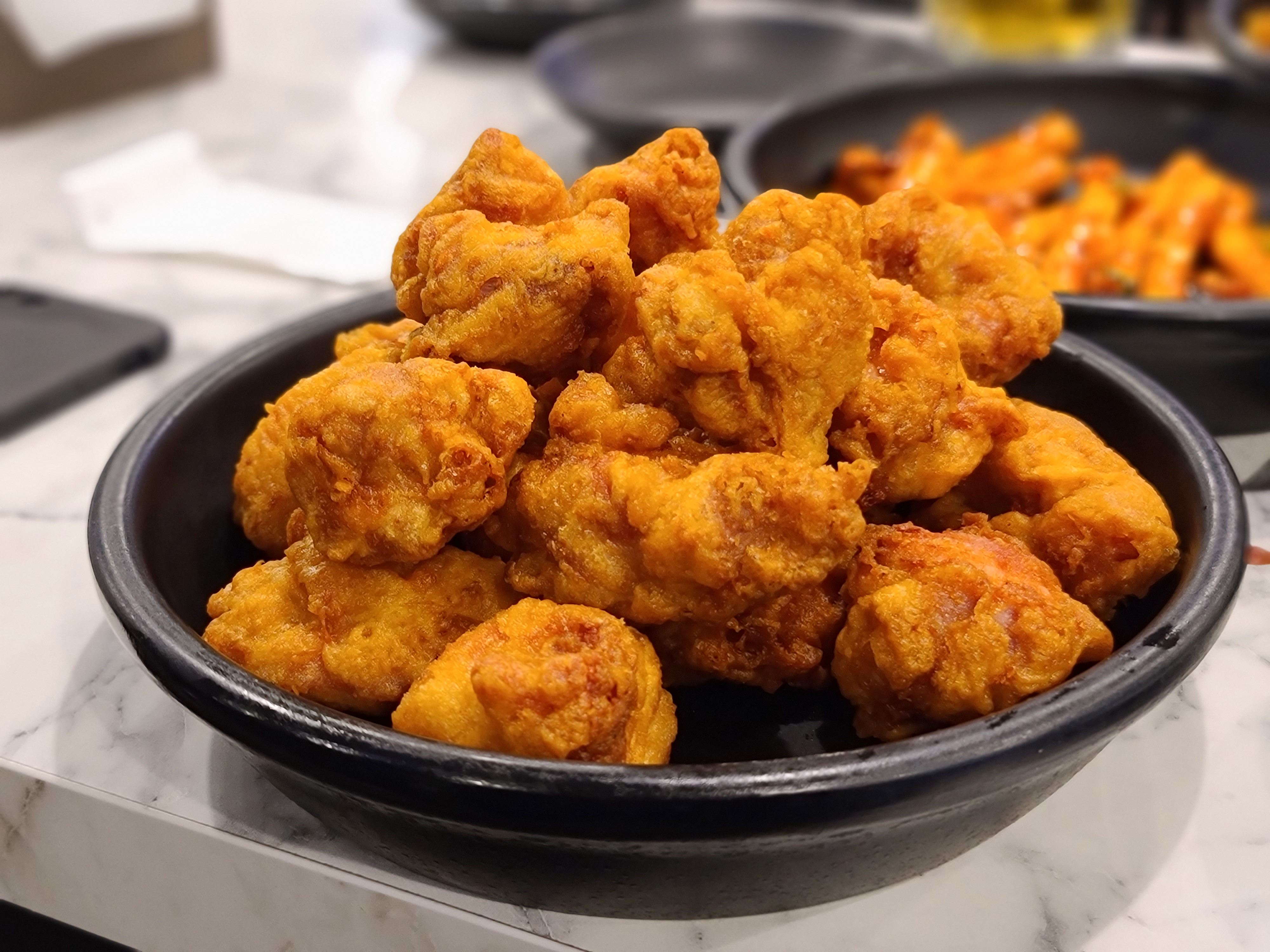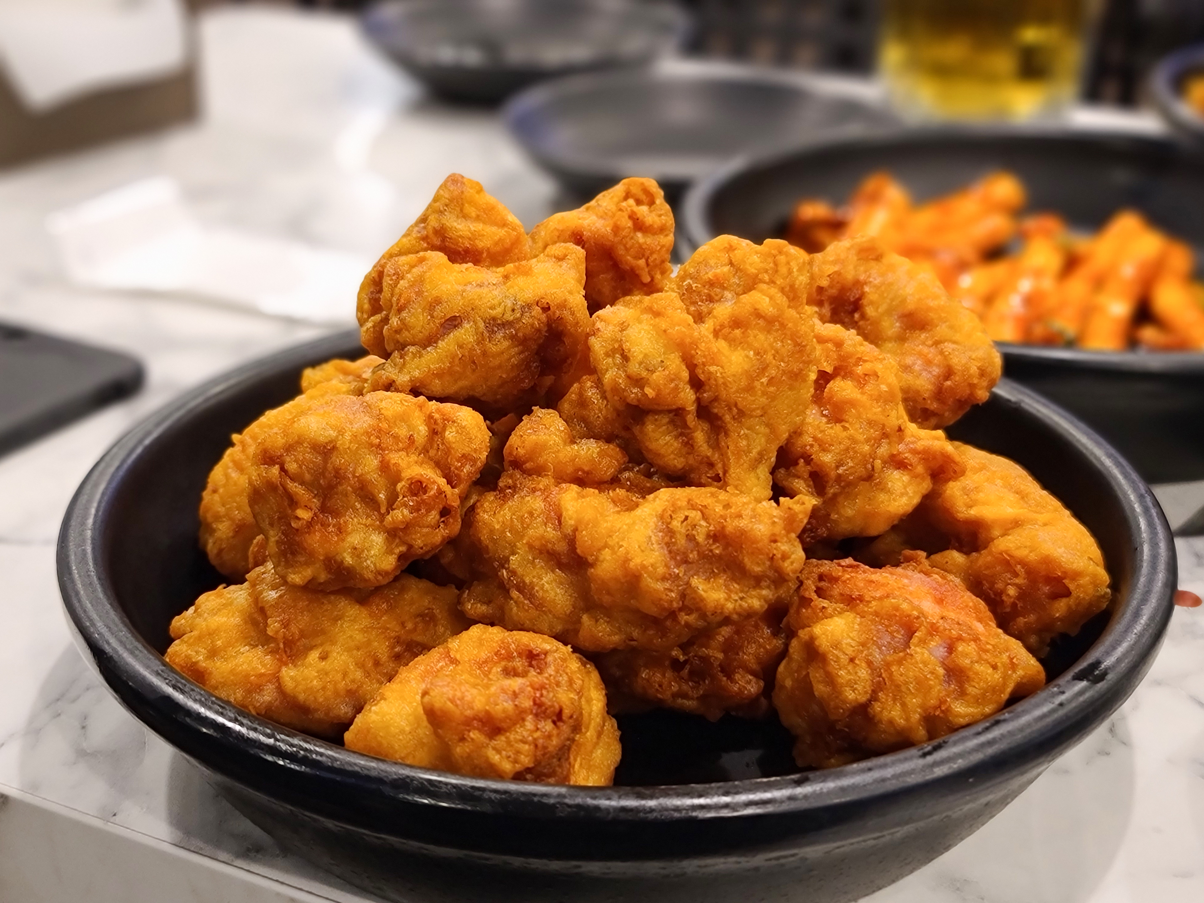 맨 위의 사진은 순살치킨이고, 가운데는 후라이드치킨, 맨 아래의 사진은 양념치킨입니다. 순살치킨은 뼈를 발라내기 귀찮을 때 종종 시키는데, 저는 아무래도 뼈 있는 치킨이 더 맛있는 것 같더라고요. 뼈 있는 치킨은 고소한 튀김옷과 촉촉한 육즙 가득 치킨이 인상적인 메뉴입니다. 양념치킨은 떡볶이의 소스와 같은(?) 맛이 느껴지는데, 이 소스가 매력적인 게 닭똥집, 떡볶이, 치킨까지 두루 잘 어울린다는 것입니다.