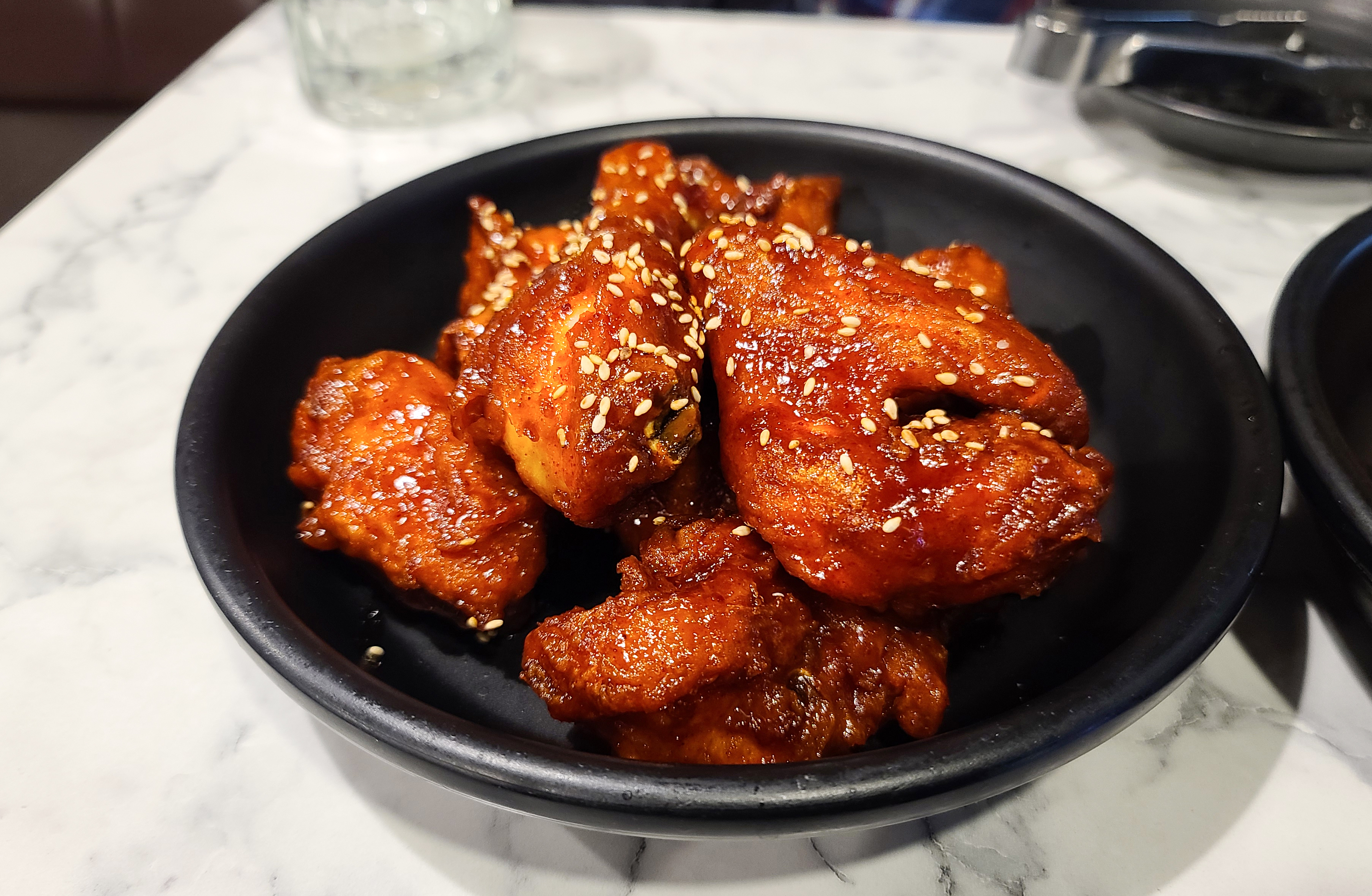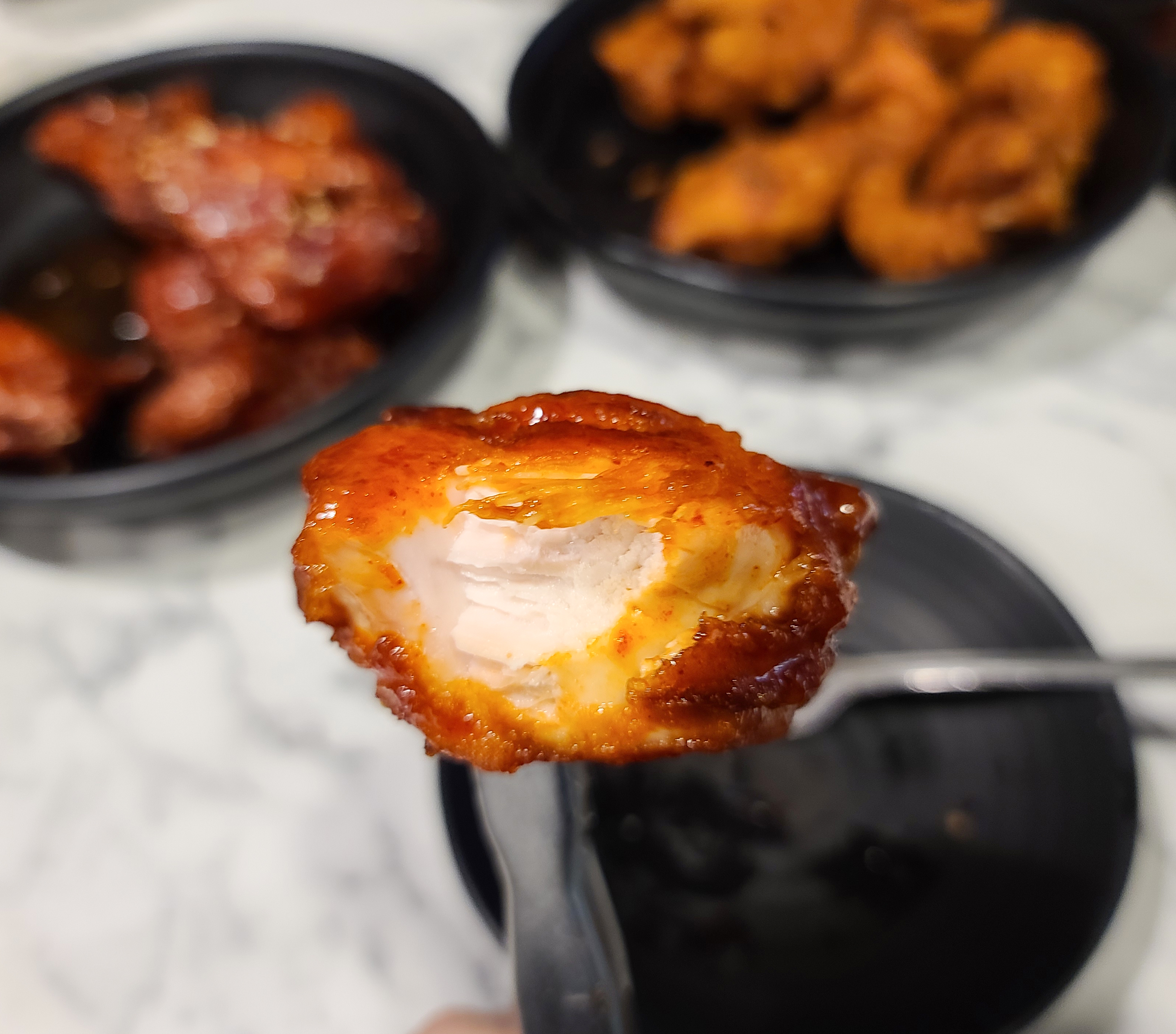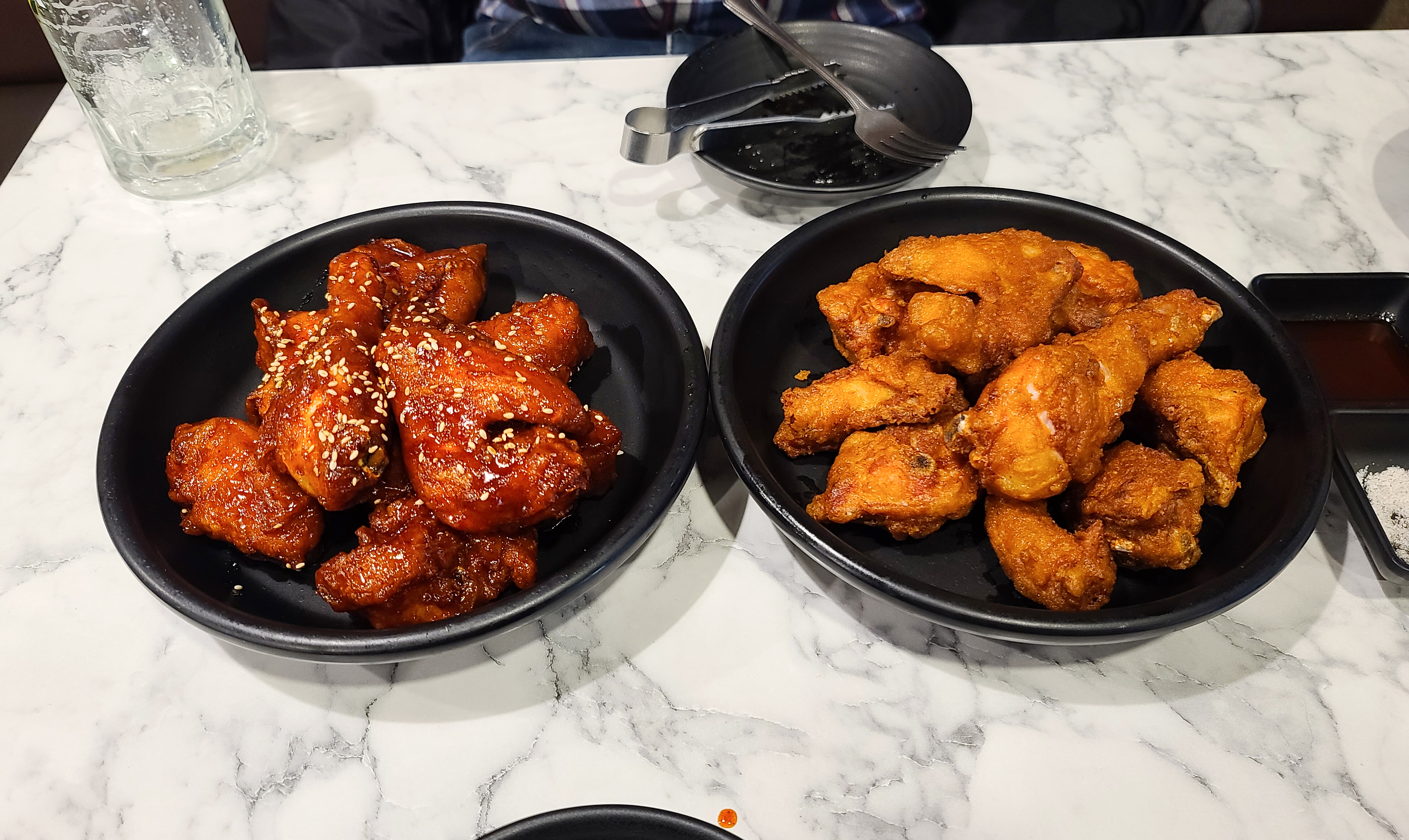 맨 위의 사진은 순살치킨이고, 가운데는 후라이드치킨, 맨 아래의 사진은 양념치킨입니다. 순살치킨은 뼈를 발라내기 귀찮을 때 종종 시키는데, 저는 아무래도 뼈 있는 치킨이 더 맛있는 것 같더라고요. 뼈 있는 치킨은 고소한 튀김옷과 촉촉한 육즙 가득 치킨이 인상적인 메뉴입니다. 양념치킨은 떡볶이의 소스와 같은(?) 맛이 느껴지는데, 이 소스가 매력적인 게 닭똥집, 떡볶이, 치킨까지 두루 잘 어울린다는 것입니다.