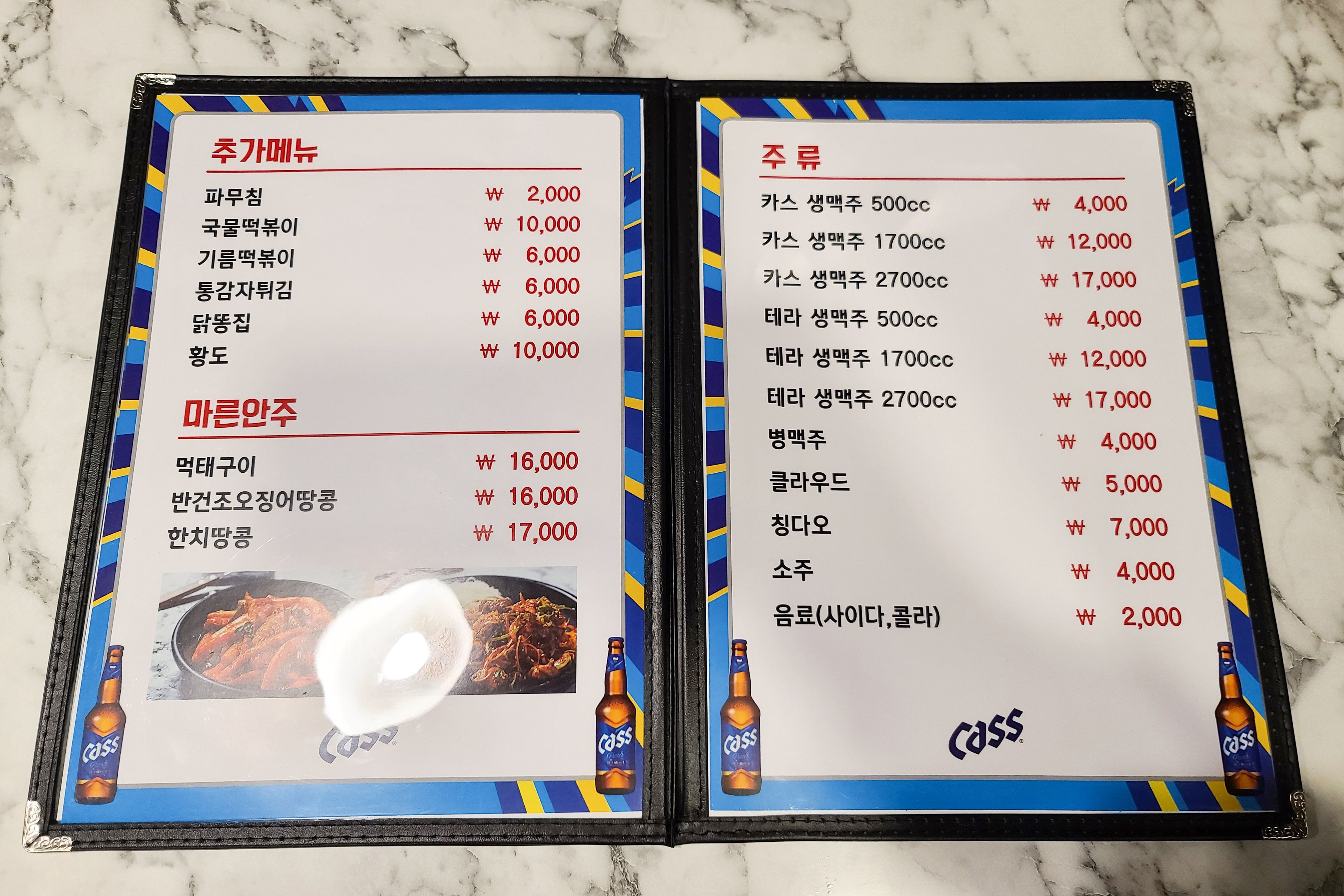 다가마통닭의 치킨무는 레몬 조각을 넣어서 새콤달콤한 향과 맛이 났고, 닭똥집은 같이 제공되는 빨간 양념에 찍어먹으면 고소하고 쫄깃해서 맛있게 먹을 수 있었습니다. 다른 프랜차이즈 치킨집에 비해 다가마통닭은 개인 치킨집이어서 그런지 개성 있는 메뉴가 인상적인 가게입니다. 이제 메뉴를 함께 살펴보시죠.