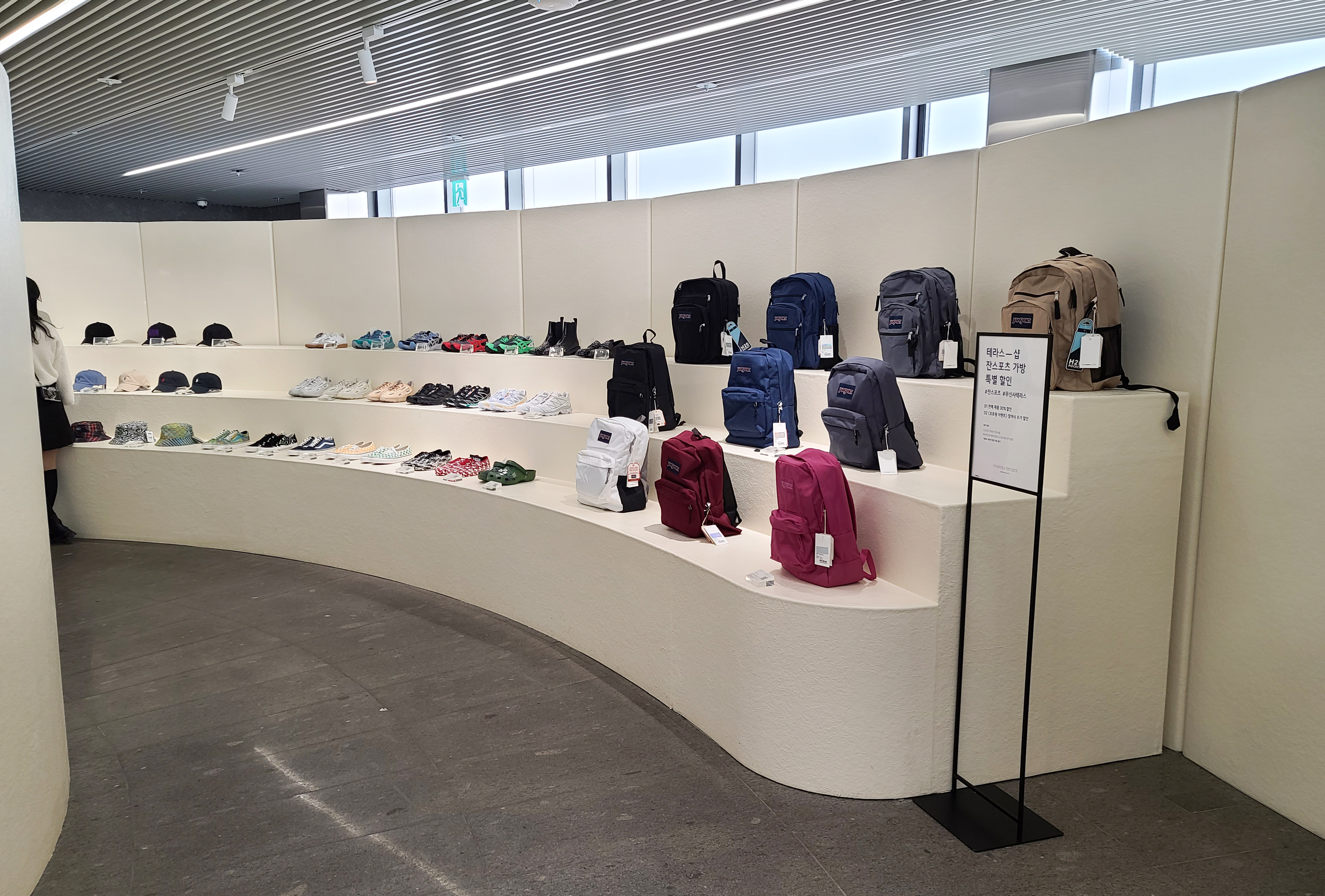 무신사테라스는 카페와 무신사에서 셀렉트 한 옷이나 가방, 모자, 신발 등을 판매하는 편집숍, 기간별로 상품을 판매하는 팝업스토어가 있었습니다. 우선 저와 지인은 마더그라운드의 스니커즈를 구입하기 위해 방문했기 때문에 마더그라운드의 신발부터 살펴보았습니다. 마더그라운드의 스니커즈는 독특하게 전시해둔 모습을 볼 수 있었습니다.