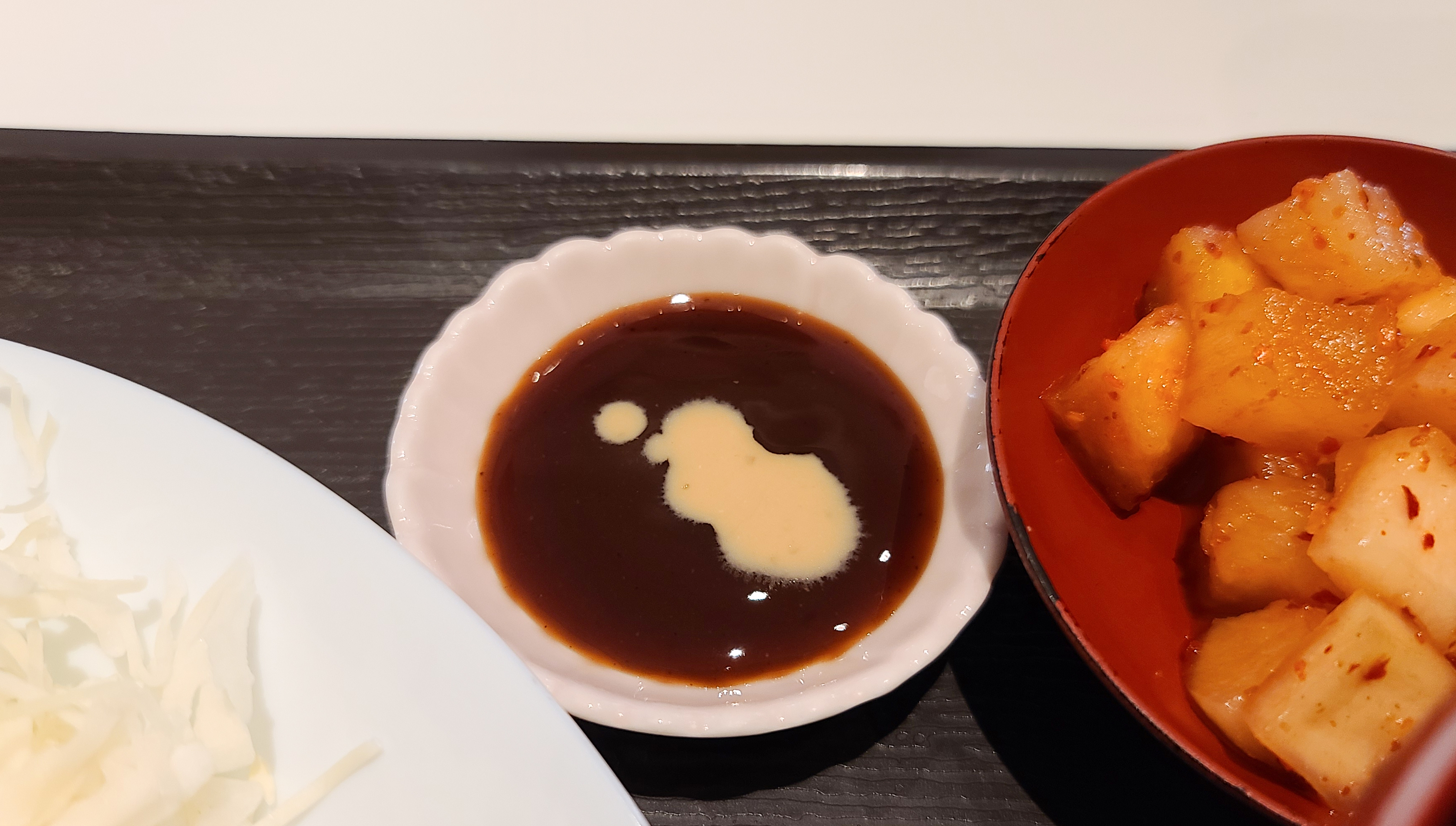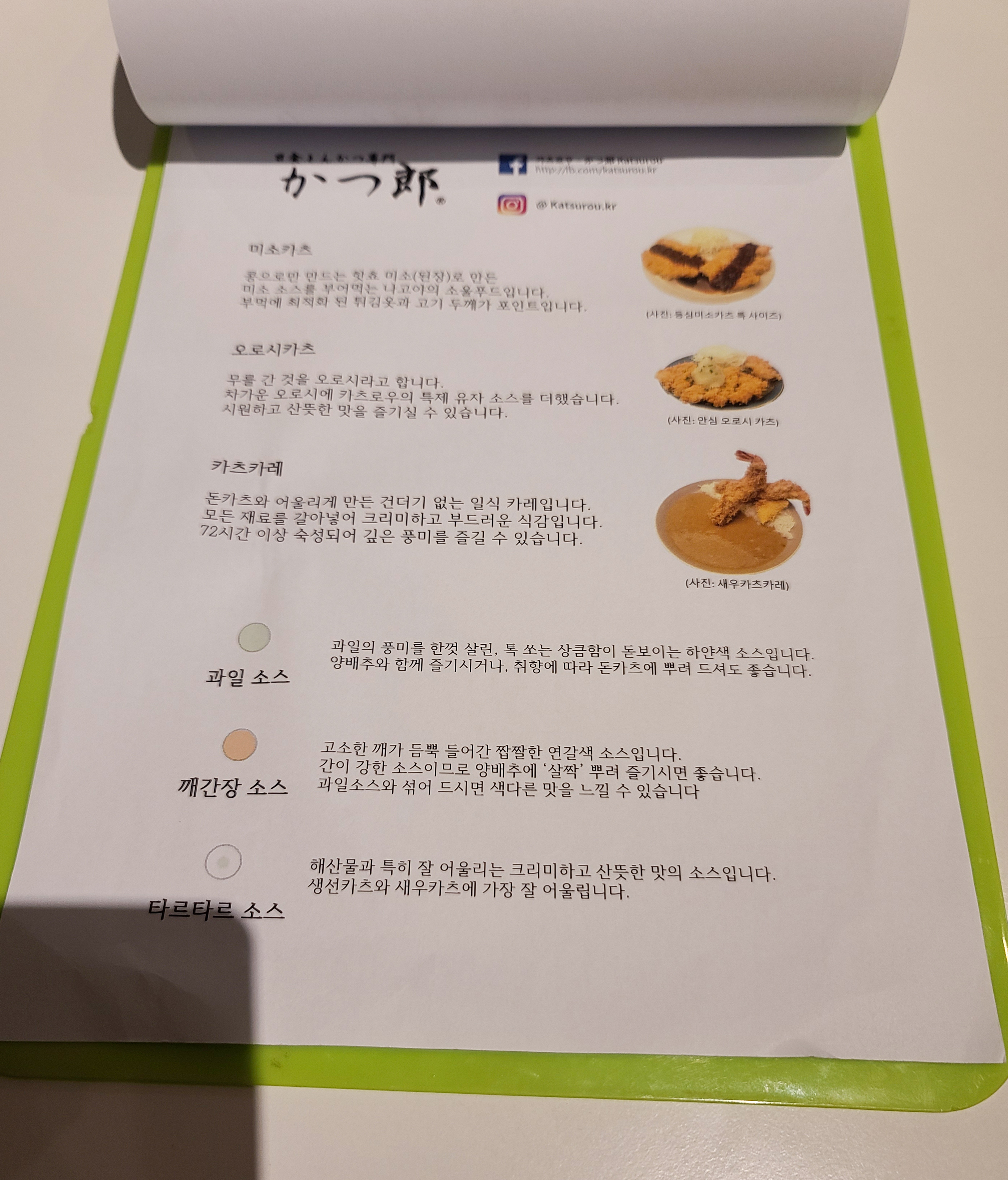 카츠로우의 기본적인 소스는 위와 같이 나옵니다. 과일소스, 깨간장소스, 우스터소스가 제공됩니다. 과일소스와 깨간장소스는 취향에 따라 양배추에 곁들여 먹을 수 있었고, 우스터소스와 깨간장소스를 섞어서 먹어도 맛과 향이 좋아서 저는 돈까스를 먹을 때는 우스터+깨간장 조합을 즐겨먹고 있습니다.