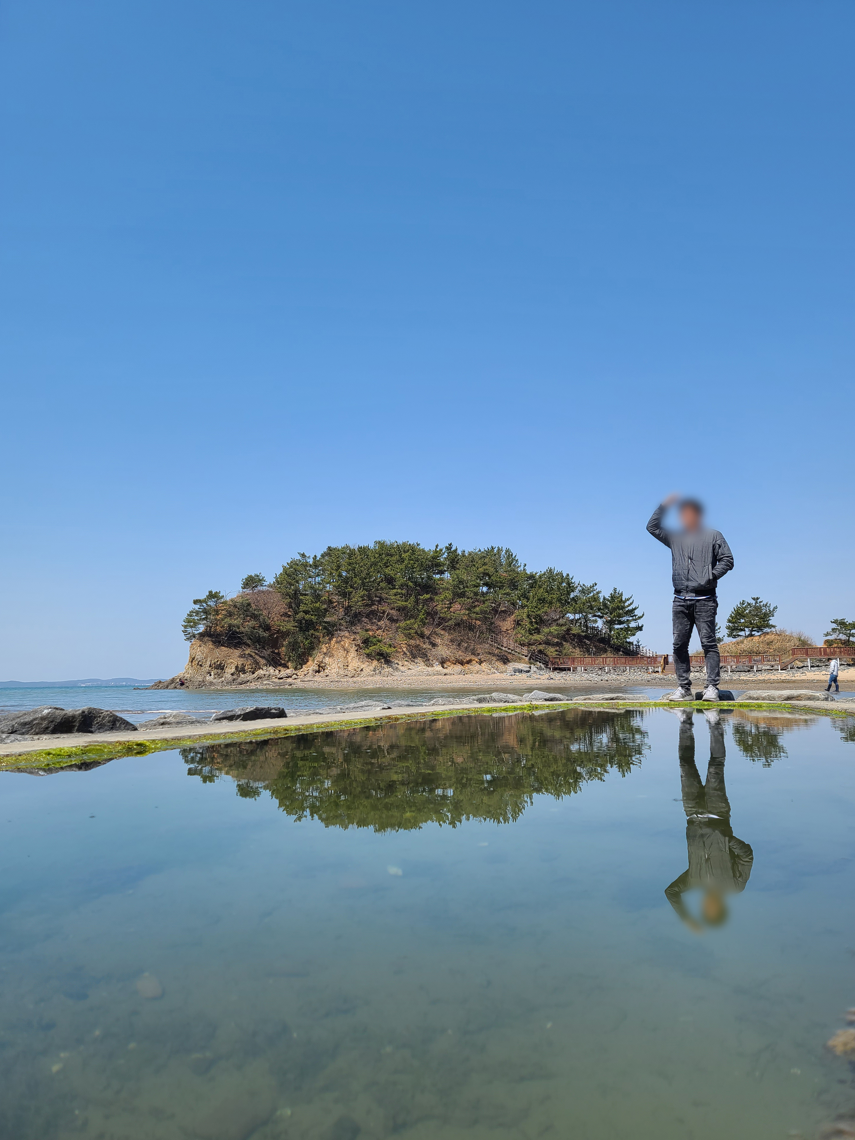 속동 갯벌 체험관에서 보는 풍경은 위와 같습니다. 속동전망대와 앞서 소개해드린 물 웅덩이가 있어서 반영 사진을 찍기에 좋았습니다. 이 날 마침 하늘도 맑아서 반영사진이 더 잘 나왔는데요, 함께 간 지인의 사진도 담아보았습니다.