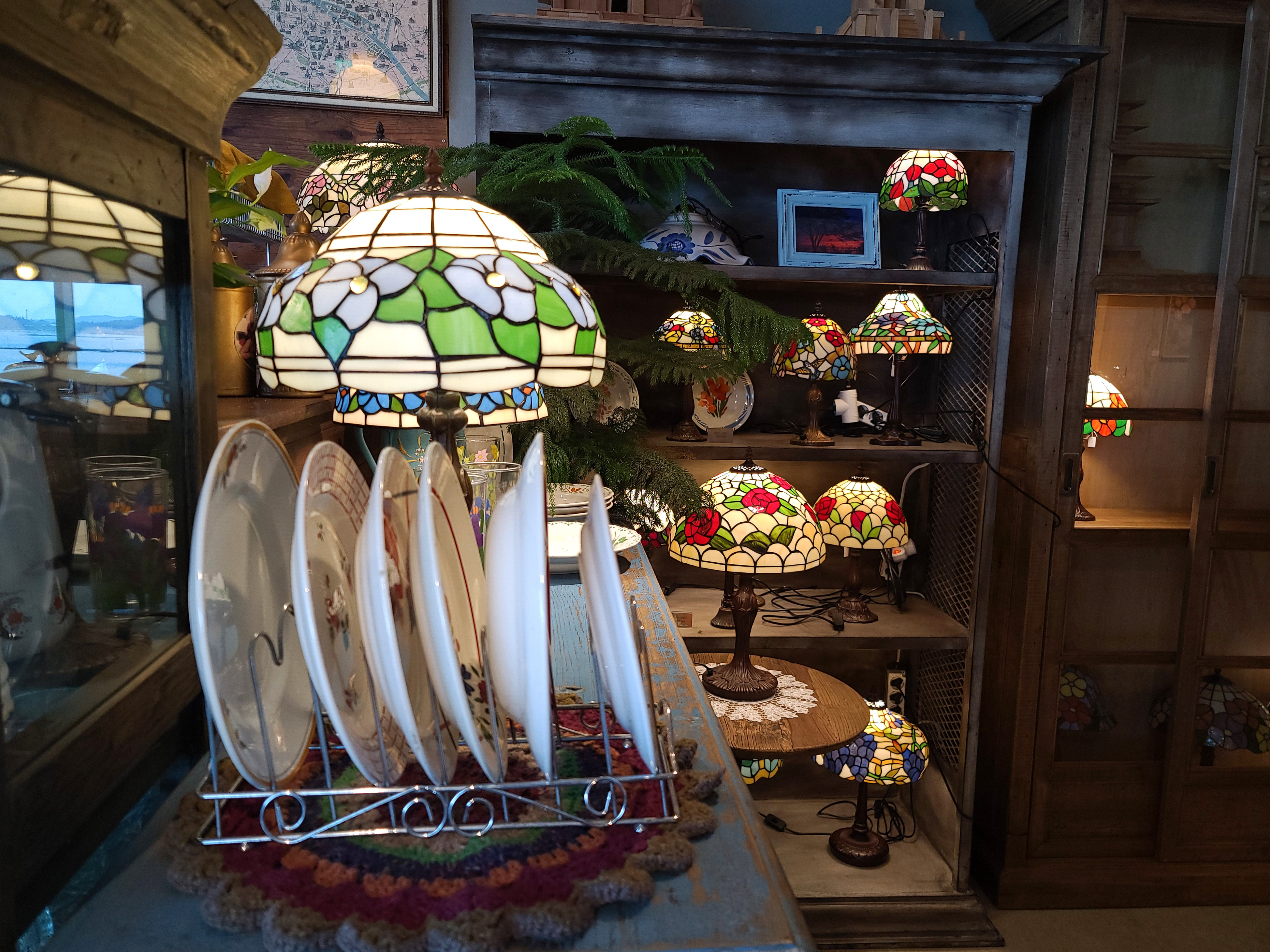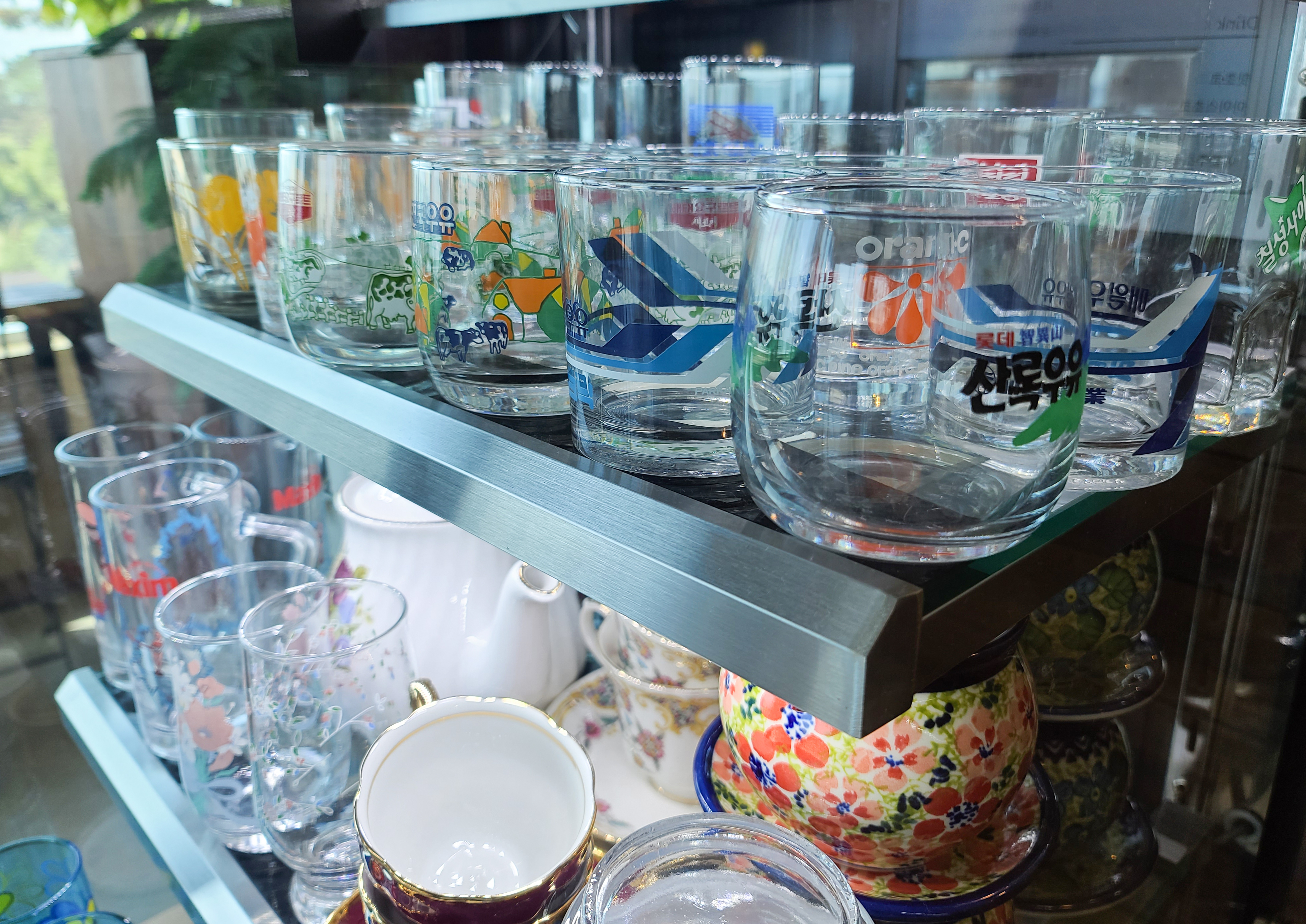 메뉴를 주문하고 가게를 둘러보니, 빈티지한 느낌의 스탠드와 그릇, 우유 잔 등을 볼 수 있었습니다. 카페 사장님의 취향이 돋보이는 공간이기도 하였죠. 저도 빈티지한 소품들에 관심은 있지만, 뭔가 난잡해 보이는 배치에는 좀 공감이 되지는 않더라고요.