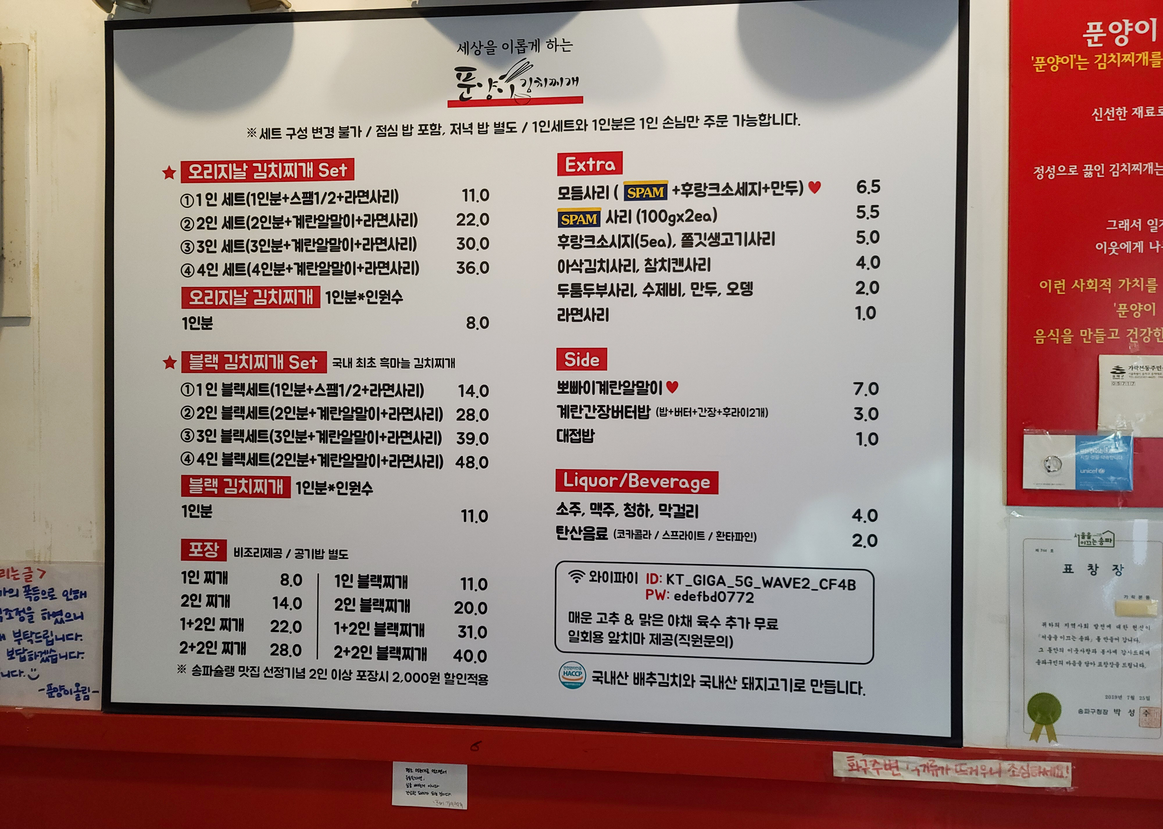 가락동 김치찌개 맛집 푼양이 김치찌개는 오리지날 김치찌개, 블랙 김치찌개, 사리, 사이드 메뉴가 있었습니다. 물론 김치찌개는 세트로도 주문이 가능했습니다. 저희는 푼양이 김치찌개의 오리지날 김치찌개 3인분을 주문하여 식사했습니다.