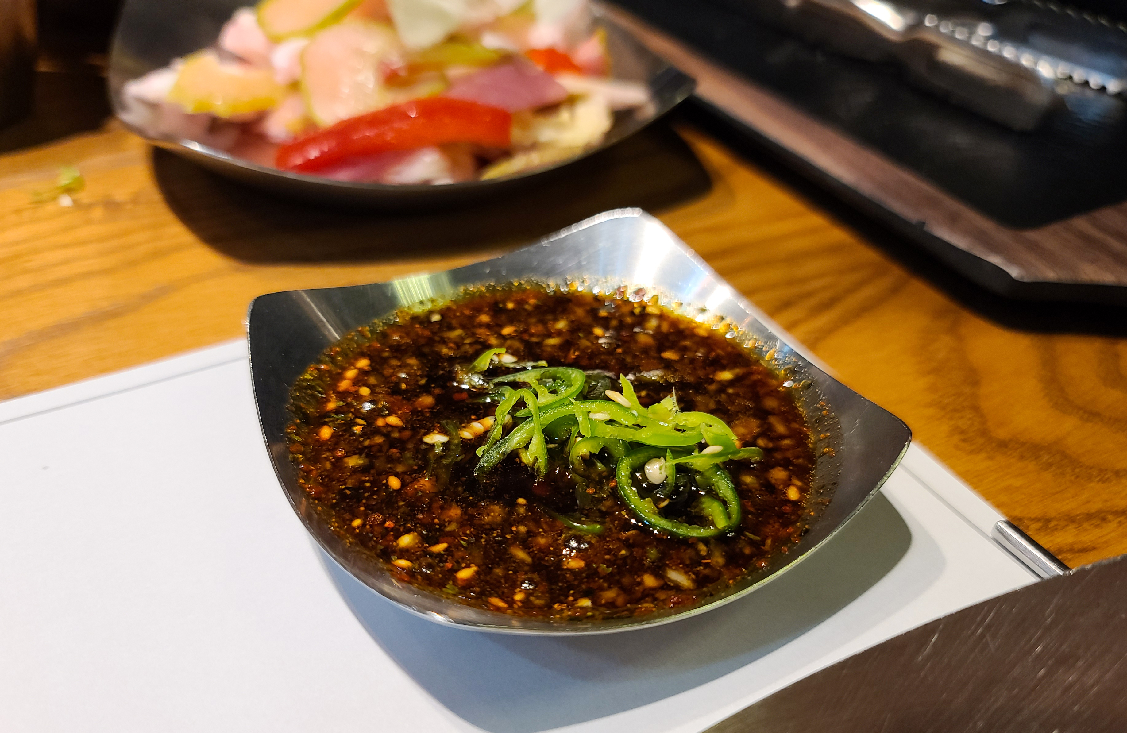 먼저 양갈비 프렌치렉 부터 먹어보았습니다. 간장소스에 담근 고추를 조금 집어서 양갈비 위에 얹고, 프렌치렉을 먹었는데 양고기라고 하면 "특유의 비린내" 가 있지 않을까 하는 의심이 있었는데, 그런 거 없이 오히려 소고기와 비슷하거나 소고기보다 덜 느끼하고 맛있더라고요.