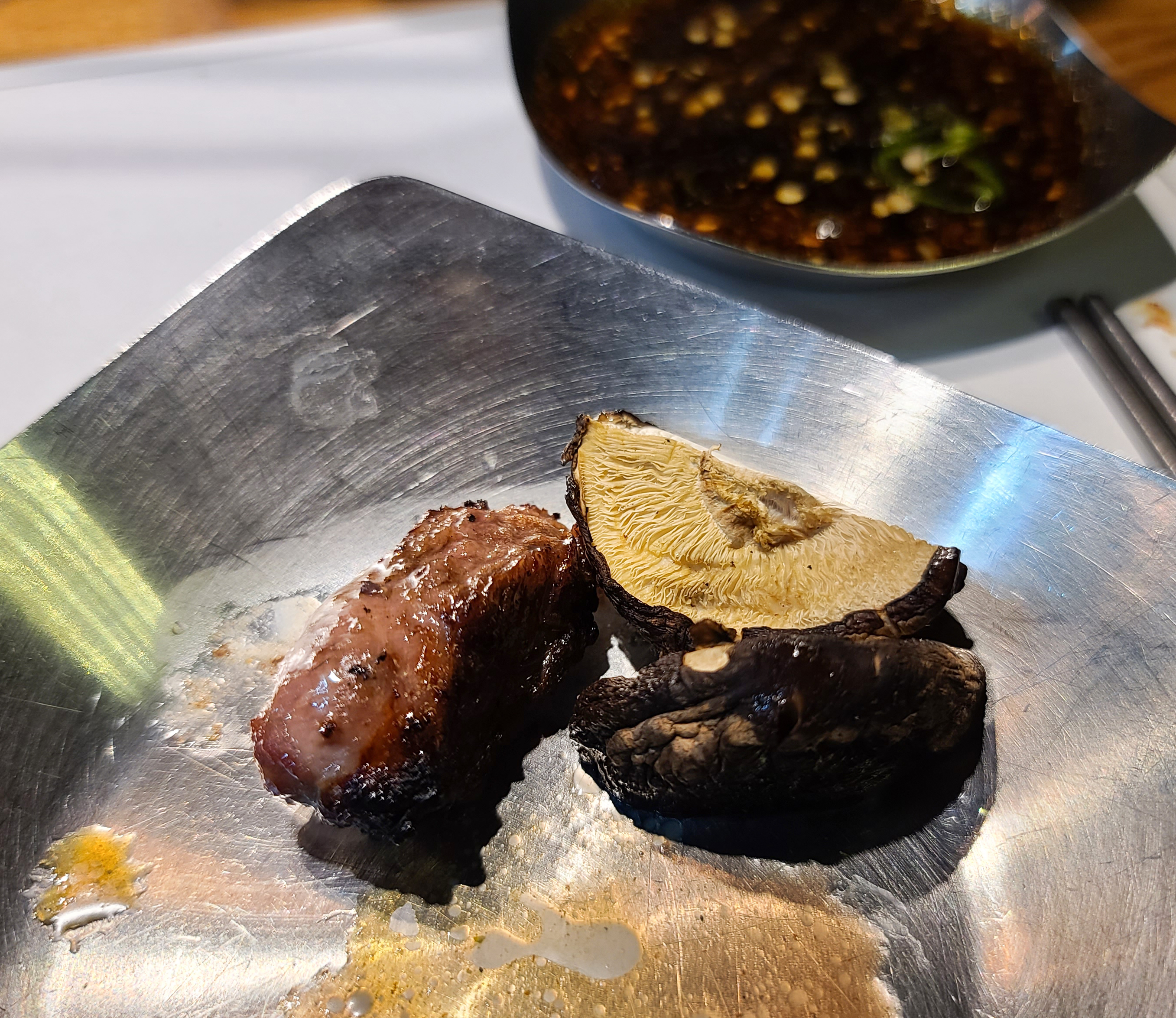 양갈비에 더해 양등심 부위도 먹었는데, 고기의 질이 좋아서 그런지 맛이 좋았습니다. 같이 구웠던 버섯이나 가지, 마늘 등과 곁들여 먹으니 더 맛있었고요. 아무래도 고급스러운 느낌이 있어서 더 좋았던 메뉴였습니다.