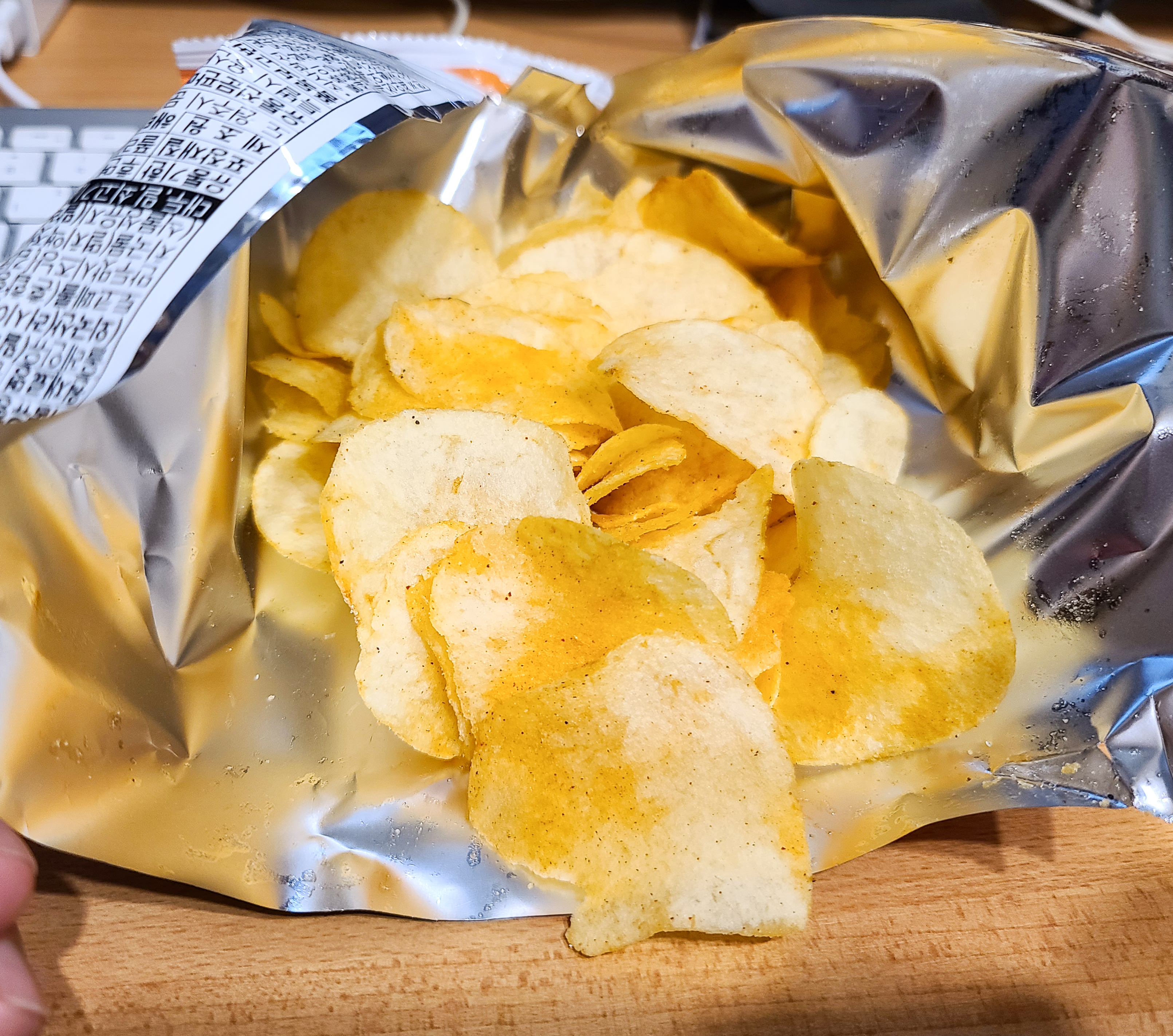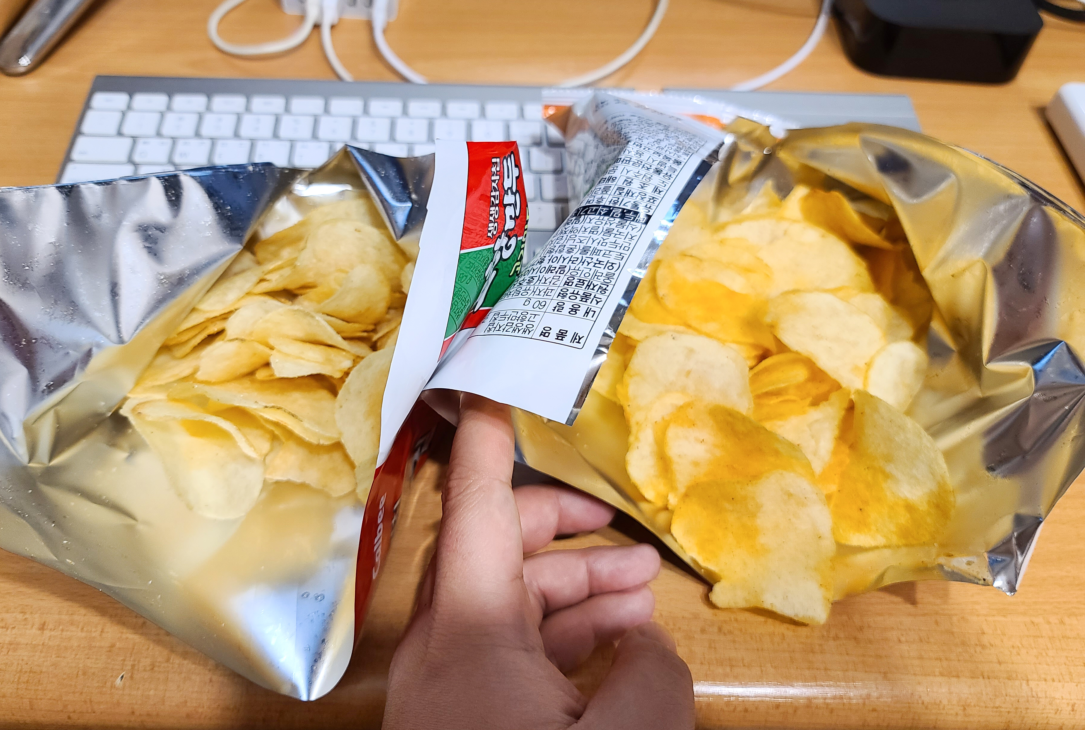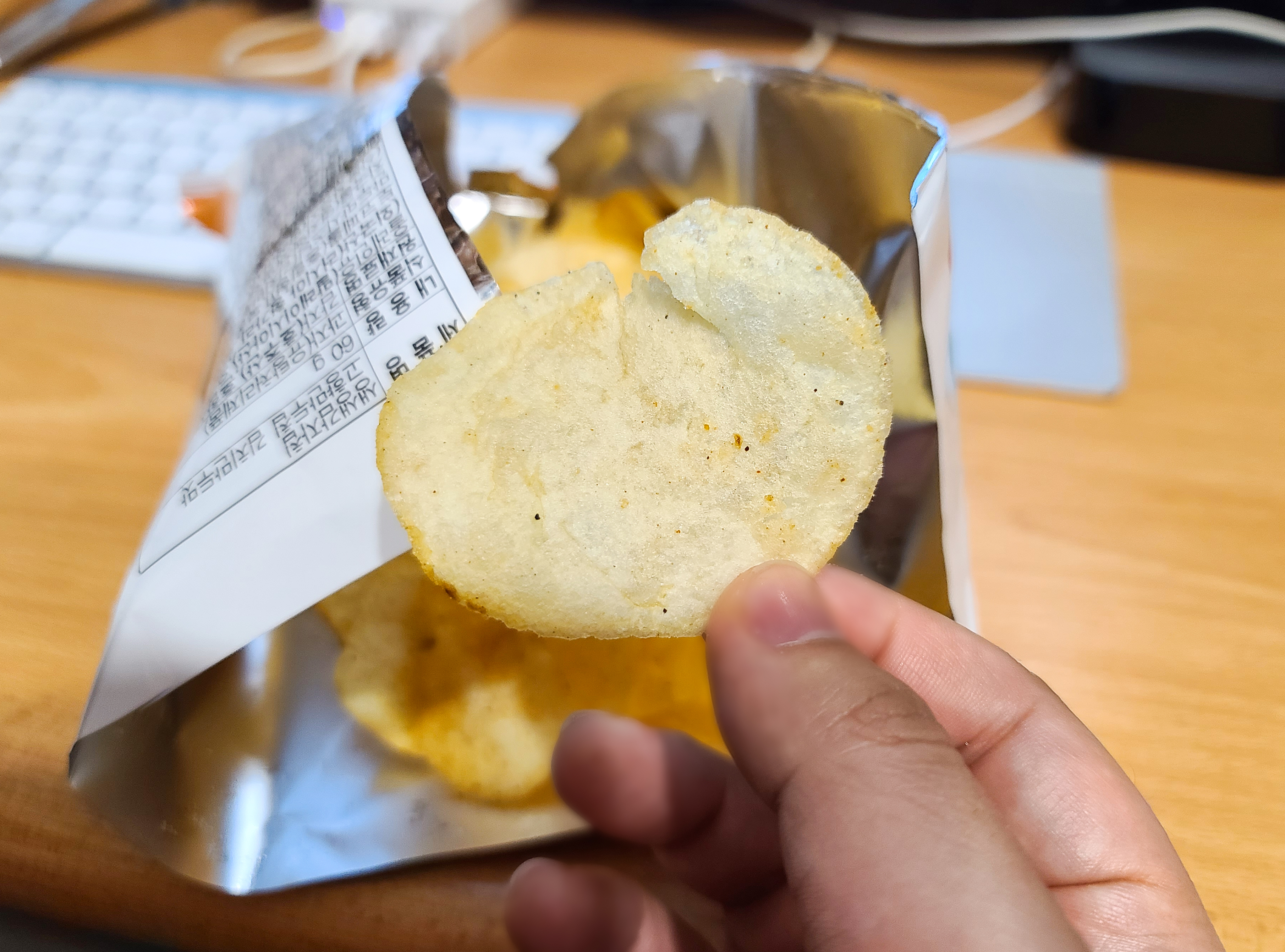 사실 고향만두 포장에 눈길을 갔지만, "감자칩의 맛은 제대로 표현이 됐을까?" 라는 의구심이 있었는데, 의외로 제가 먹었던 고향만두의 맛을 잘 살려주었습니다. 고향만두칩 고기만두맛은 물만두와 비슷한 약간 심심한 느낌의 만두 맛과 식감을 잘 표현해주었습니다. 김치만두맛 역시 인스턴트 만두의 맛 그대로 표현되어 놀랐습니다.