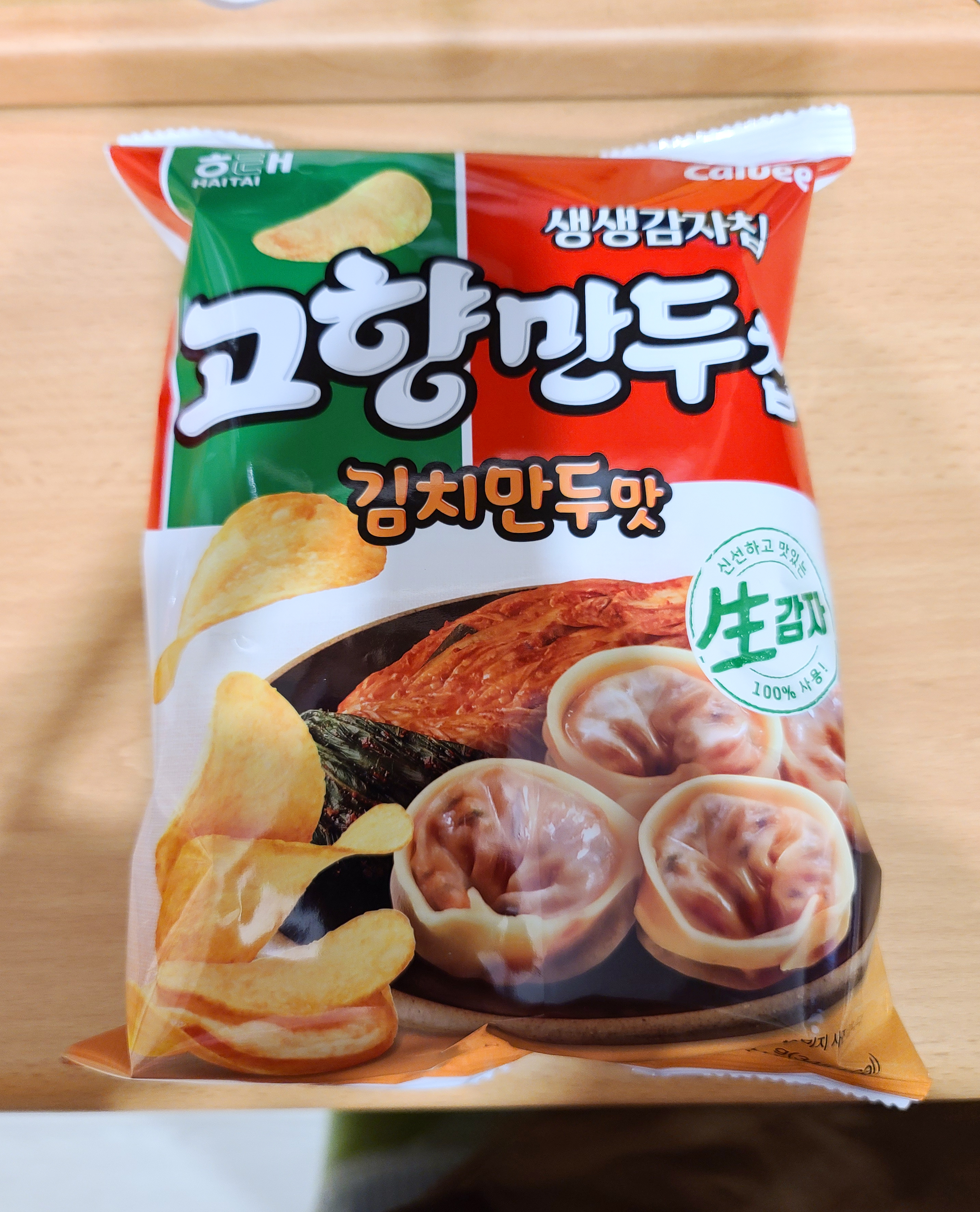 오늘은 편의점을 둘러보다가 신기한 과자를 발견해서 그 자리에서 구입해온 제품 해태 가루비 생생감자칩 <고향만두칩> 입니다.