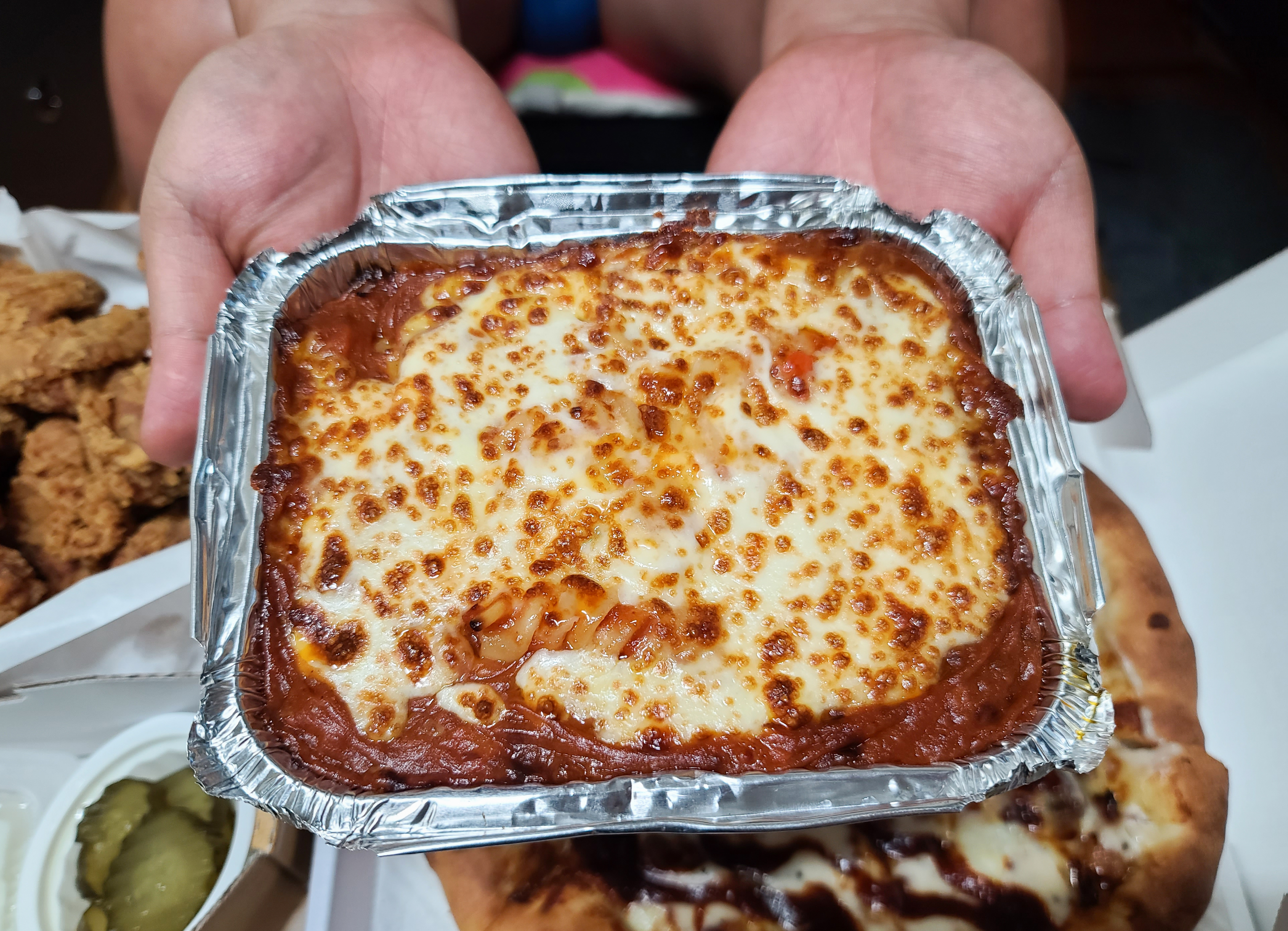 치킨을 소개해드리기에 앞서 푸실리 스파게티부터 소개해드리겠습니다. 피자나라치킨공주 푸실리스파게티는 피자와 치킨으로 조금 부족할까 봐 주문한 메뉴인데, 나선형 모양의 푸실리 스파게티와 기본적인 스파게티면을 넣고 만든 미트소스(볼로네제) 스파게티 였습니다. 치즈가 넉넉하게 들어가서 맛이 괜찮았고, 배달 과정에 조금 식어서 스파게티 면이 뭉쳐있었지만 좋았습니다.