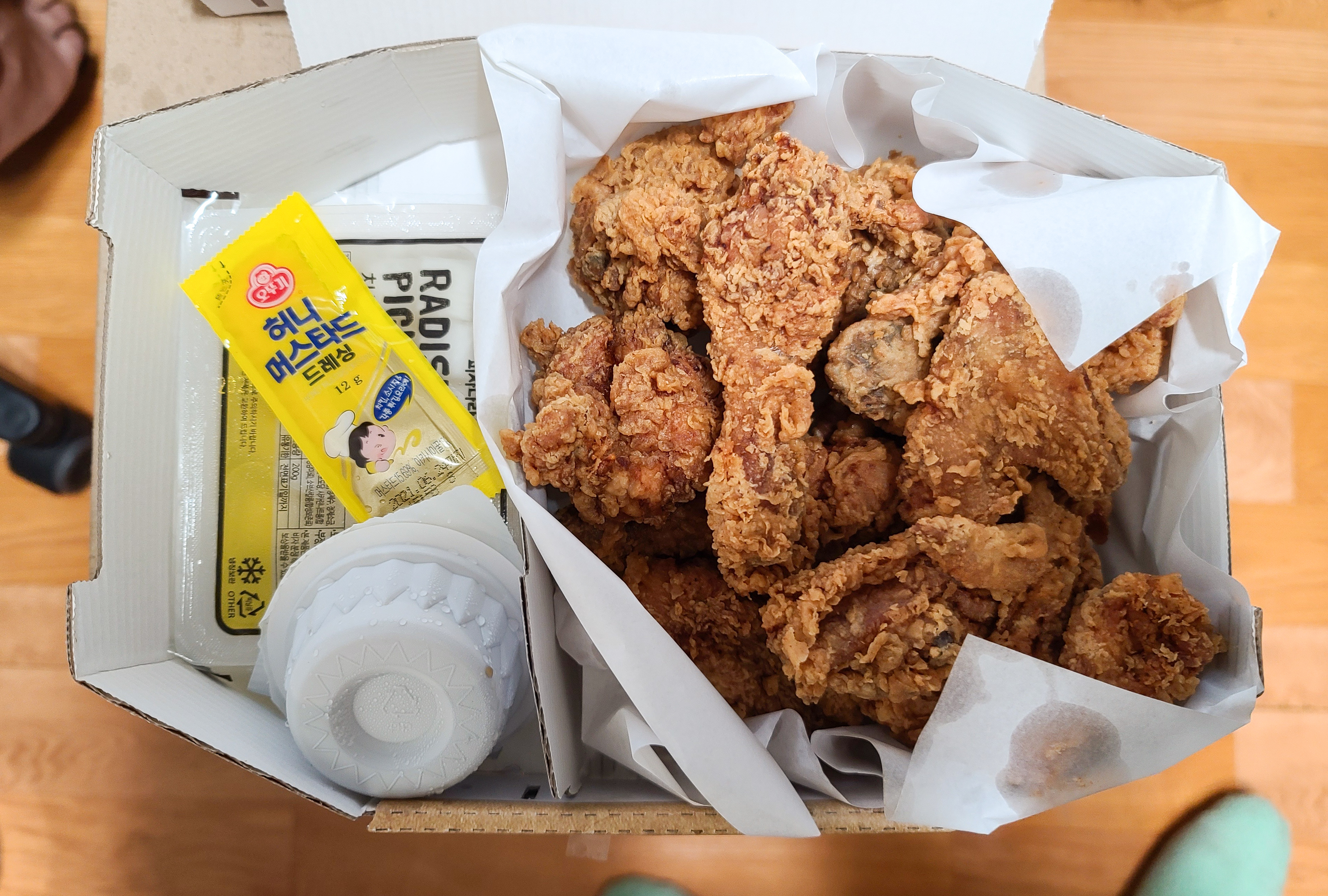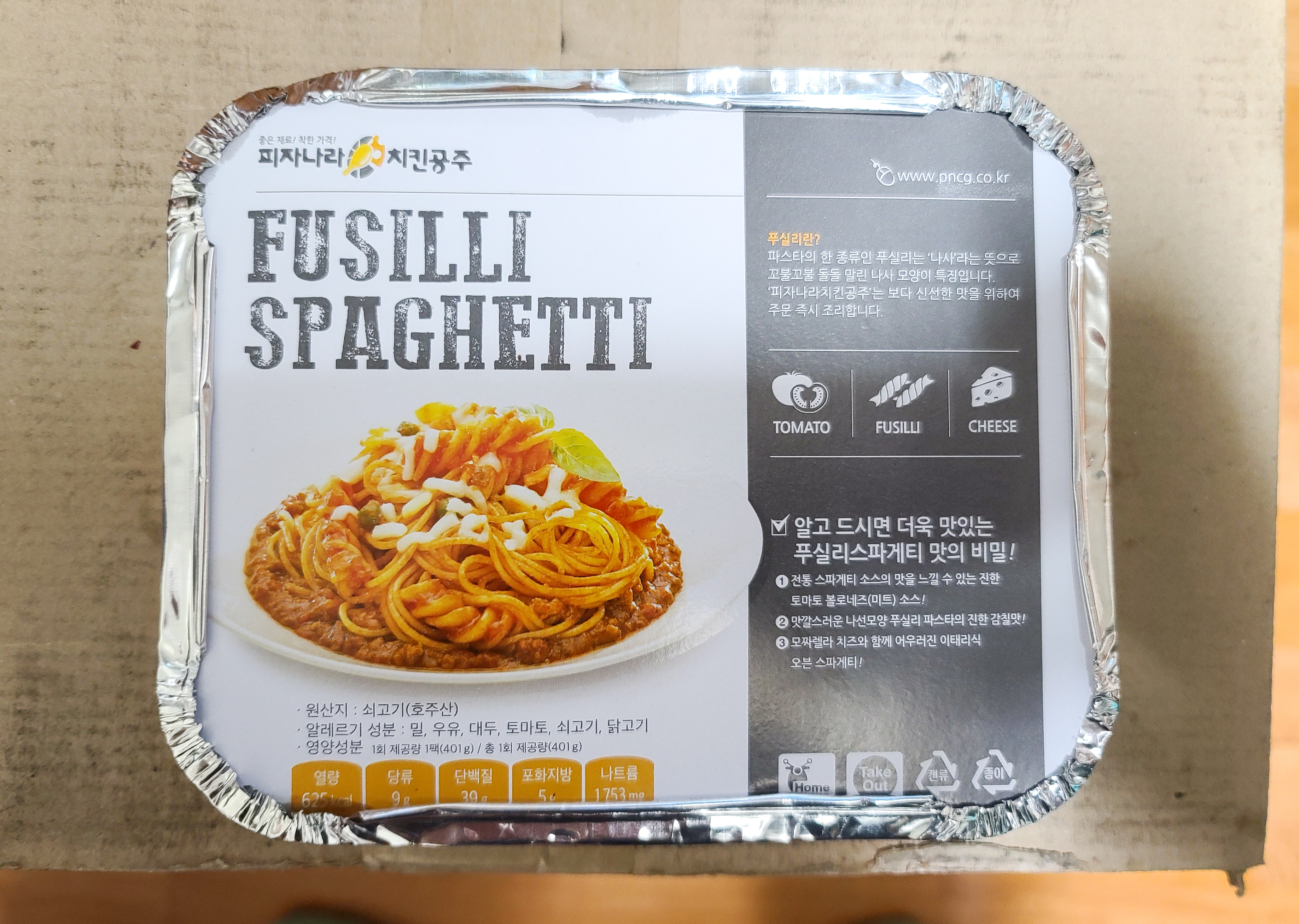치킨을 소개해드리기에 앞서 푸실리 스파게티부터 소개해드리겠습니다. 피자나라치킨공주 푸실리스파게티는 피자와 치킨으로 조금 부족할까 봐 주문한 메뉴인데, 나선형 모양의 푸실리 스파게티와 기본적인 스파게티면을 넣고 만든 미트소스(볼로네제) 스파게티 였습니다. 치즈가 넉넉하게 들어가서 맛이 괜찮았고, 배달 과정에 조금 식어서 스파게티 면이 뭉쳐있었지만 좋았습니다.