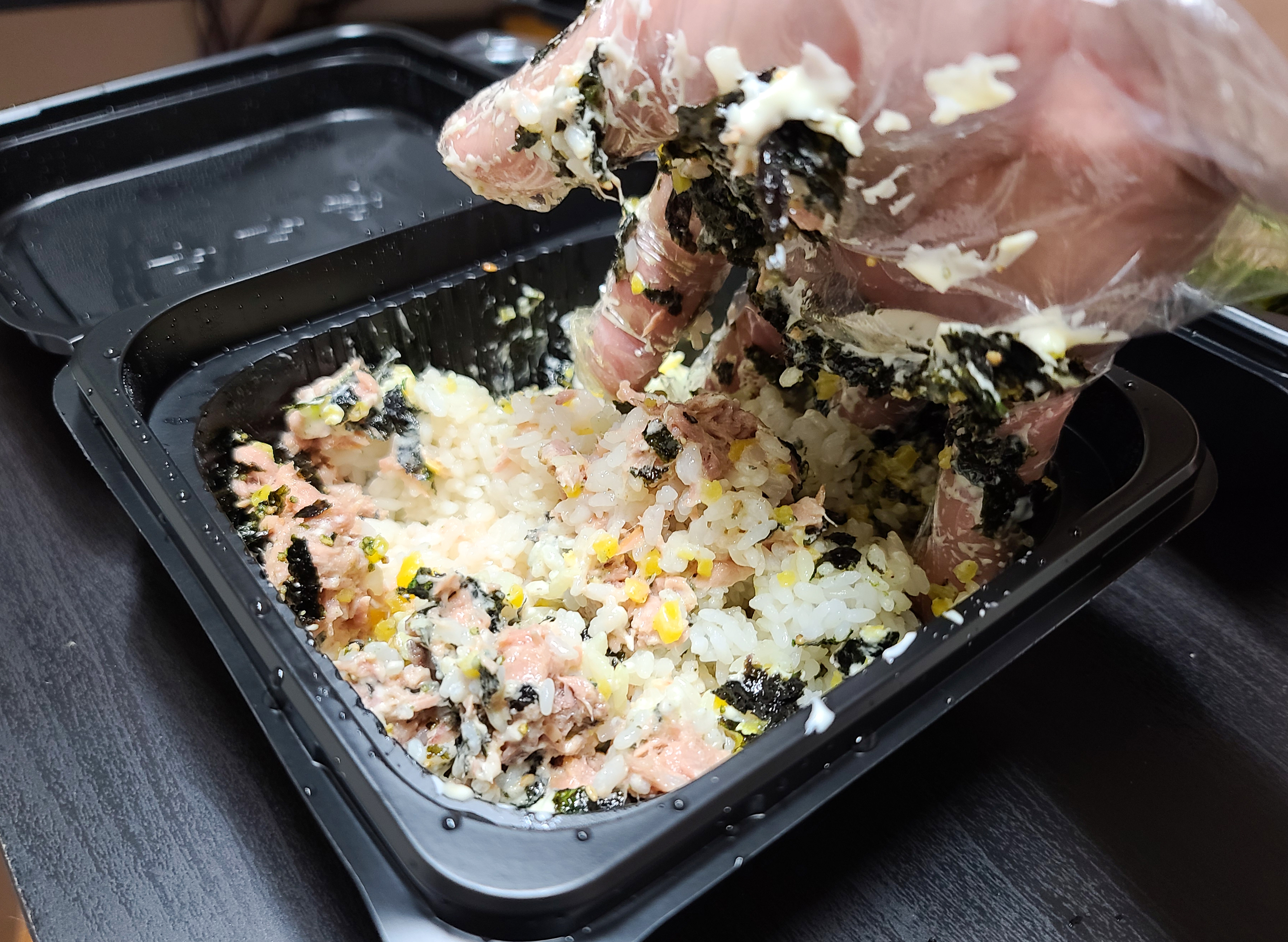 족발과 함께 참치 주먹밥도 먹기 좋게 비벼주었고, 막국수도 젓가락을 이용해 양념을 잘 섞어주었습니다. 저희가 주문한 족발은 반반족발로 구구족의 기본 족발과 매운 양념 족발을 동시에 맛볼 수 있는 메뉴였습니다.