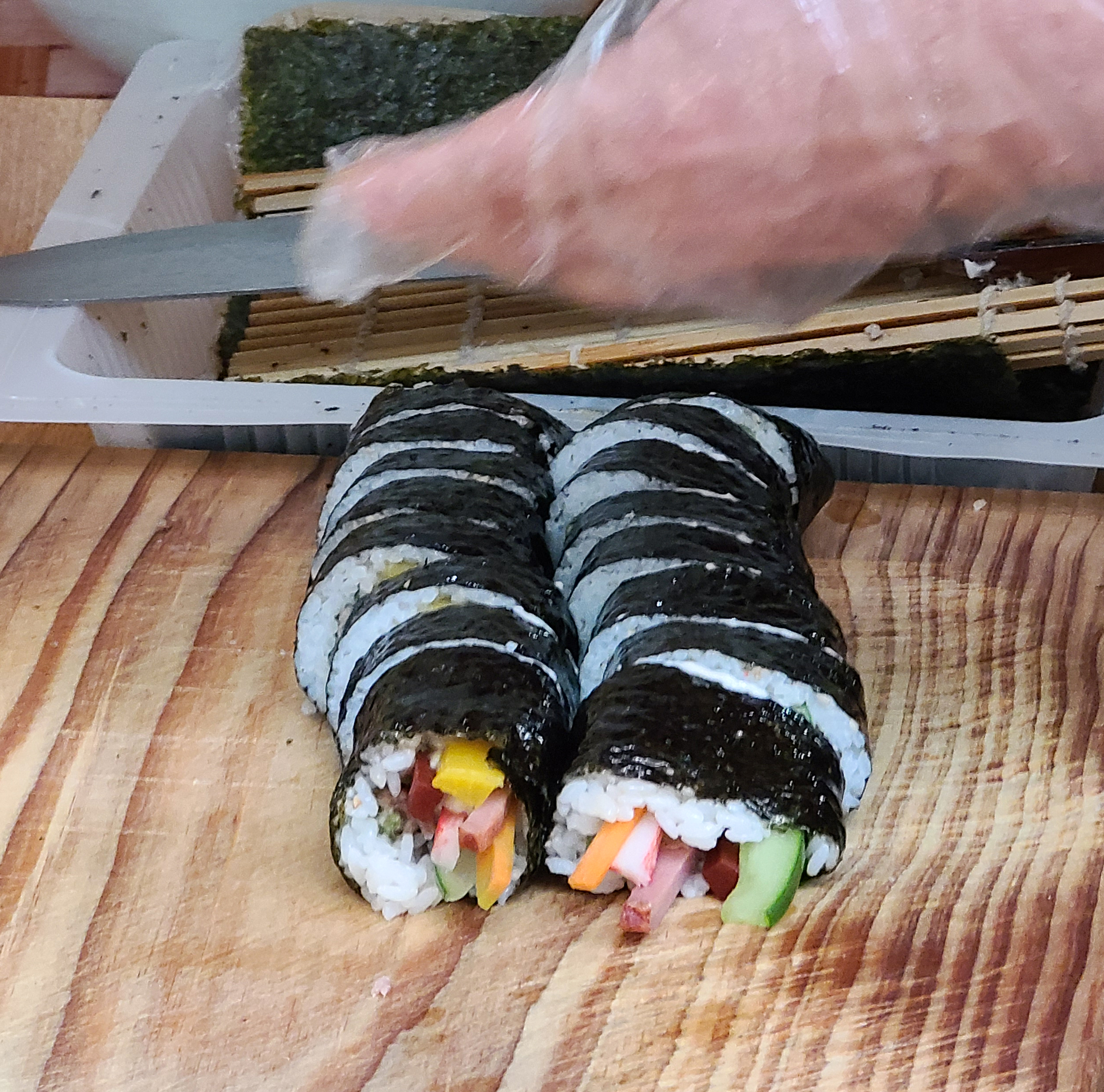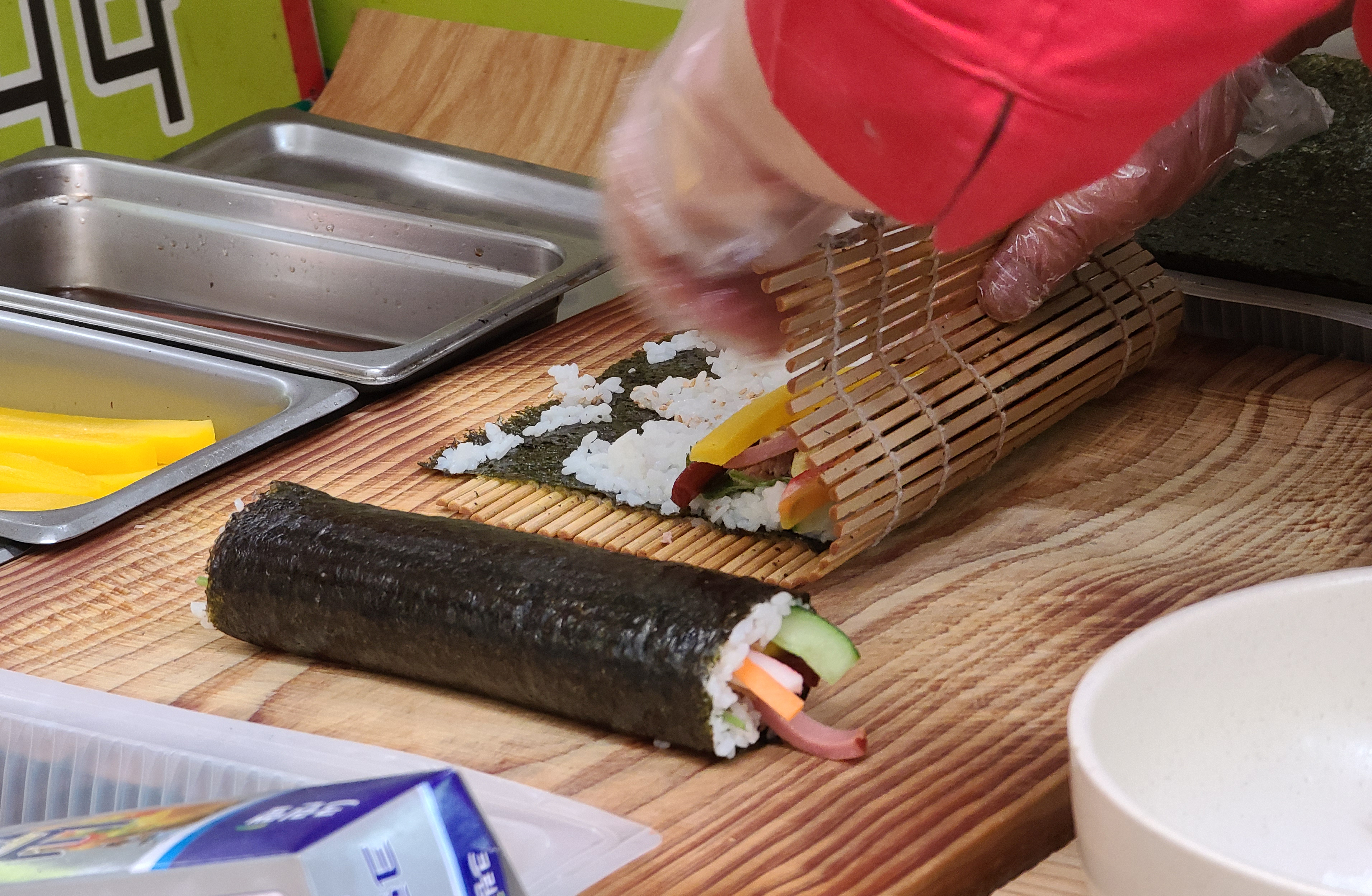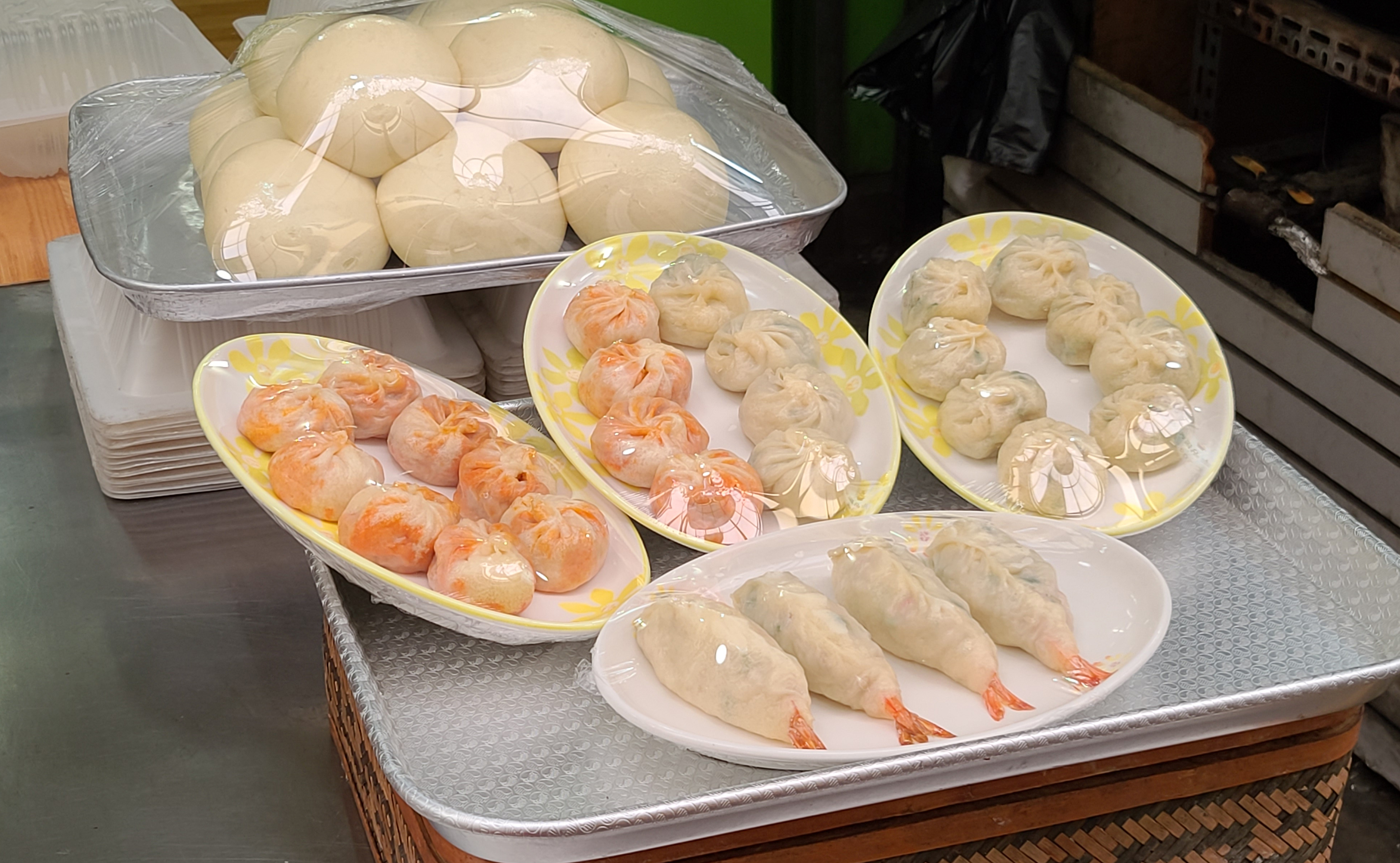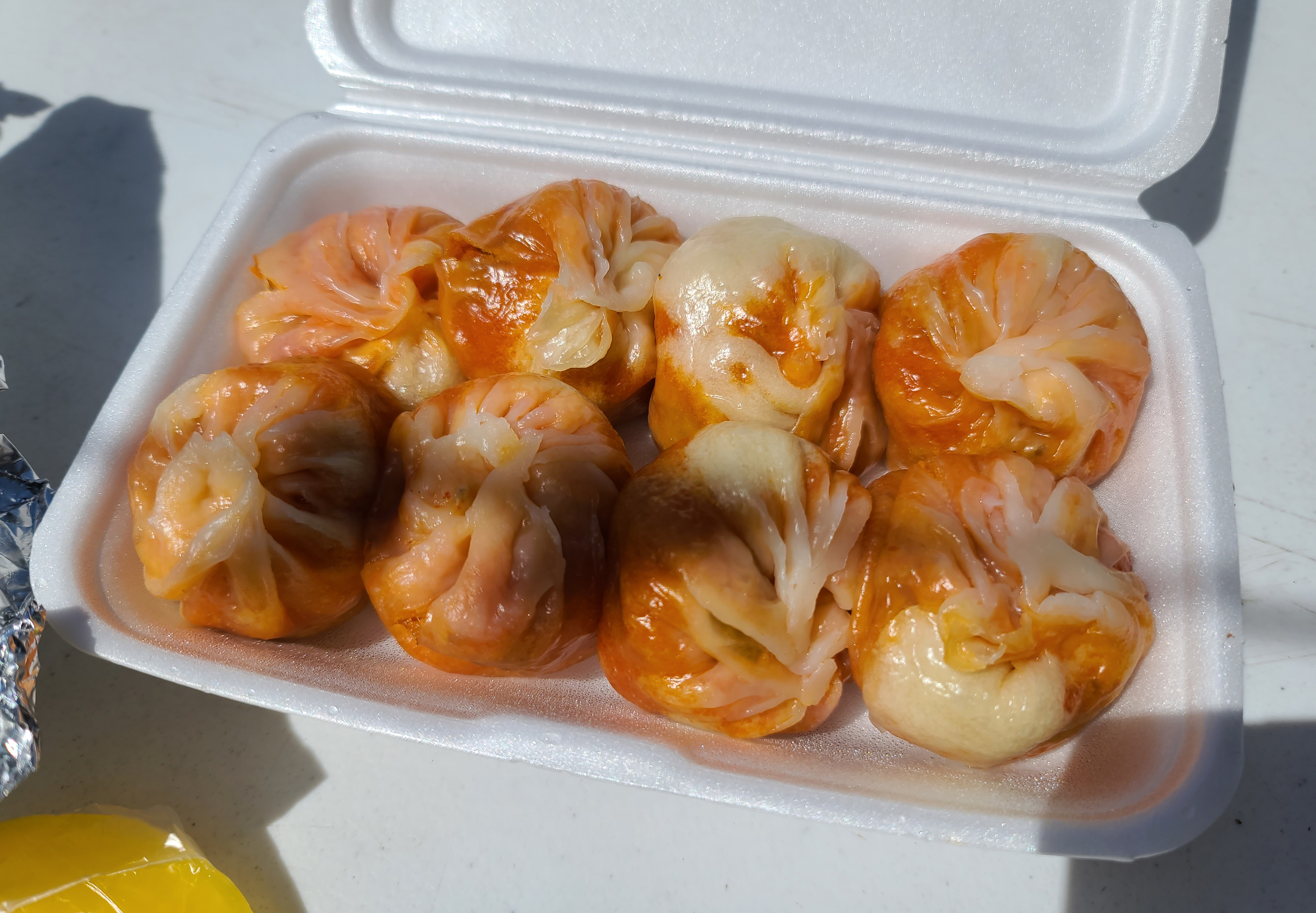 기다리는 동안 주문한 참치김밥이 준비되었고, 신사시장 모두랑분식의 참치김밥은 여느 분식집과 다를 것 없이 당근, 맛살, 햄, 오이, 단무지 등의 재료가 들어간 투박한 김밥이었습니다. 만두는 널찍한 찜기에서 직접 꺼내 담아주었고 포장하여 집으로 돌아왔습니다.