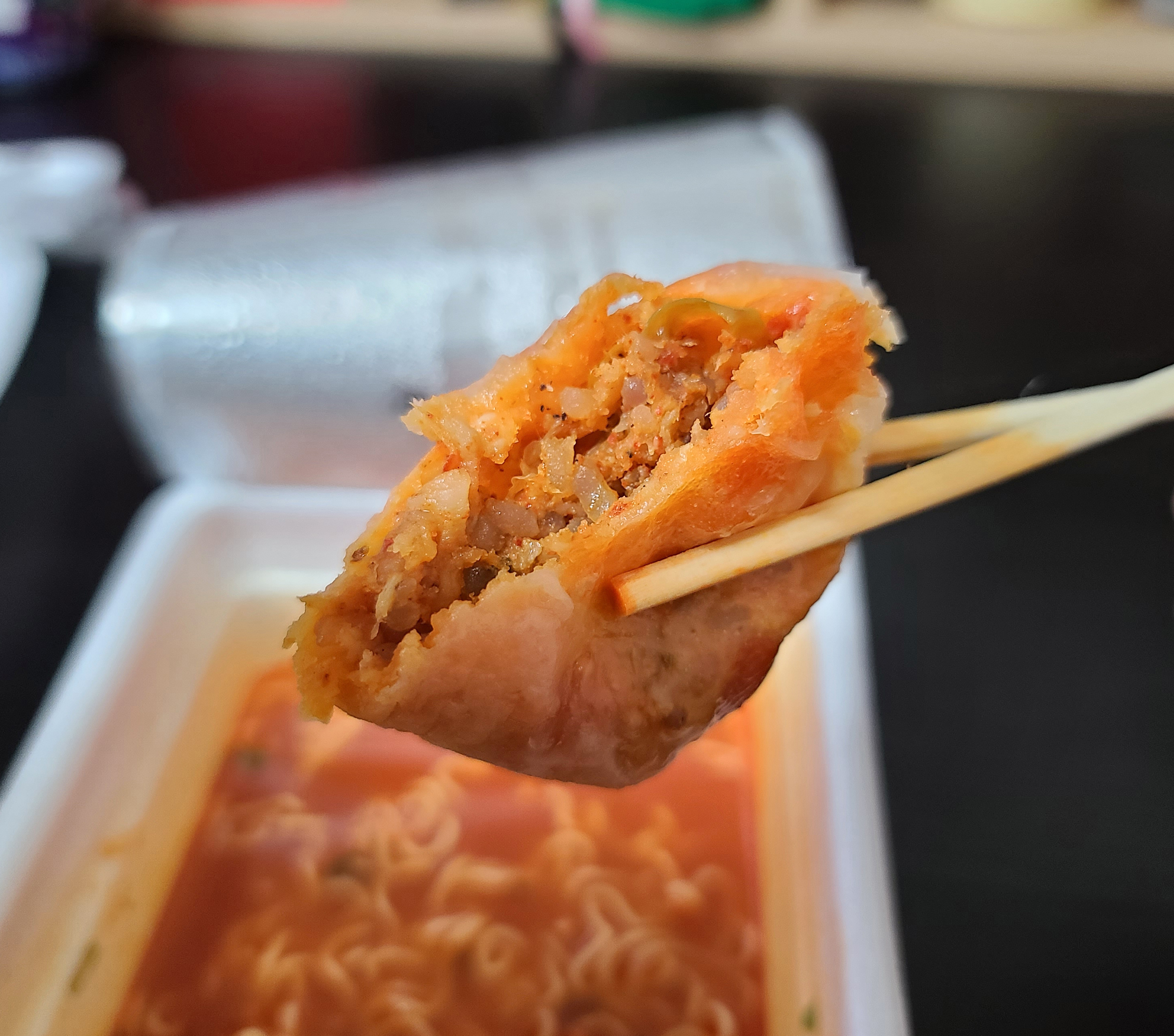 신사시장의 모두랑분식에서 사 온 참치 김밥은 뭐 딱히 특별할 것 없는 김밥이었습니다. 신림동 모두랑분식의 김치만두는 독특한 게 만두피가 약간 도톰하여 찐빵 같은 느낌의 만두였습니다. 나름 쫀득하면서 맛있었습니다. 오랜만에 분식집에서 김밥과 만두를 사 와서 간단하게 끼니를 때웠는데, 특별한 맛은 아니지만 종종 가볍게 먹을 때 이용하면 괜찮을 것 같았습니다.