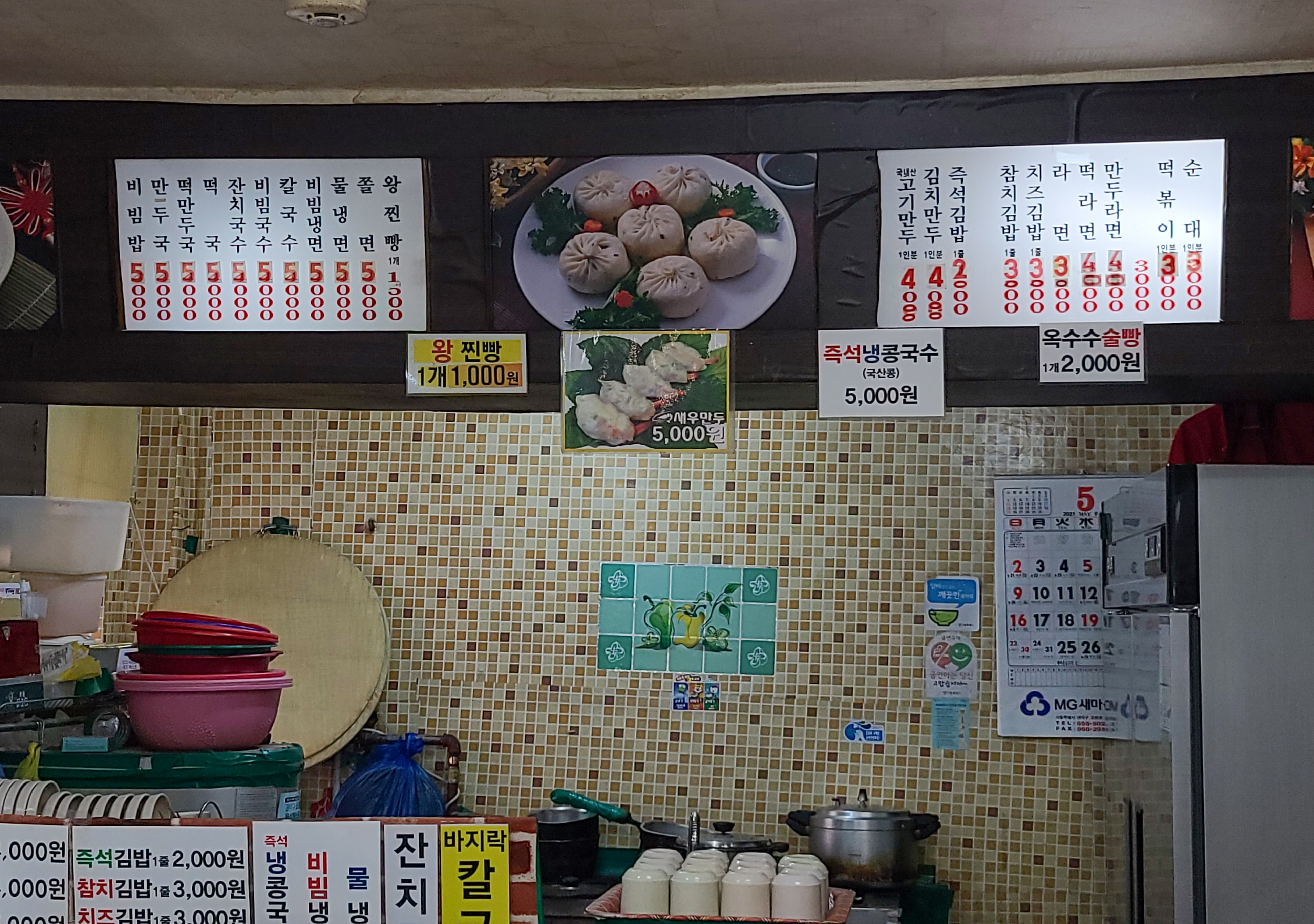 신림동 신사시장에 위치한 모두랑분식의 외관은 오랜 세월이 흘러 허름한 분위기였고, 김밥과 만두, 순대, 떡볶이 등을 판매하는 것 같더라고요. 가게 안으로 들어가니 일반 분식집처럼 다양한 메뉴를 판매하고 있었습니다. 비빔밥, 만두국, 떡만두국, 떡국, 잔치국수, 비빔국수, 칼국수, 비빔냉면, 물냉면, 쫄면, 왕찐빵, 고기만두, 김치만두, 즉석김밥, 참치김밥, 치즈김밥, 라면, 떡라면, 만두라면, 떡볶이, 순대 등을 판매하고 있었습니다. 가격대는 2,000원~ 5,000원 대로 부담스럽지 않은 가격이었습니다.