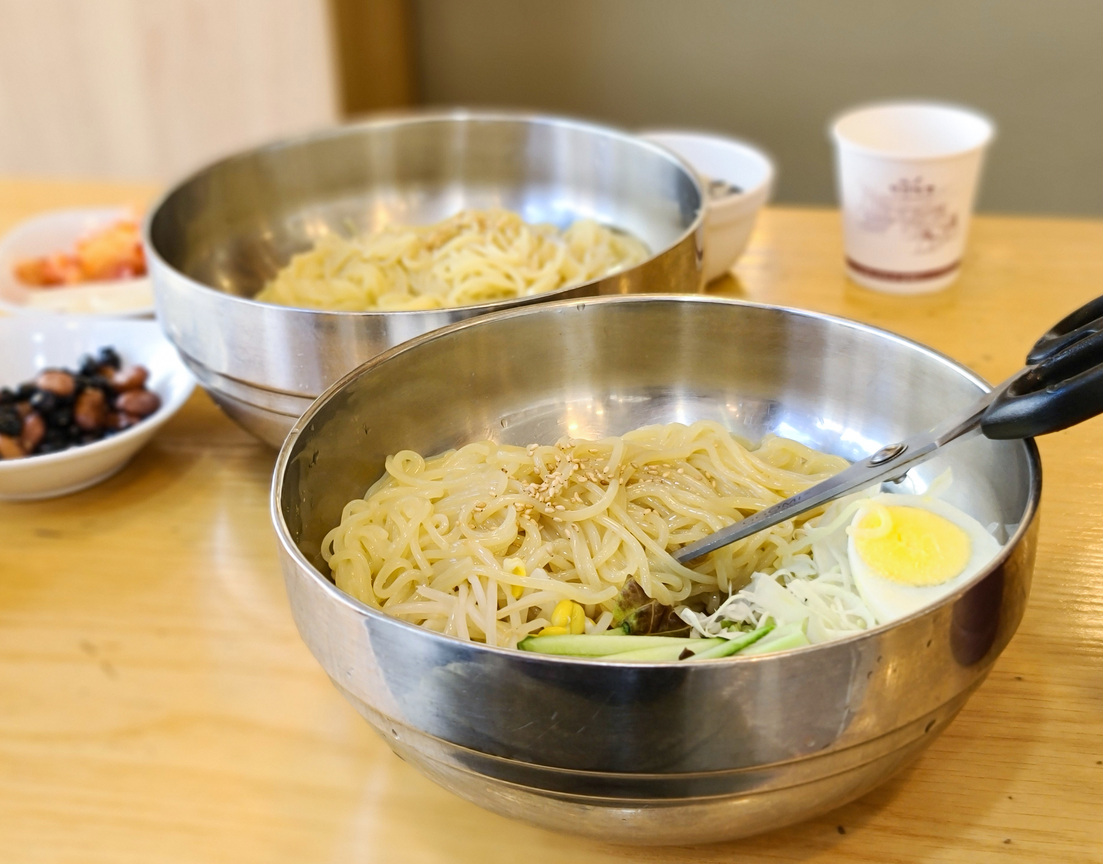 쫄면은 아삭아삭 콩나물과 삶은 달걀, 상추 그리고 채 썬 양배추가 들어있었습니다. 양념장은 별도로 제공되어 원하는 만큼 뿌려서 먹으면 되었는데, 역시 여름엔 냉면이나 쫄면이 입맛을 돋우는 것 같습니다.