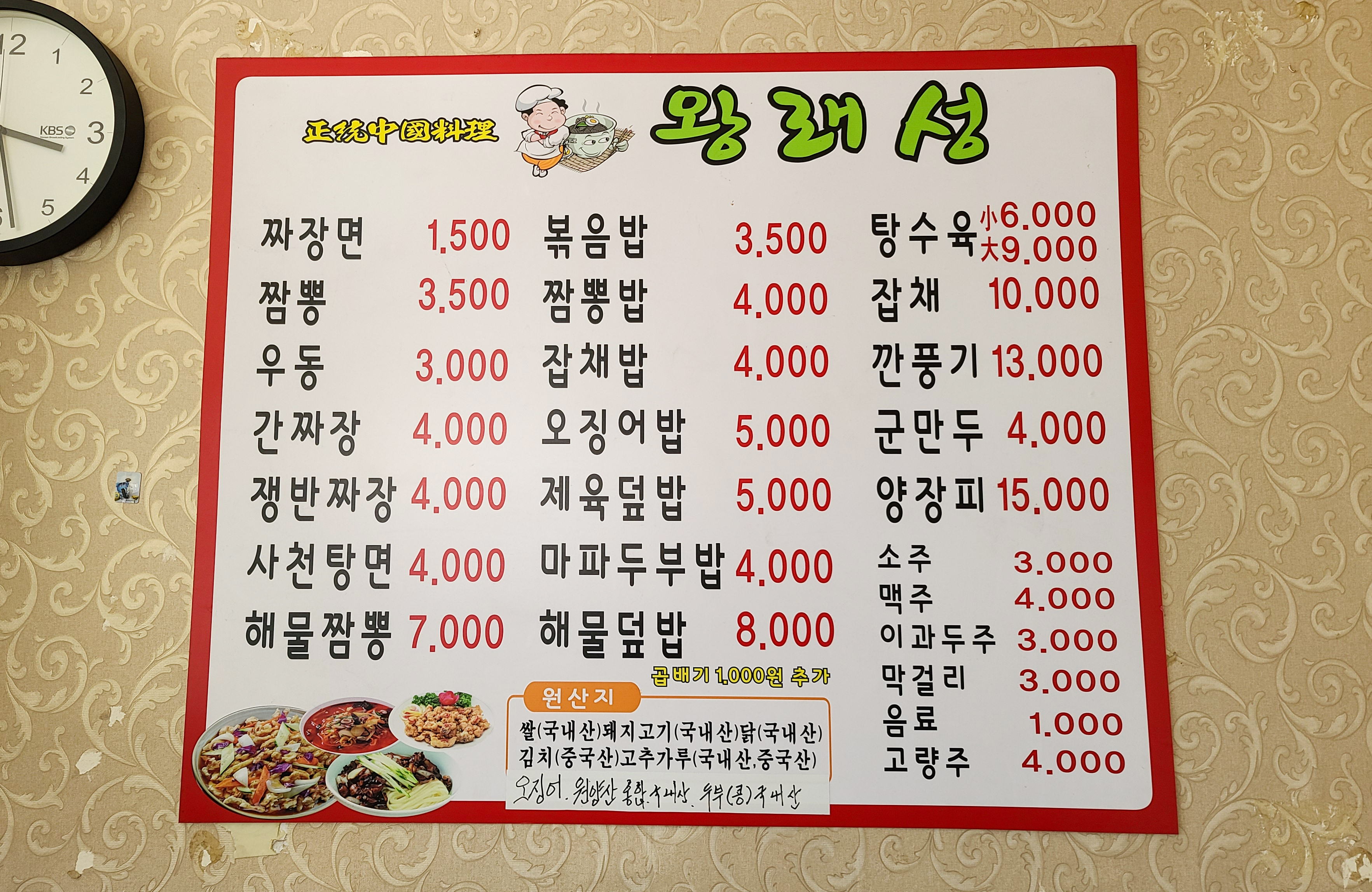 금천구 독산동에 위치한 왕래성은 짜장면 1,500원, 짬뽕 3,500원, 탕수육 6,000원이라는 믿기지 않는 가격에 판매하고 있는 중국집이었습니다. 가게 내부는 작지만 실속 있는 구조로 되어있었고, 음식을 받고 반납하는 과정까지 손님이 직접 하도록 되어있었습니다. 그런 번거로움이 있더라도 짜장면 1,500원이라는 가격은 정말 혜자스럽다고 생각이 들더라고요.