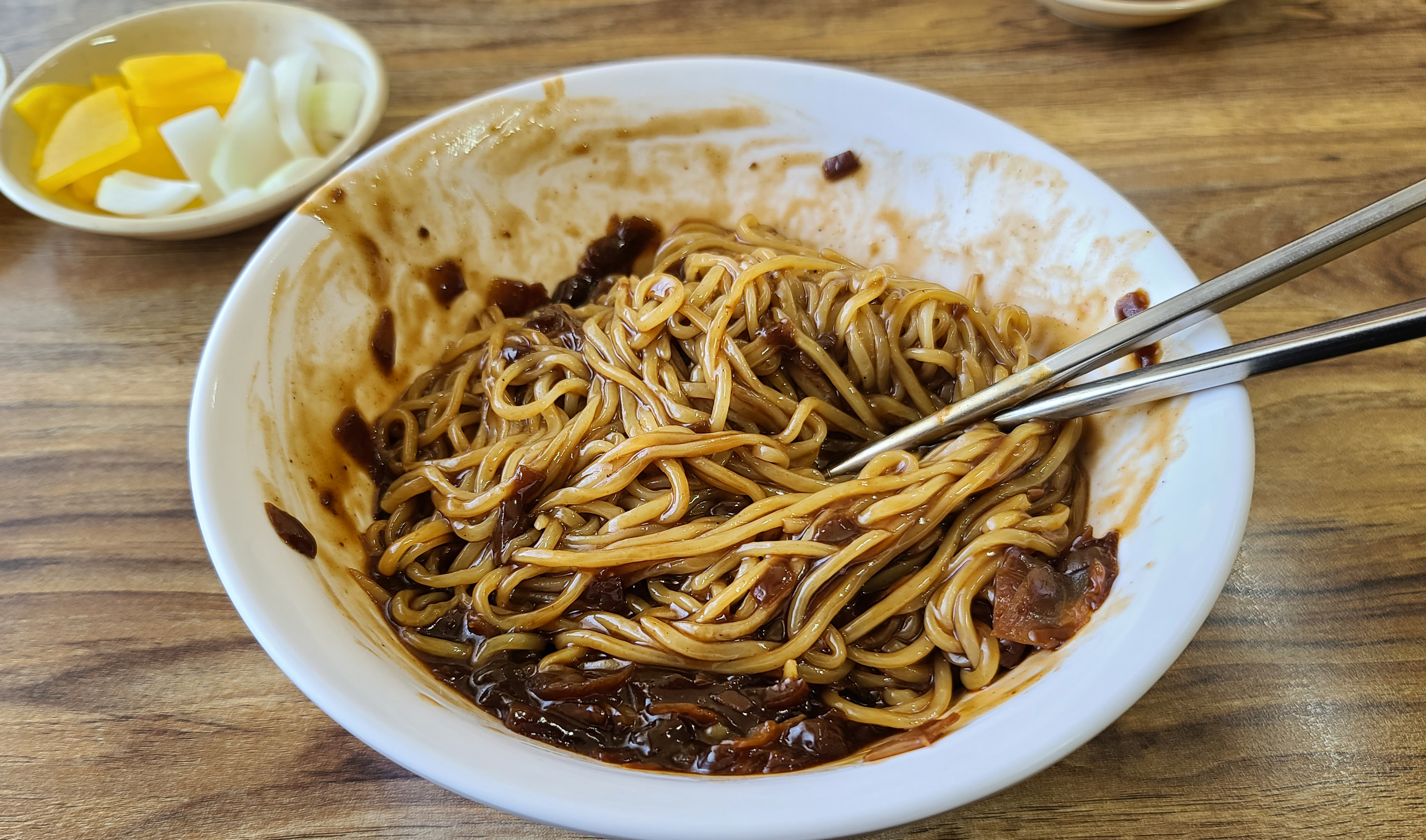 짜장 소스는 약간 달큼한 맛이 있었는데, 보통 저렴한 중국집 하면 텁텁한 춘장 맛이 강한 편인데 나름 단 맛도 나면서 짜장에 들어간 재료는 특별하지 않지만 맛있게 먹을 수 있었습니다.
