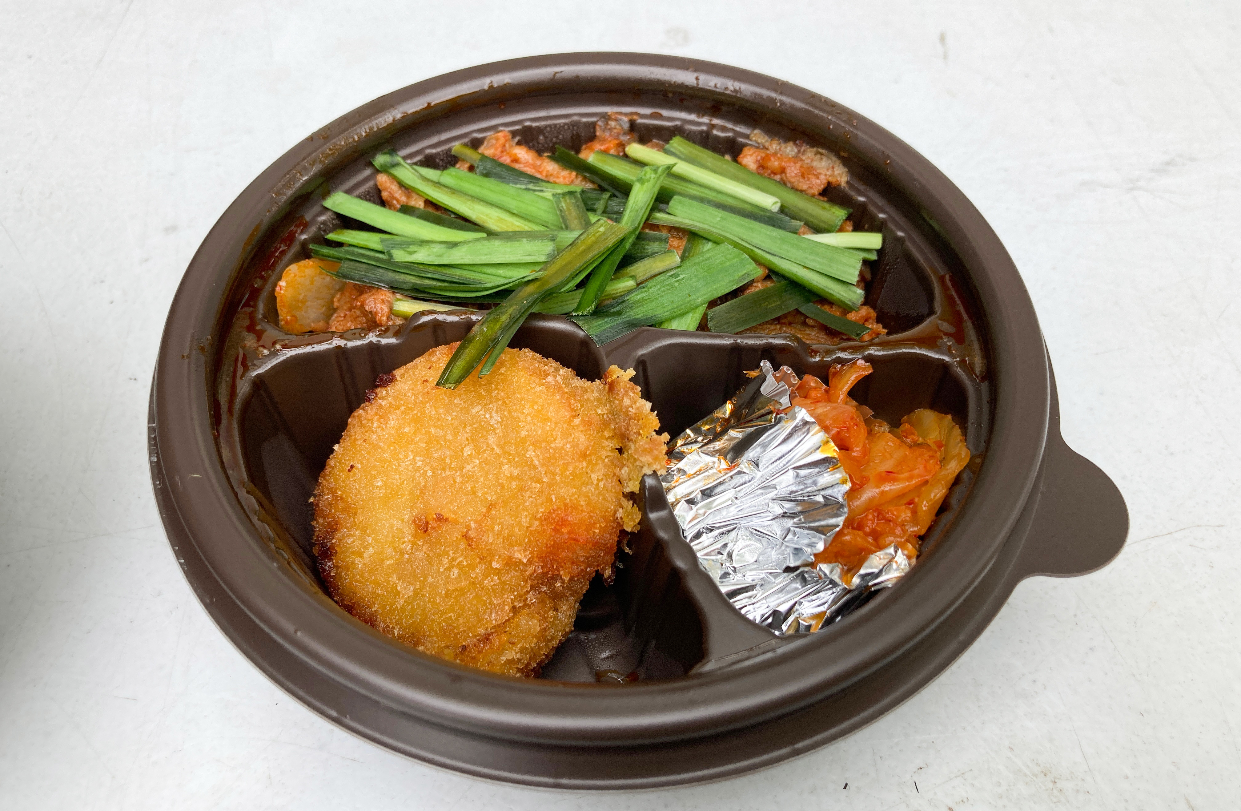다시 본론으로 돌아와서 본도시락의 제주 모자반 미역국의 구성은 제주 모자반이 들어간 미역국과 바싹불고기, 달걀부침과 김치, 튀김이 있었습니다. 의도한 바는 아닌데 찍고 보니 본도시락 홈페이지의 이미지 컷과 비슷한 구도와 구성으로 찍었더라고요.
