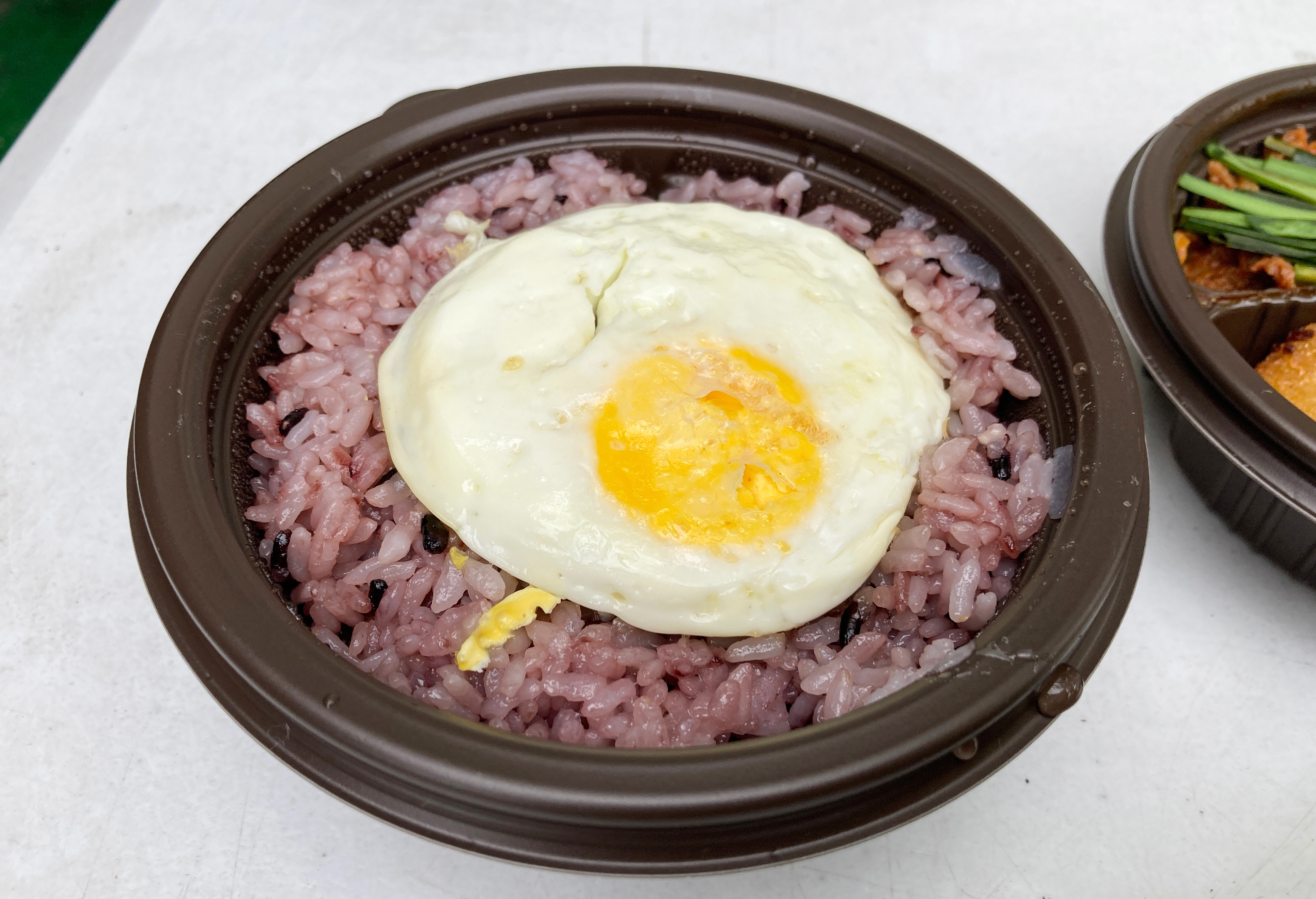 미역국에는 미역과 모자반이 들어가 있었고, 국물의 맛은 너무 짜거나 자극적이지 않고 맛있었습니다. 밥은 꽤 여유 있는 양을 주셨는데 밥을 꾹꾹 눌러 담았는지 제가 평소 식사하는 양보다 많이 있었습니다. 밥 위에 달걀프라이도 이쁘게 올려놓았더라고요. 그래도 동그랗게 모양을 잡아서 부쳐서 먹기 편하더라고요.