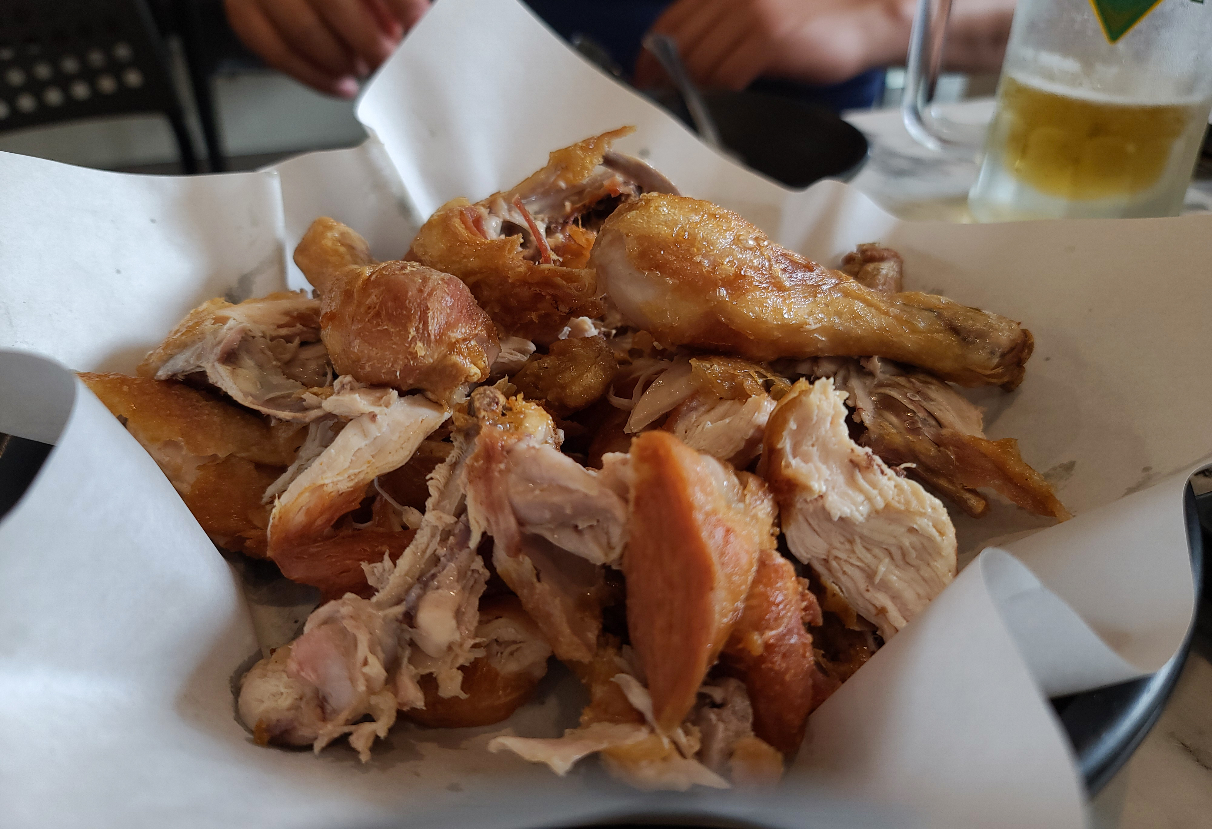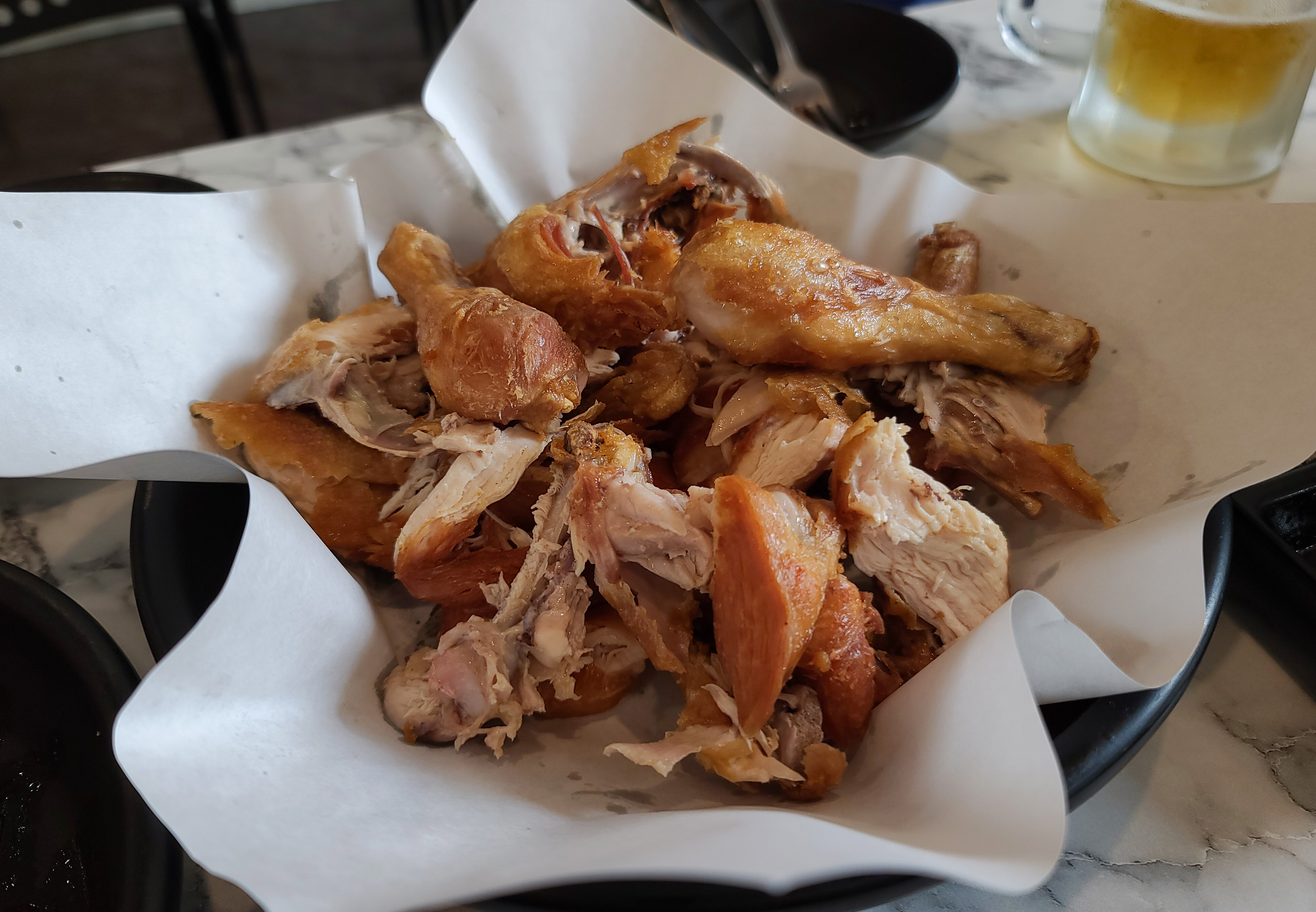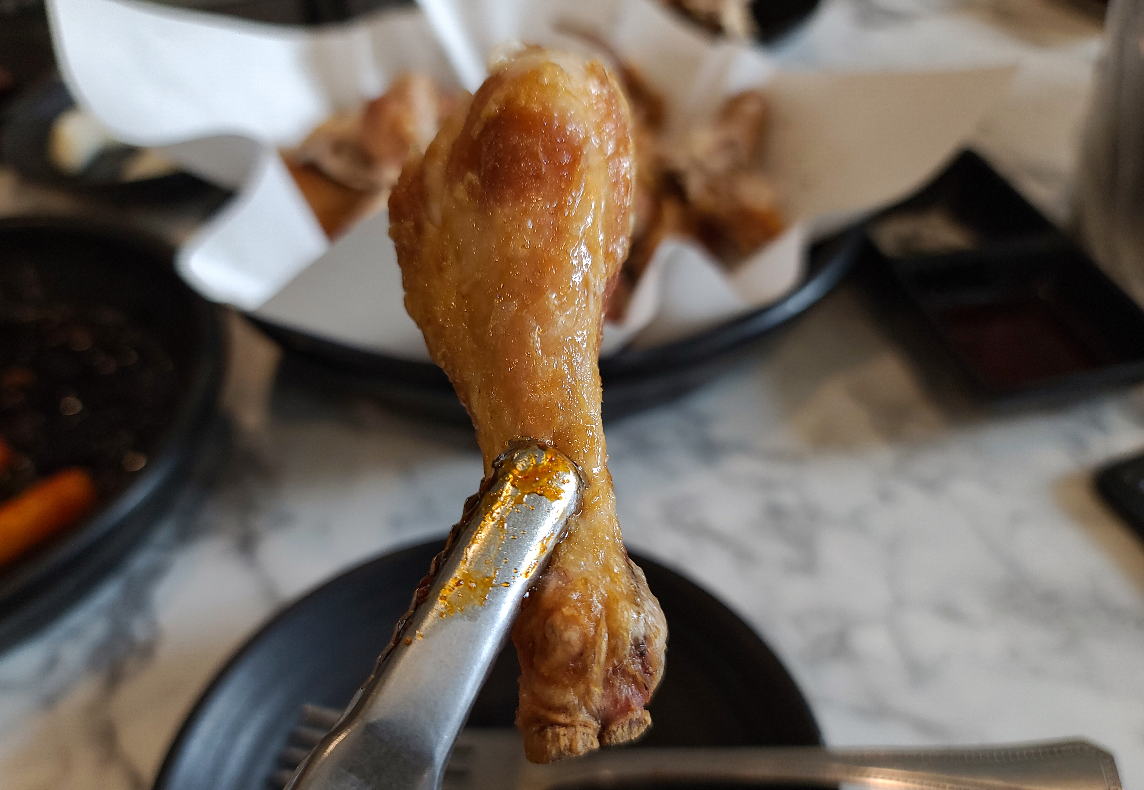 다가마통닭의 옛날통닭은 가마솥에 통째로 튀긴 치킨을 손으로 직접 찢어서 가져온 메뉴입니다. 바삭한 껍질과 촉촉한 속살이 특징인 메뉴인데, 약간 아쉬운 점이 있다면 이 옛날통닭은 금세 속살이 퍽퍽해지는 경향이 있습니다. 가급적이면 바로 먹는 게 가장 맛있게 먹는 방법인 것 같고요.
