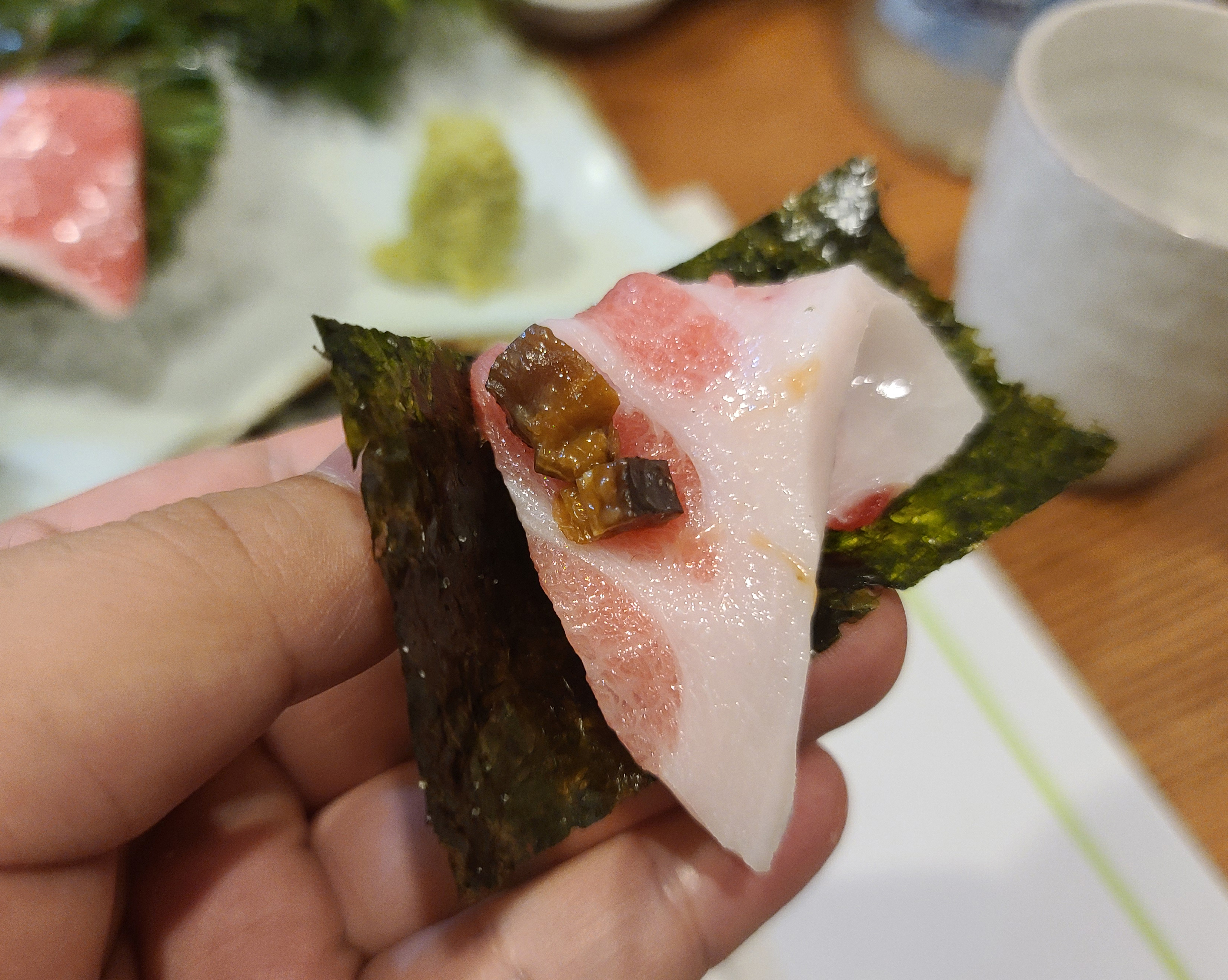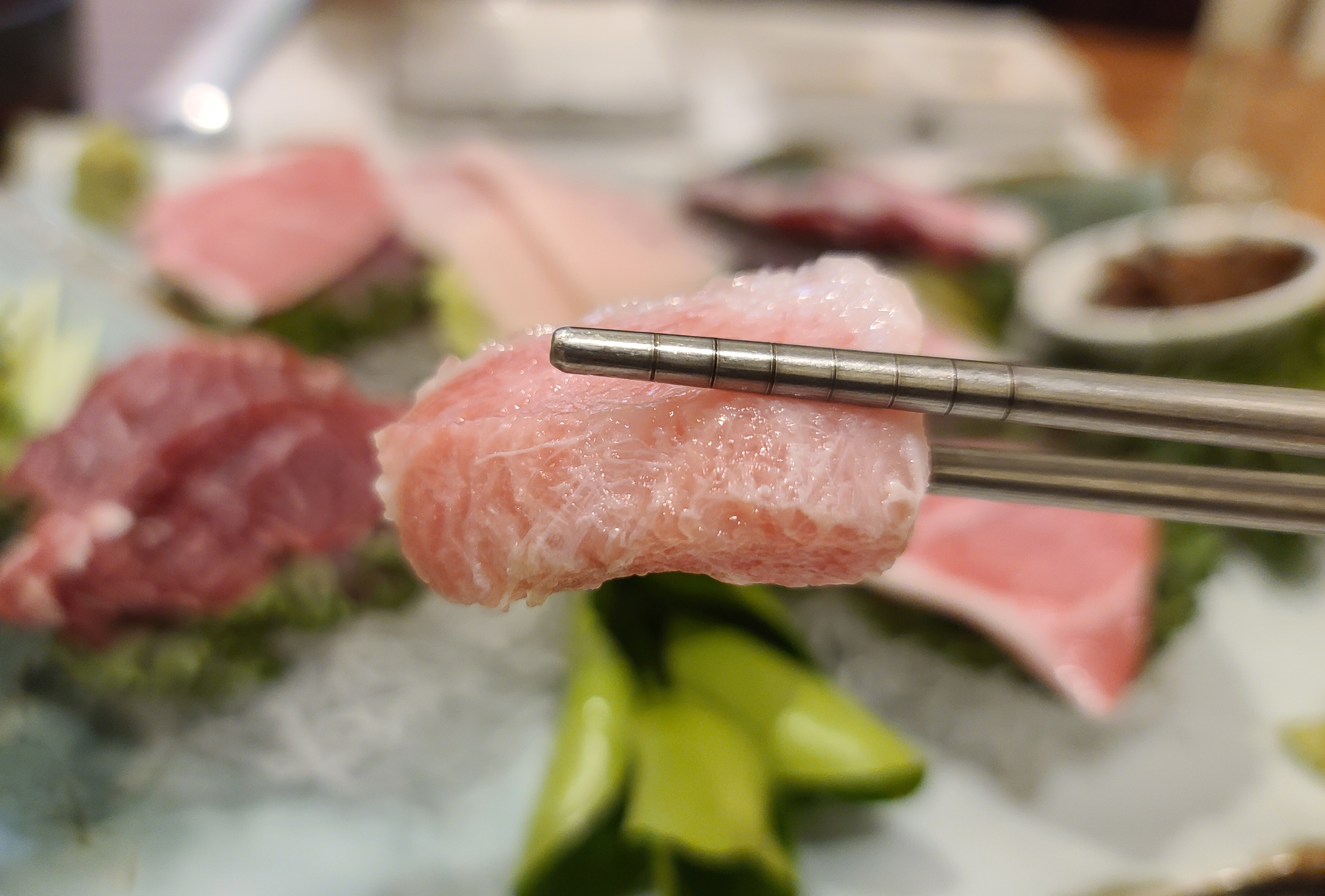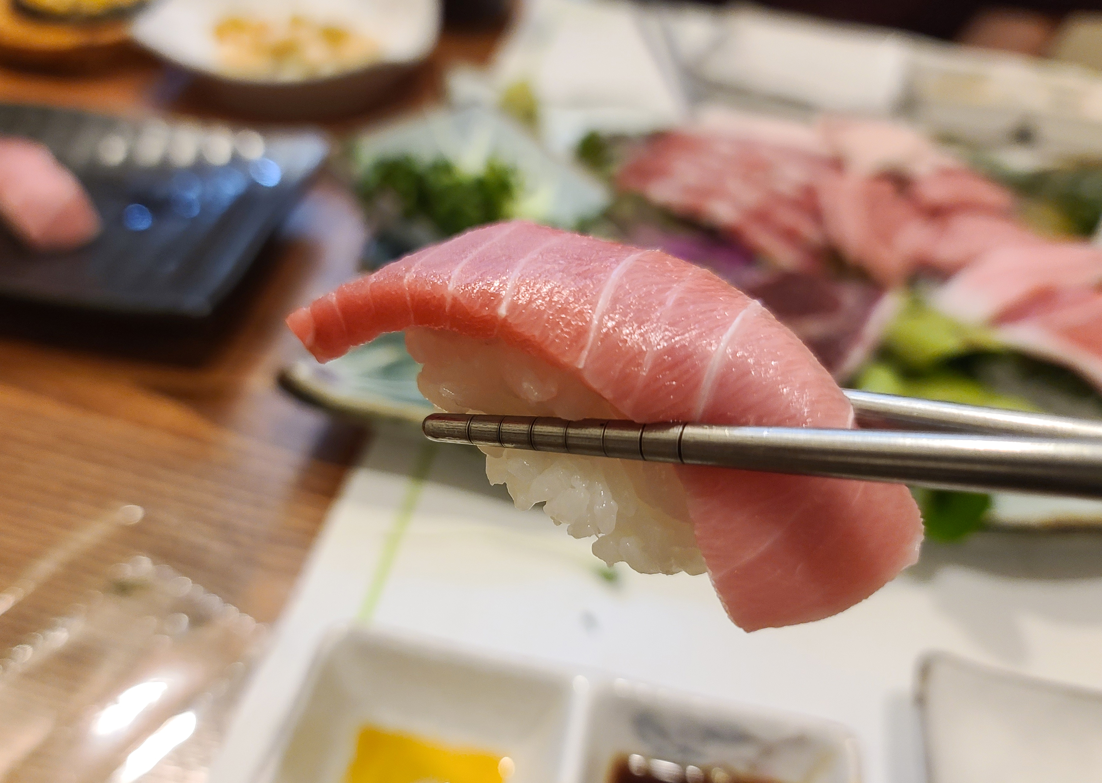 참치는 전체적으로 기름진 생선이지만, 부위별로 다양한 맛을 보여주는 물고기죠. 육고기로 치자면 소고기와 비슷한 느낌인데, 실제 식감이나 맛도 소고기 느낌이 나기도 했습니다. 부위에 따라 기름장에 찍어먹거나, 고추냉이를 곁들인 간장에 찍어먹기도 했습니다.