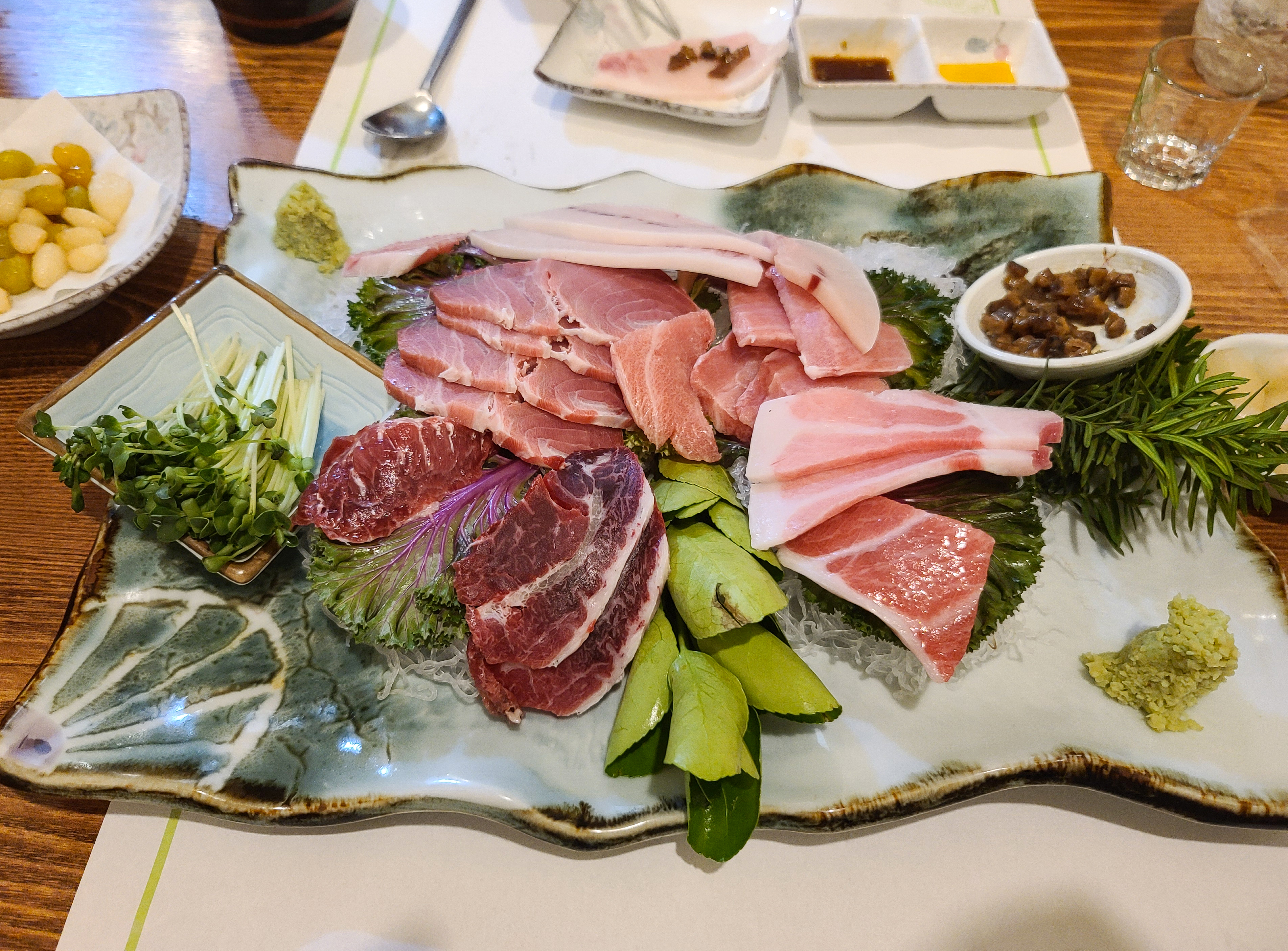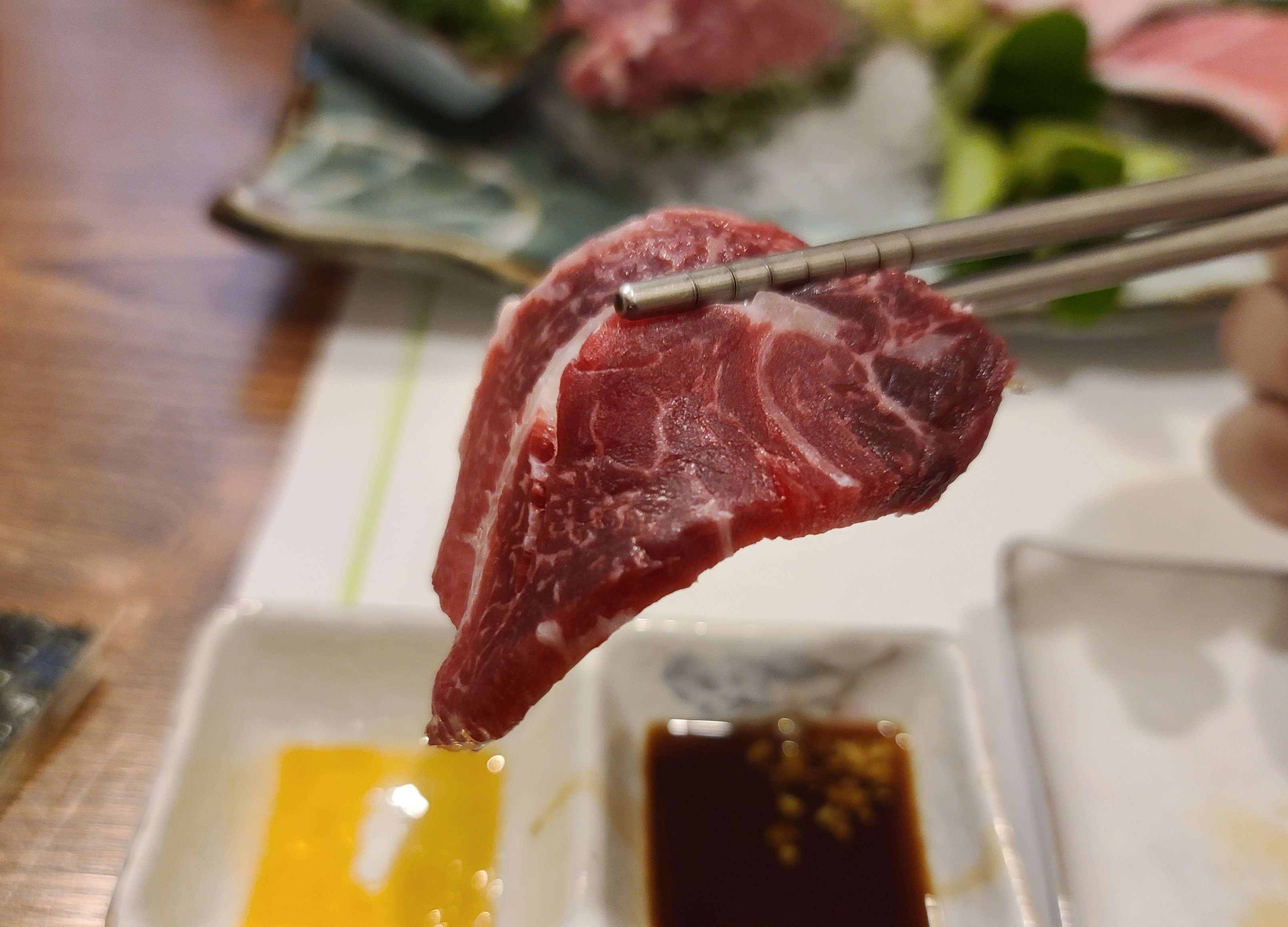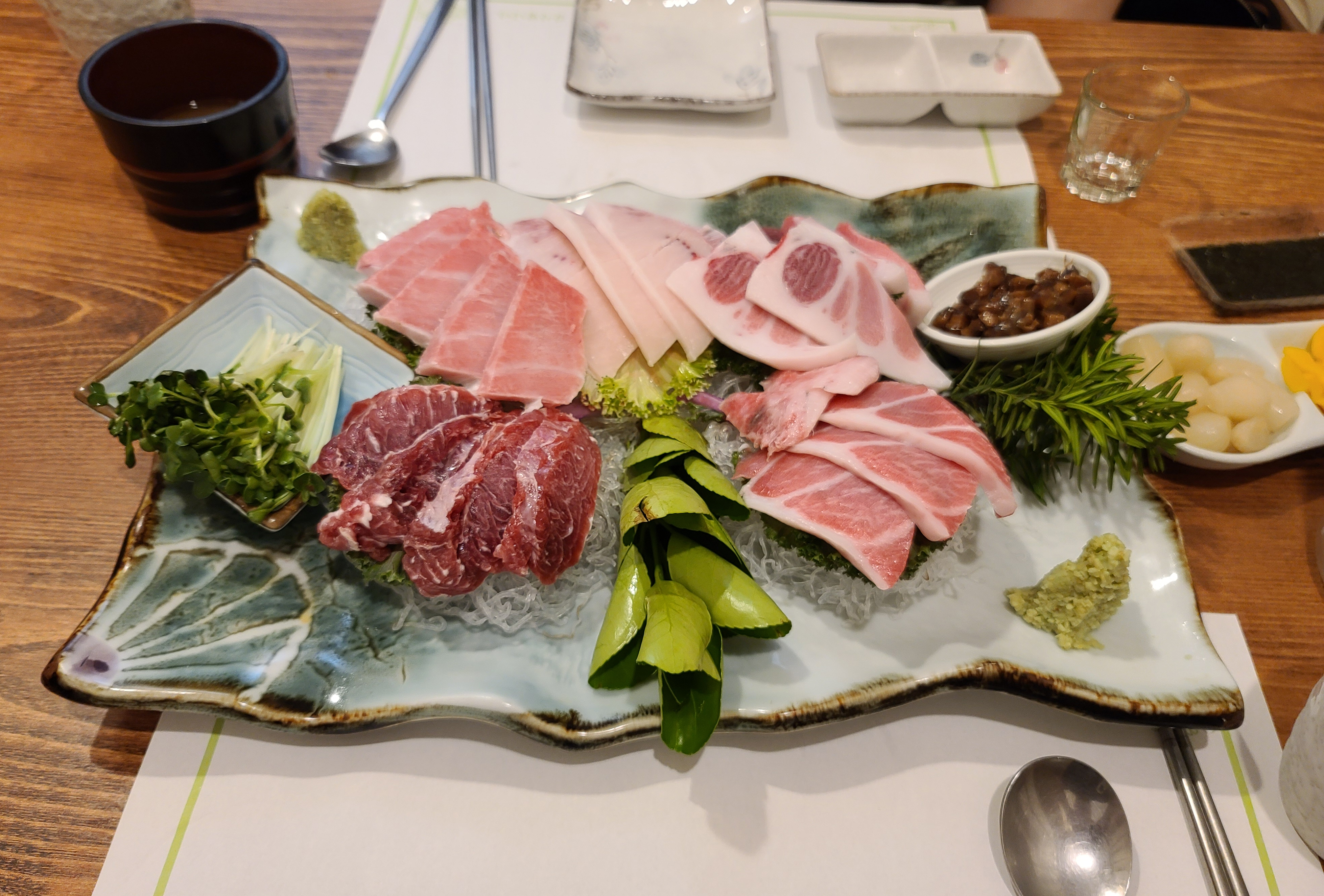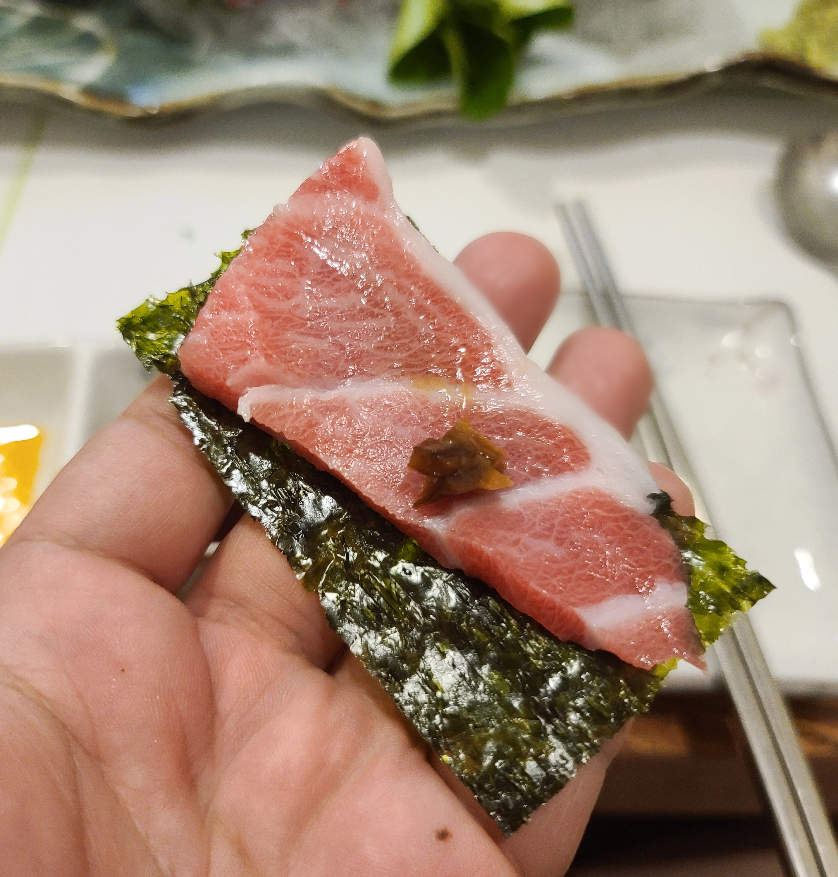 참치는 전체적으로 기름진 생선이지만, 부위별로 다양한 맛을 보여주는 물고기죠. 육고기로 치자면 소고기와 비슷한 느낌인데, 실제 식감이나 맛도 소고기 느낌이 나기도 했습니다. 부위에 따라 기름장에 찍어먹거나, 고추냉이를 곁들인 간장에 찍어먹기도 했습니다.