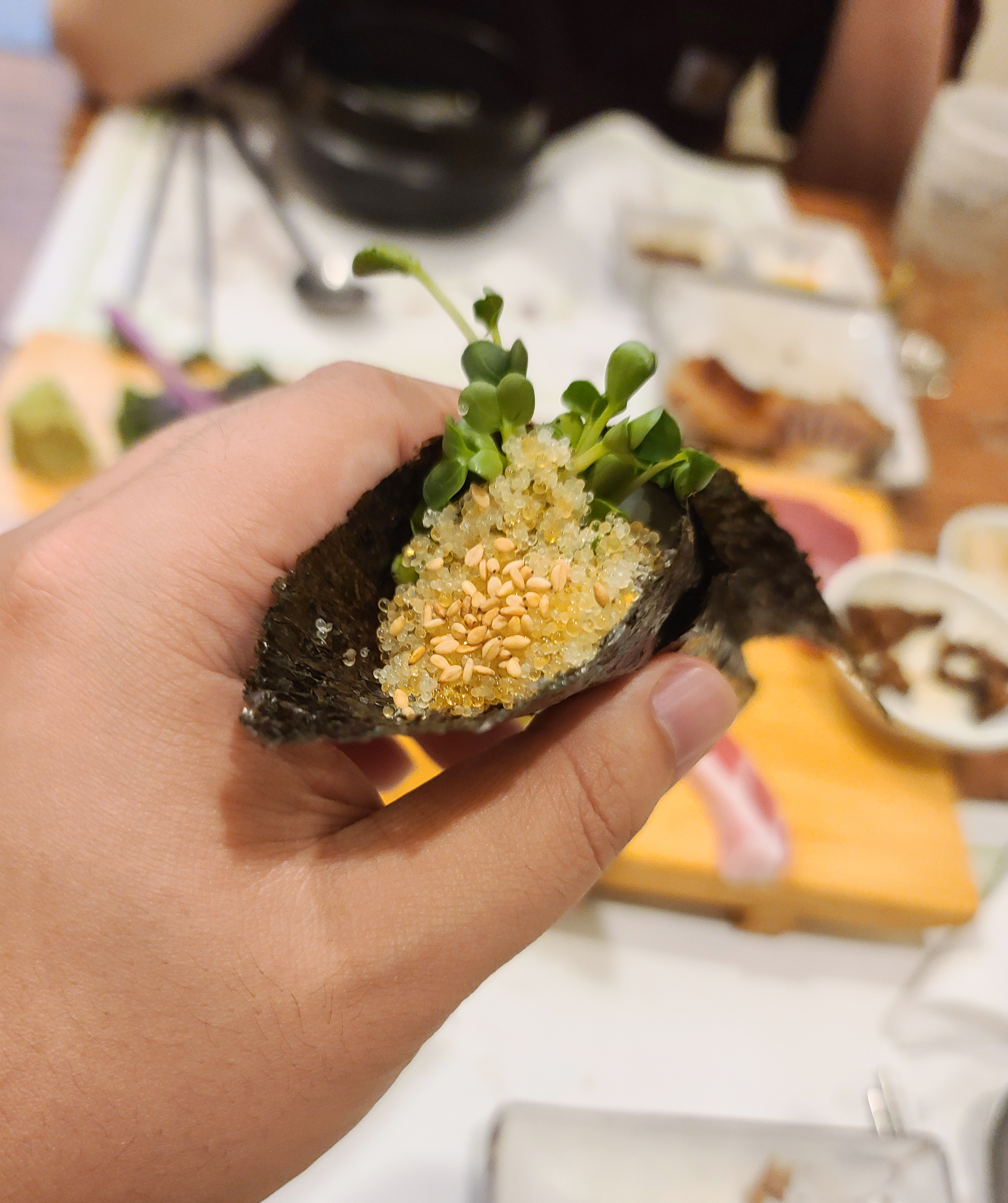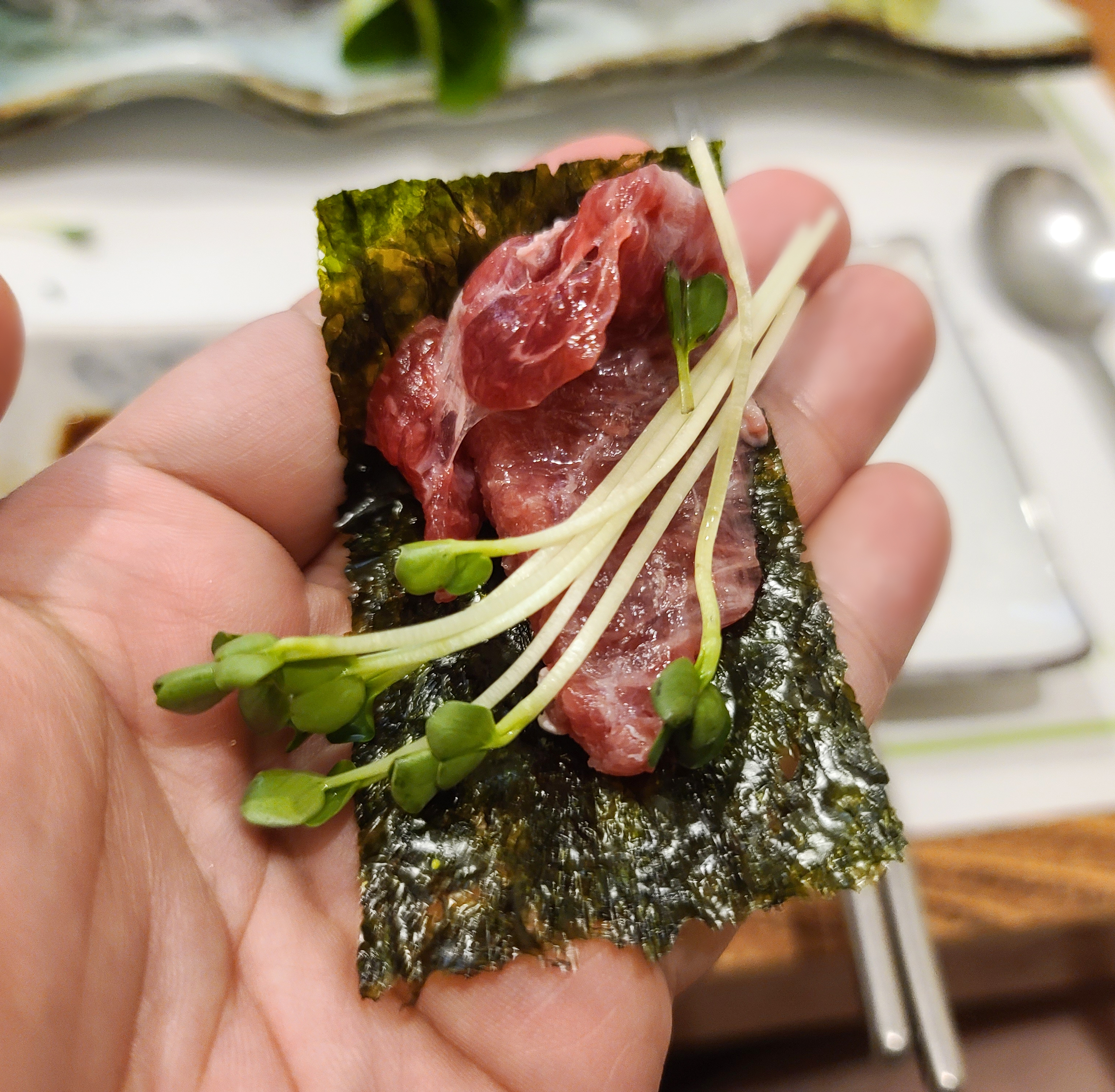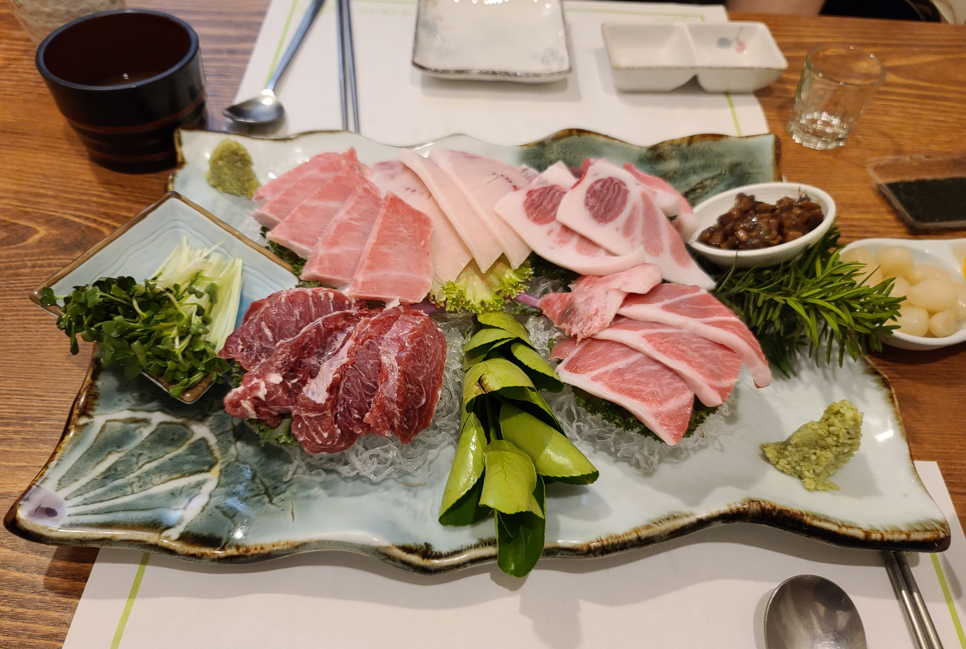 특히 고추냉이 표고버섯은 참치 어느 부위에나 잘 어울리는 매력을 지닌 마성의(?) 메뉴였죠. 참치 부위들도 고급진 부위들로 제공되었고, 가급적 재료 본연의 맛을 느끼는 것이 더 좋았고, 기호에 따라서 김이나 새싹채소를 곁들여서 싸 먹어도 맛있었습니다.