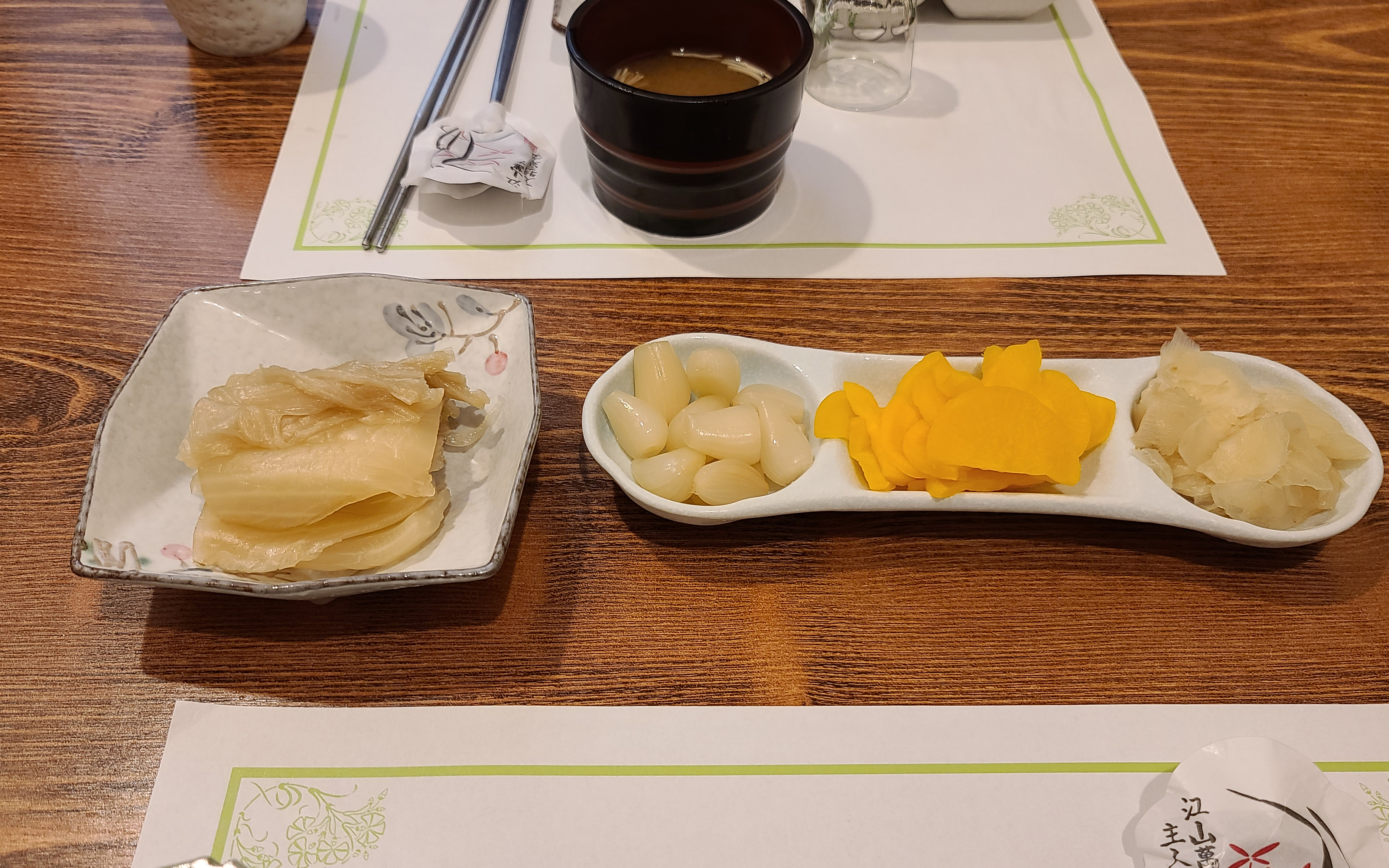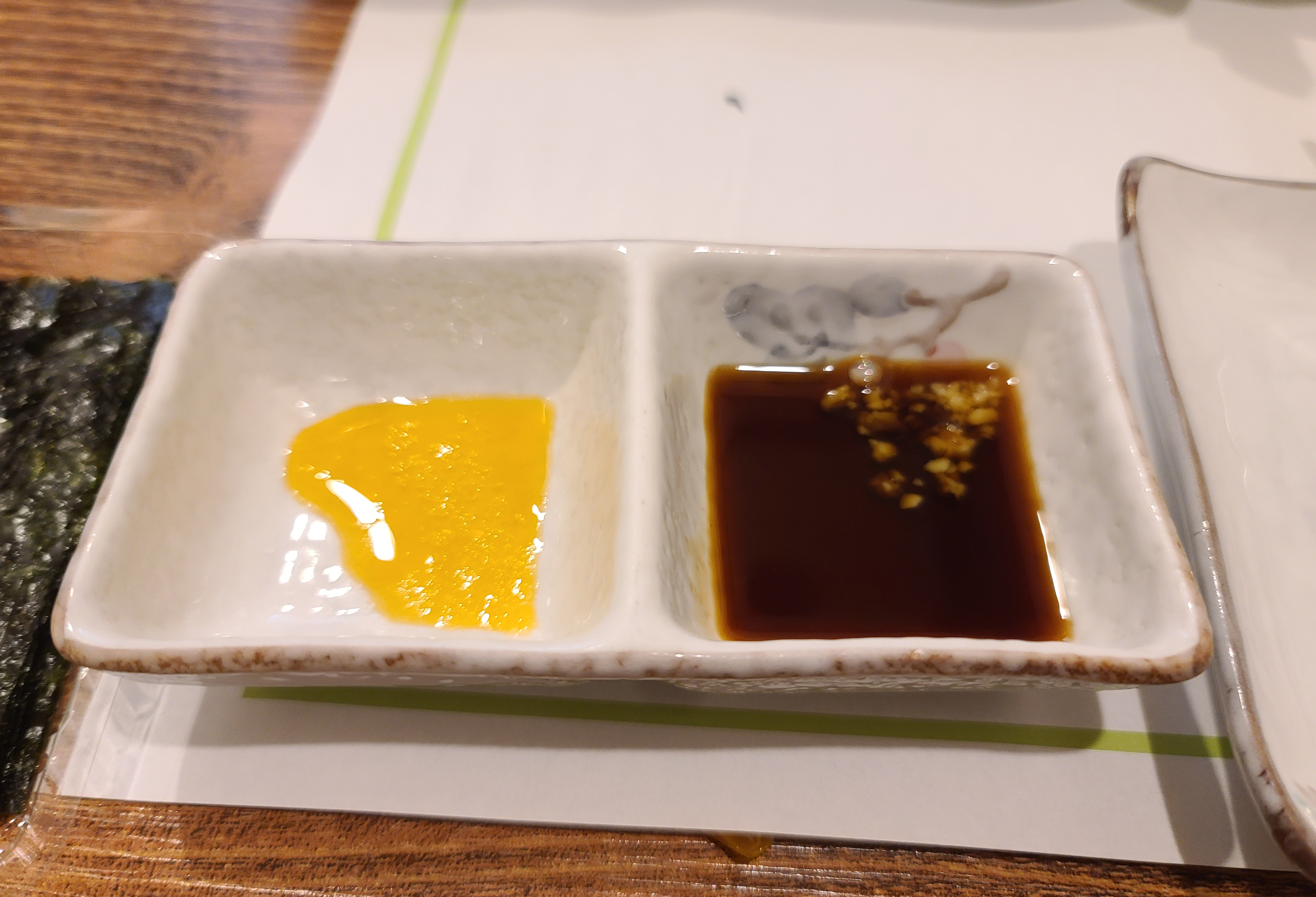 기본 반찬으로 미소장국과 백김치, 락교, 단무지, 생강, 참치를 찍어먹을 소스가 나왔습니다. 나오는 것들은 55,000원이라는 가격 대비 단출해 보였는데, 생각해보면 아무래도 주 재료인 참치가 좋으면 소스나 다른 반찬들이 화려하지 않아도 맛있게 식사할 수 있죠.