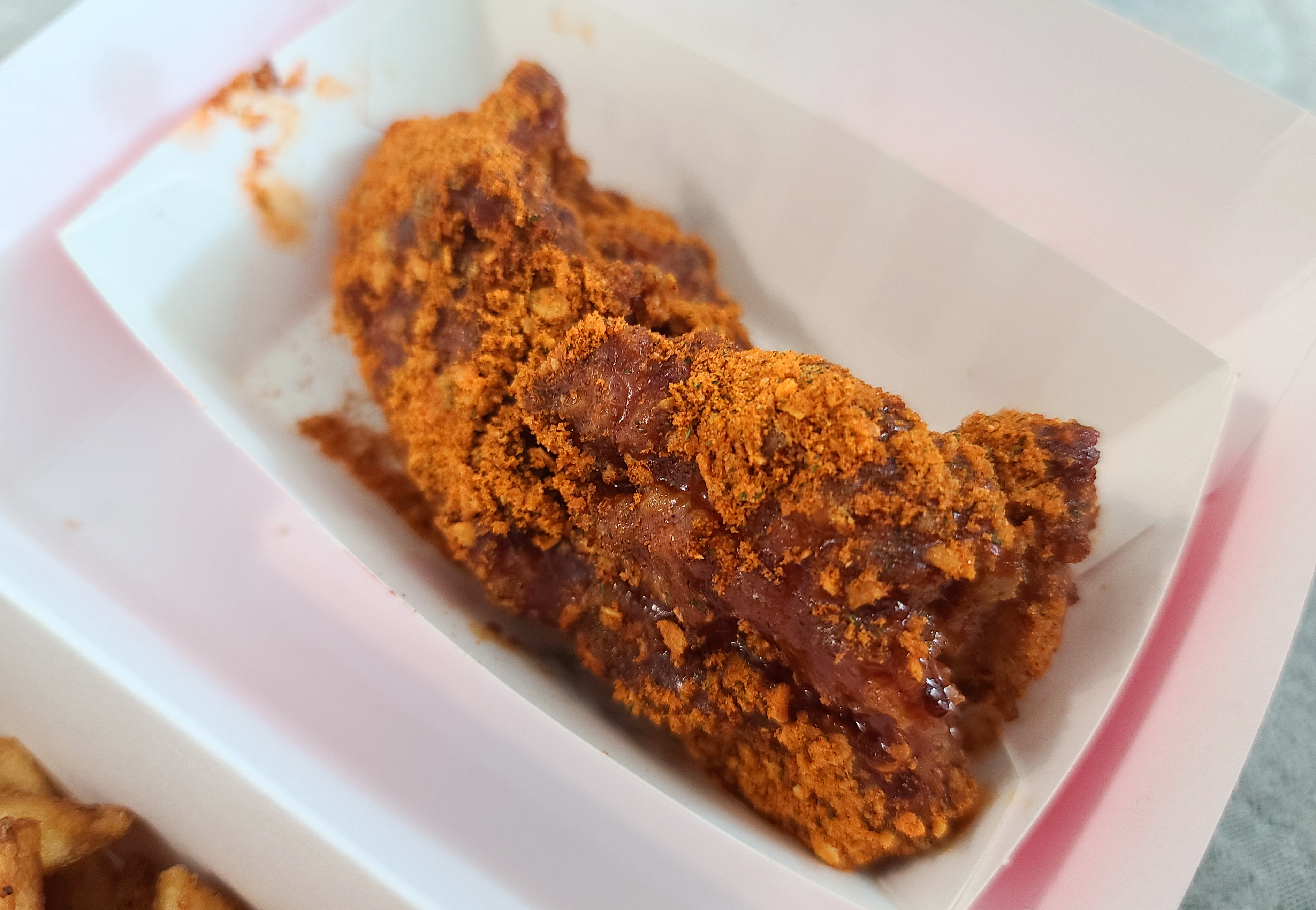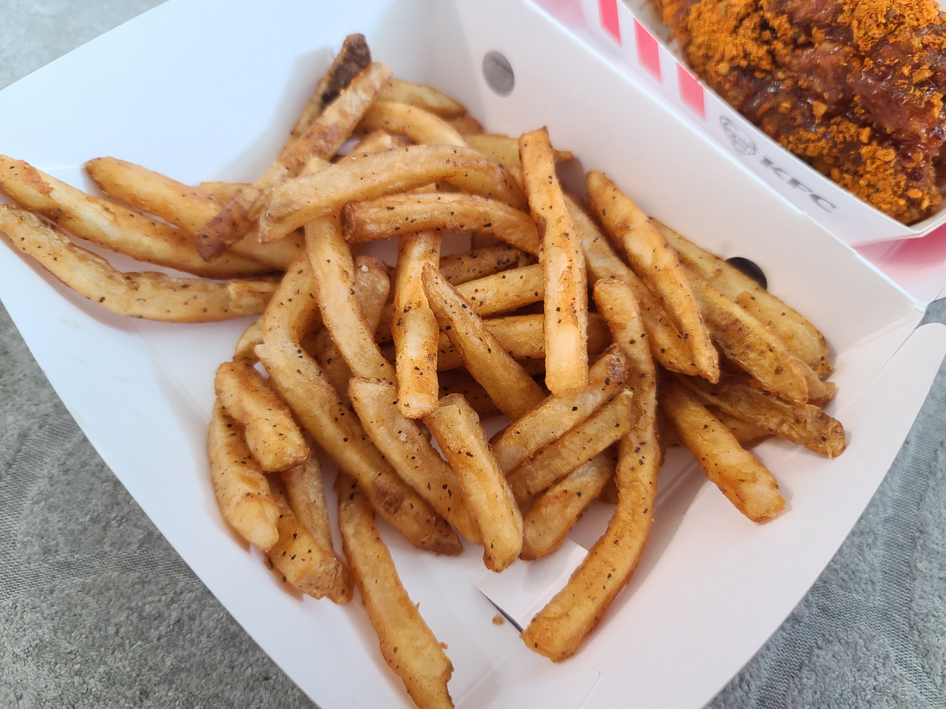 고추콰삭치킨과 케이준후라이의 모습입니다. 참고로 블랙라벨 치킨은 햄버거의 패티로 사용될 예정이니 남겨둡니다. 감자튀김도 같이 남겨두면 좋습니다. 이제 KFC의 블랙라벨폴인치즈버거를 준비해줍니다.