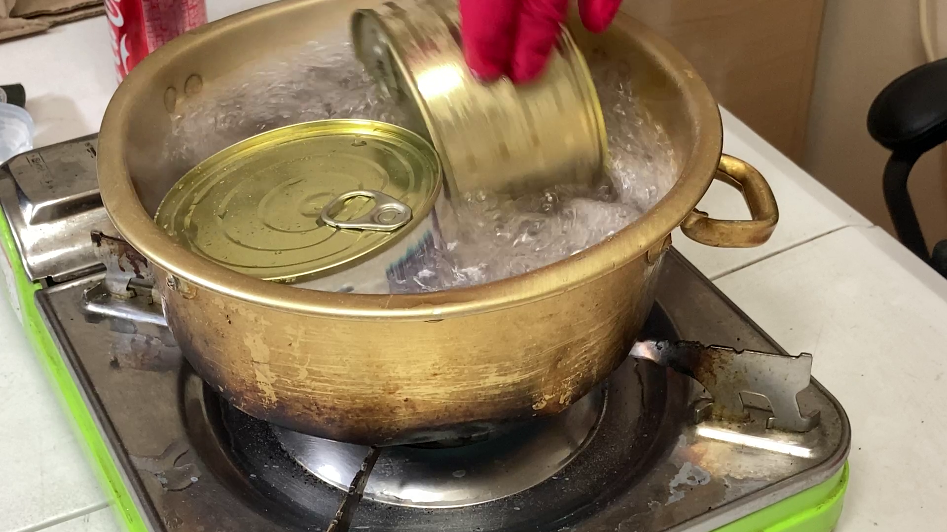 햄버거와 감자볶음의 조리방법(?)은 통조림째 넣고 끓여주면 되었습니다. 정확히 몇 분간 끓이거나 명확한 안내는 없었기에 적당히 감으로(?) 익혀준 다음 꺼내 주었습니다. 참고로 햄버거 통조림은 처음 개봉하고 바로 섭취하지 말고 조금 열어서 놔두라고 하더라고요.