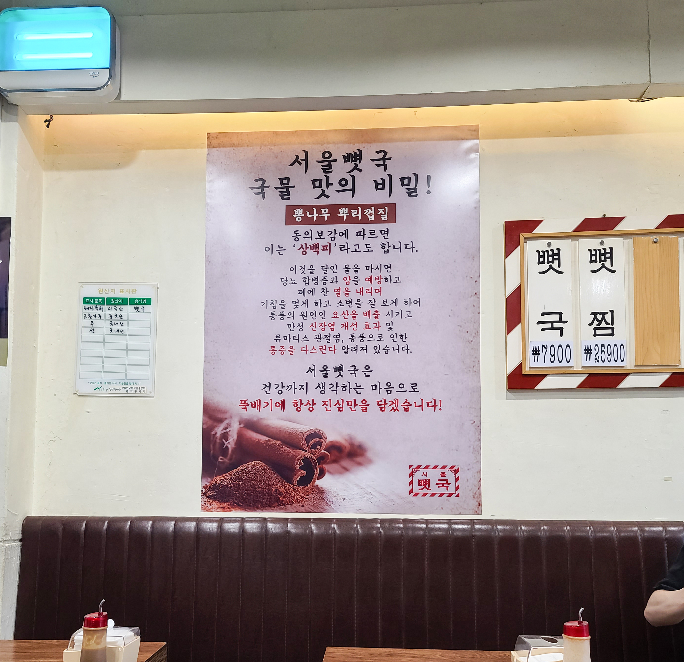 신림동 서울뼛국은 상백피라 불리는 뽕나무 뿌리껍질을 이용하여 국물을 낸다고 합니다. 메뉴는 뼛국, 뼛찜이 있었고 금액은 각각 7,900원 25,900원으로 구성되어 있었습니다. 저는 이른 저녁으로 먹기 위해 뼛국으로 주문했습니다.