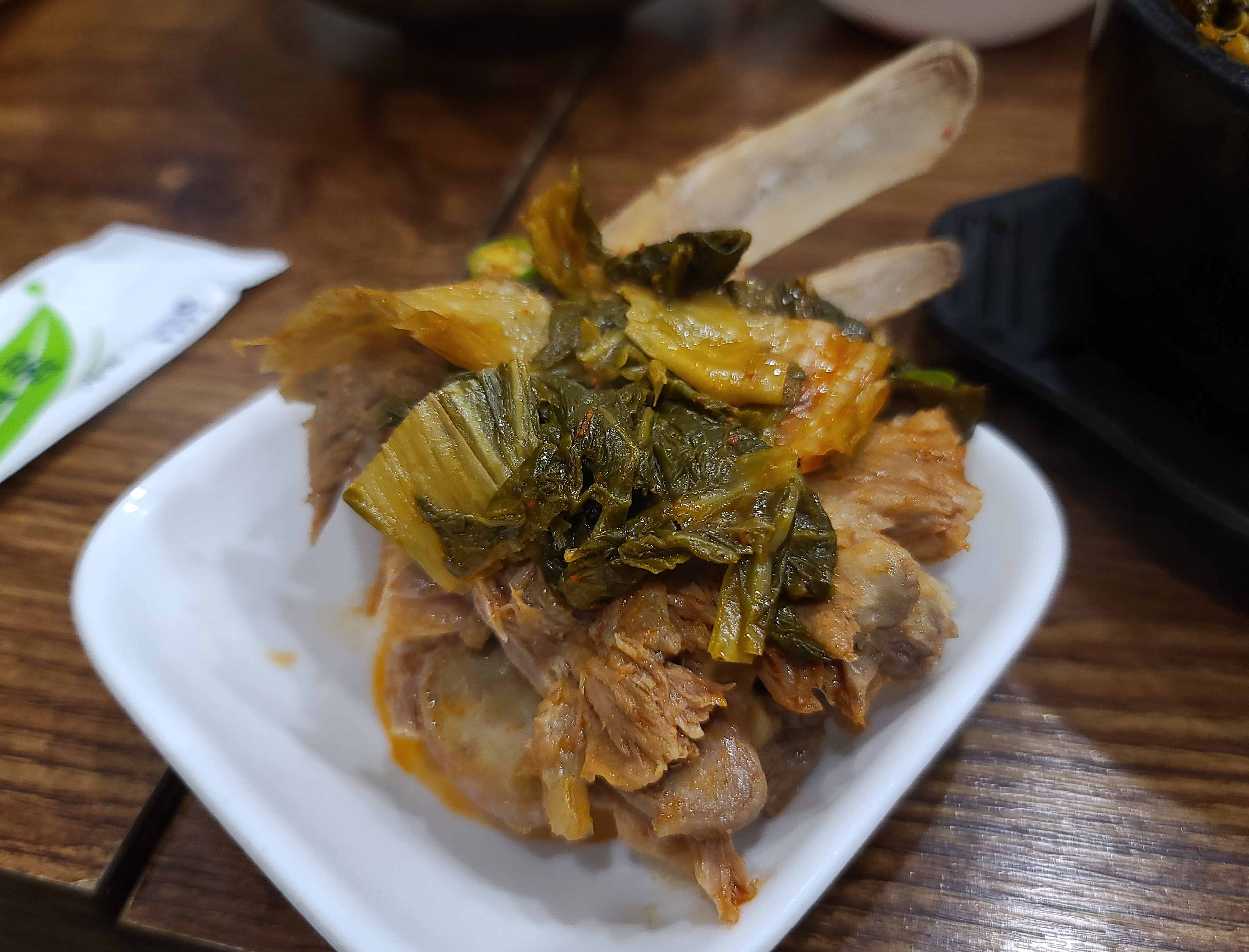 뼈에 붙은 살코기를 건져먹고 추가로 국물에 밥도 말아서 먹었습니다. 고기는 부드럽게 잘 삶아졌고 잡내가 안 나서 맛있게 먹을 수 있었습니다. 밥은 먹다가 부족하면 추가로 더 가져다 먹을 수 있었습니다.