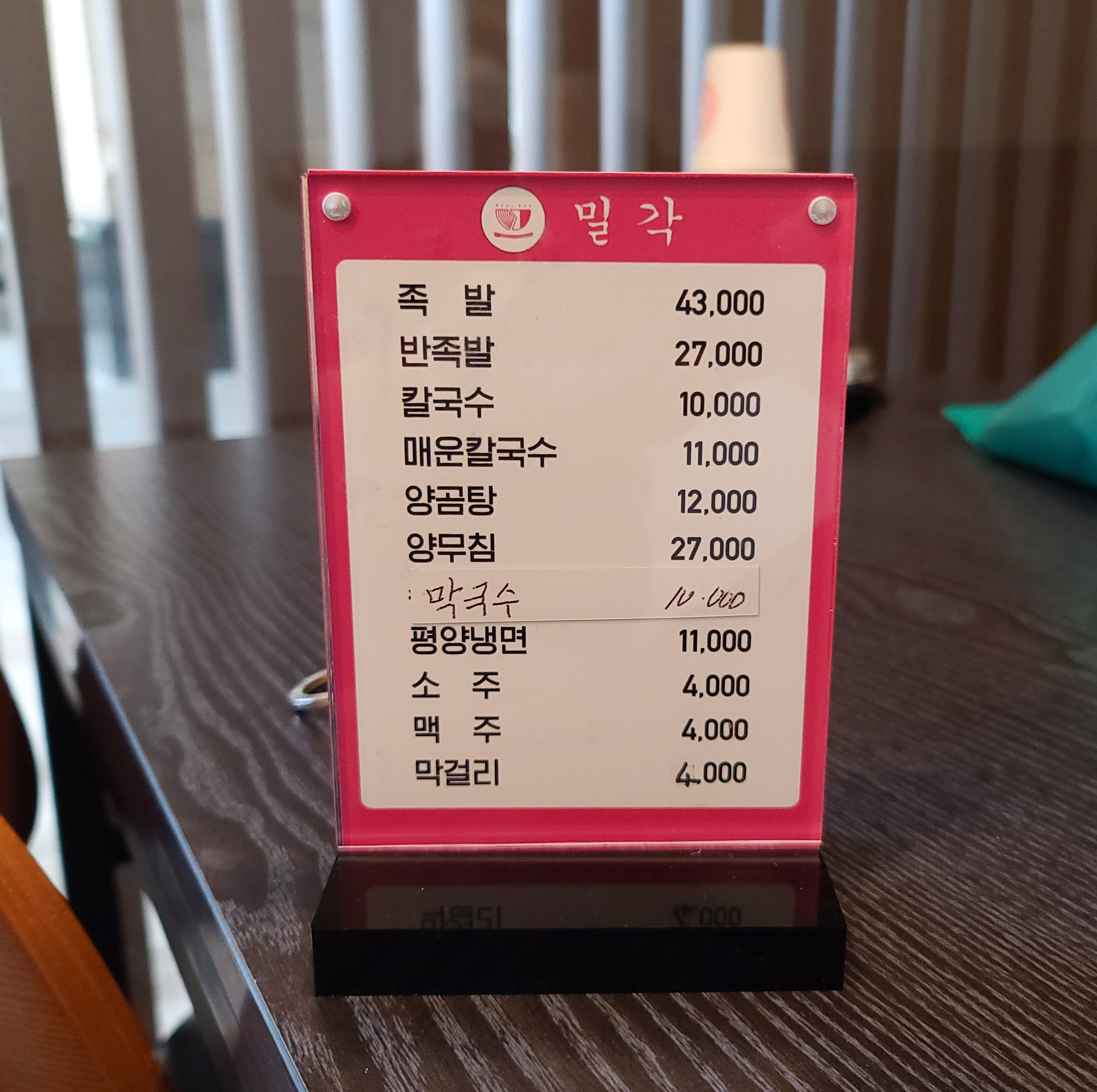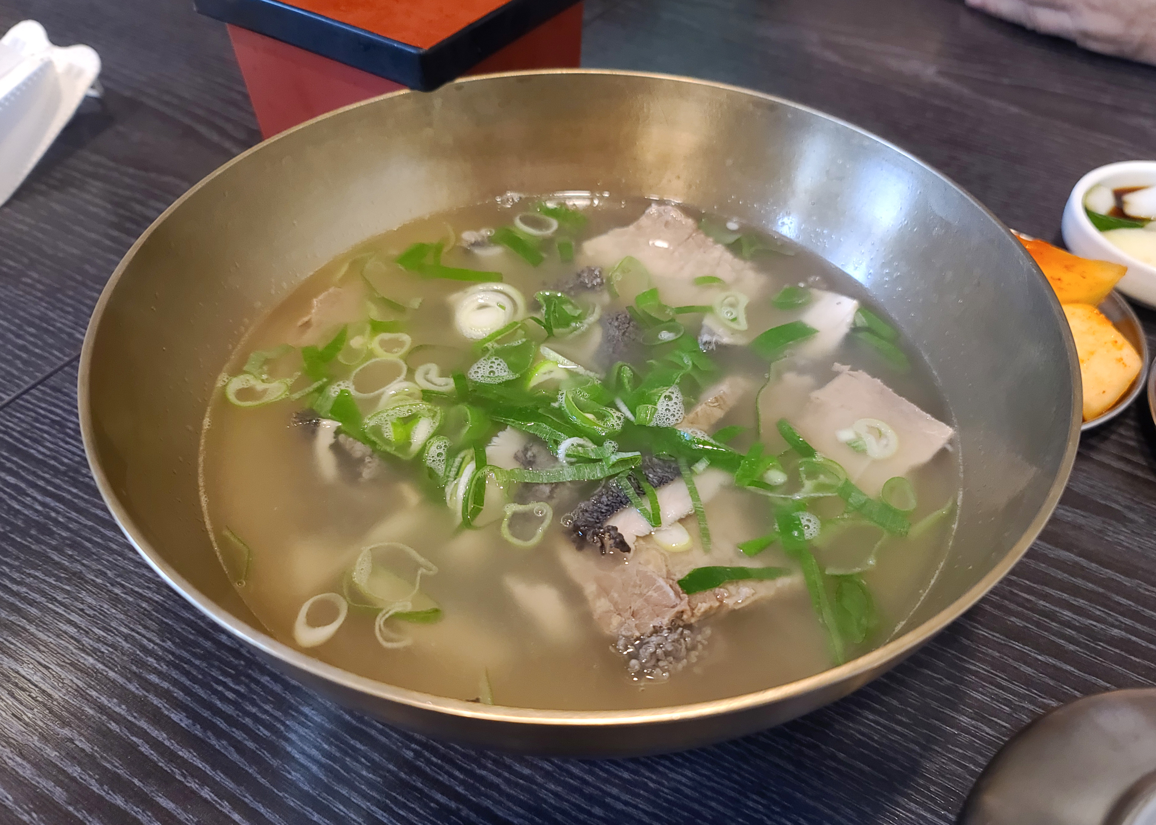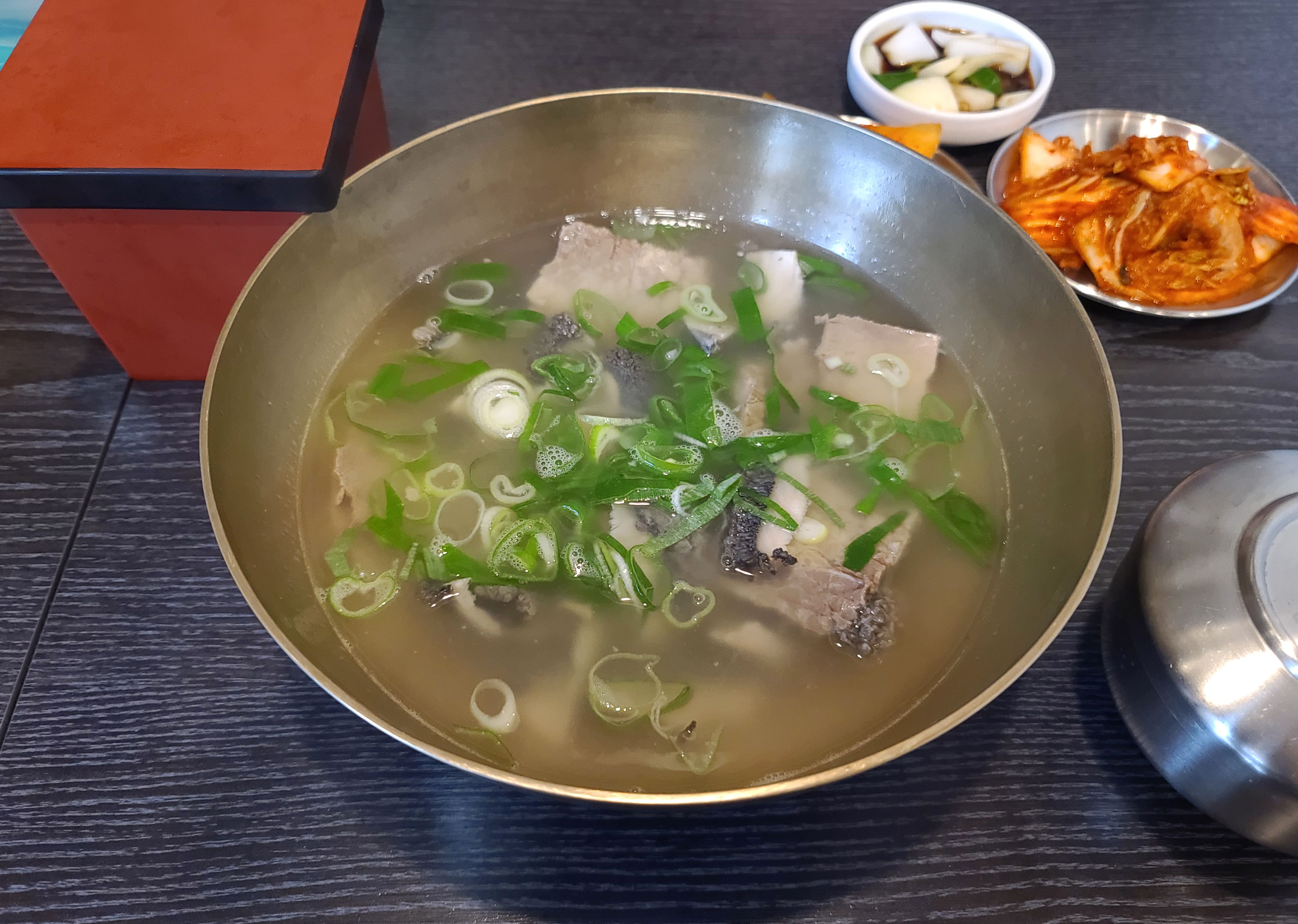 가락동 밀각의 메뉴는 앞서 소개해드린 것처럼 족발과 칼국수, 매운칼국수, 양곰탕, 양무침, 막국수, 평양냉면 등을 판매하고 있었습니다. 저는 양곰탕을 주문하여 먹었습니다.