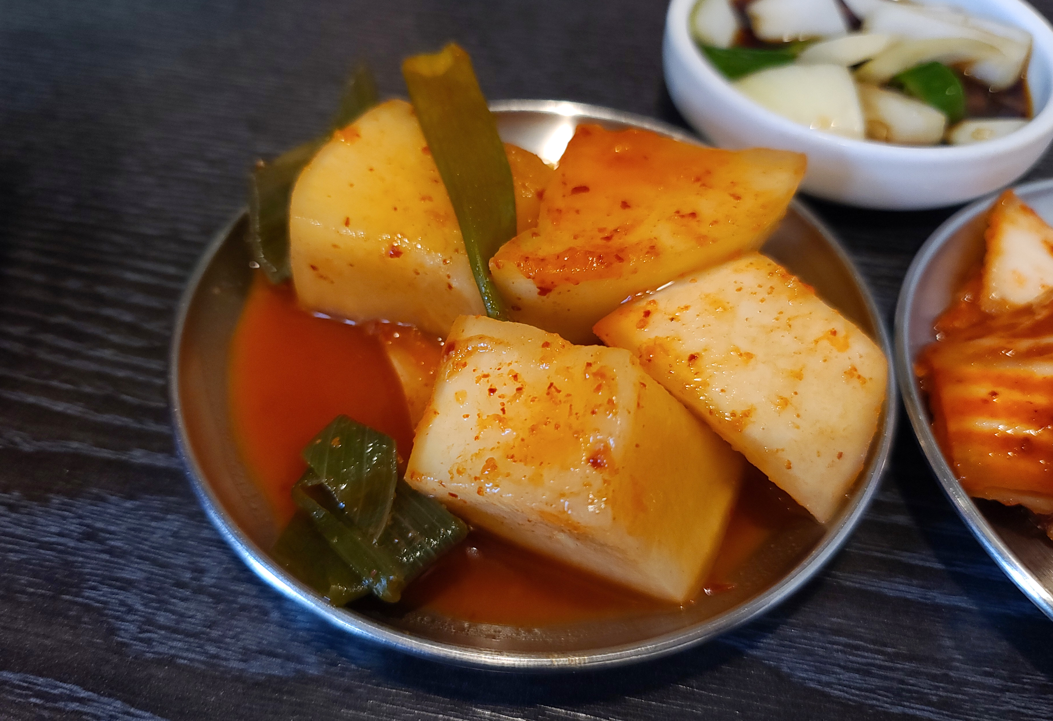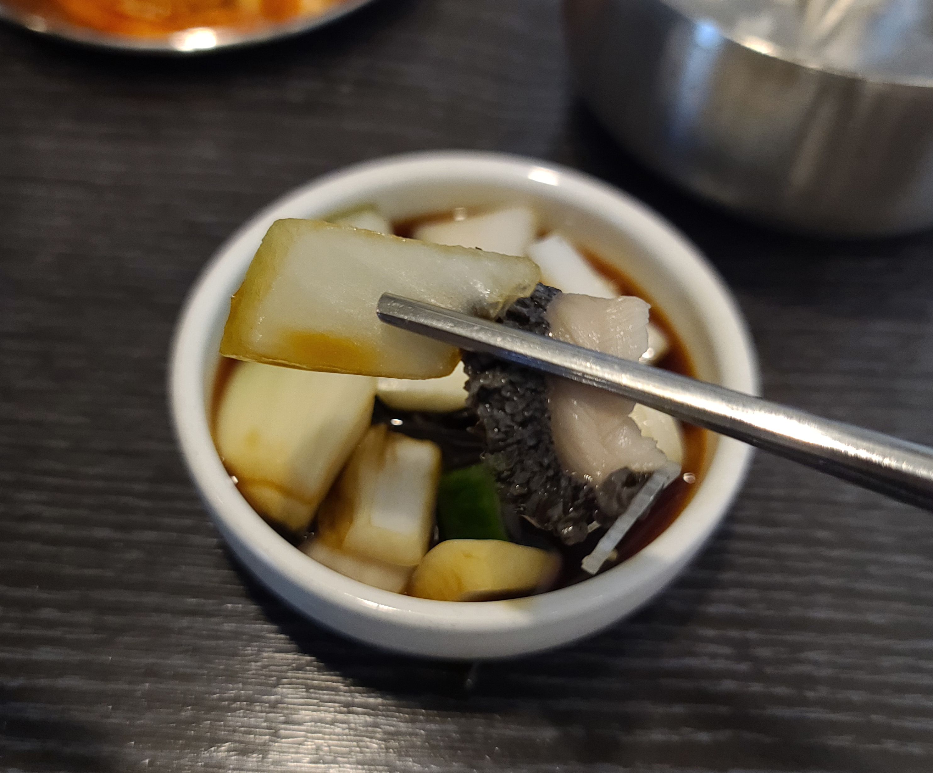 밀각의 양곰탕은 맑은 국물에 소의 양과 고기가 넉넉하게 들어있었고, 국물은 심심한 듯 하지만 육향이 잘 배어 나오는 그런 맛이었습니다. 공기밥과 배추김치, 섞박지와 함께 먹어도 맛이 있었고, 심심한 국물의 양곰탕은 섞박지 국물과 함께 먹어도 맛있더라고요.
