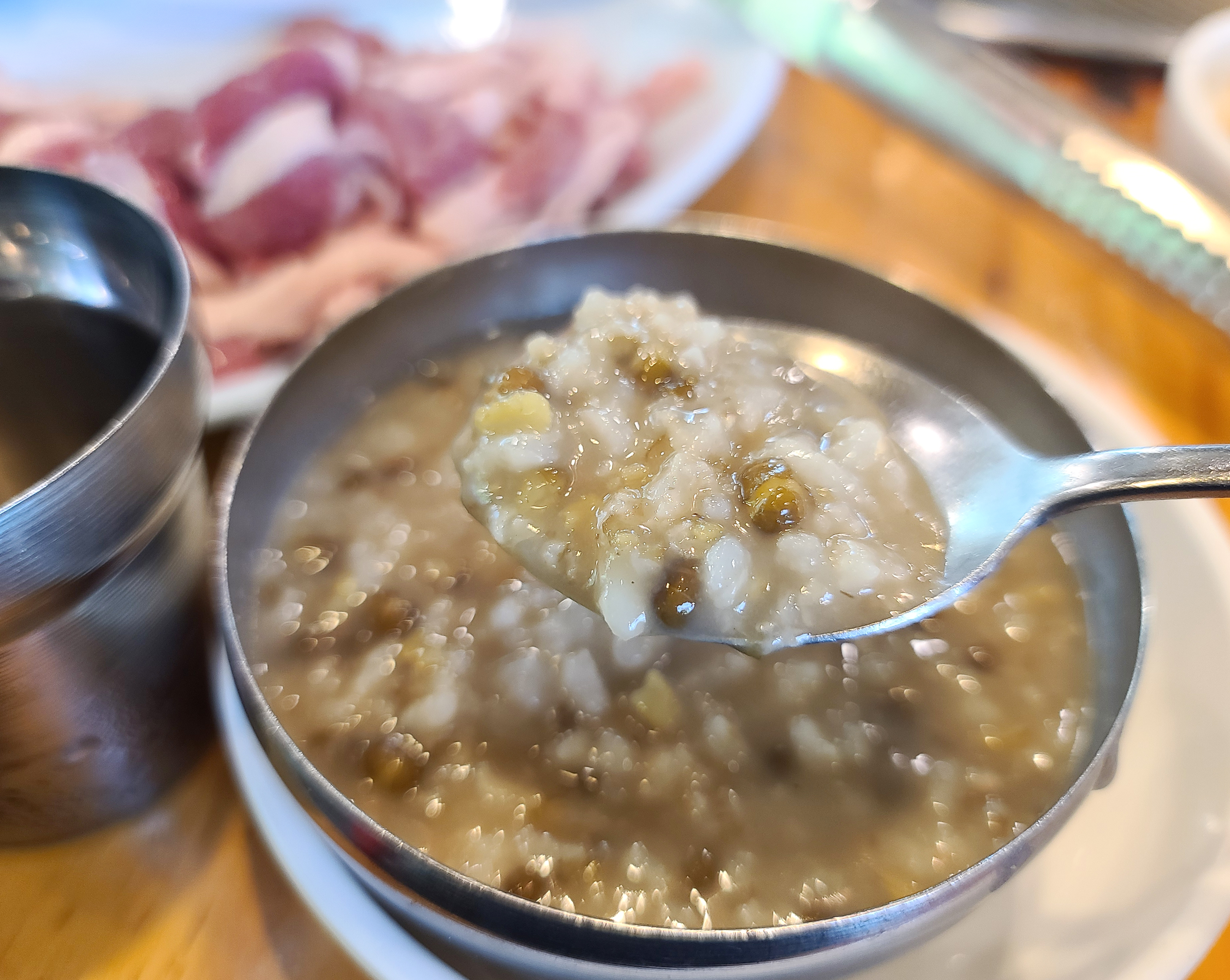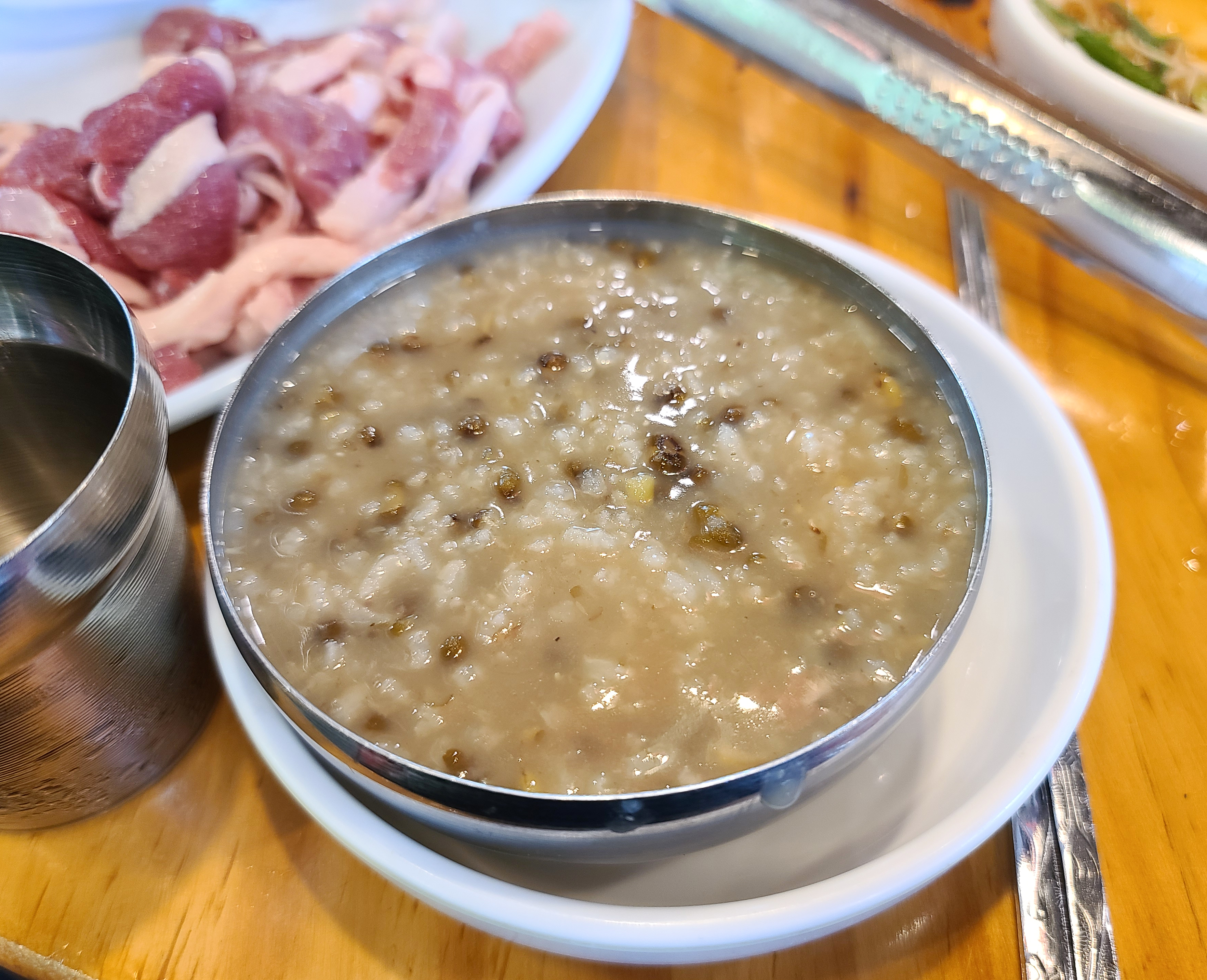가나안덕은 식사 후 후식으로 국수나 녹두죽을 먹을 수 있습니다. 가나안덕의 멸치로 국물 맛을 낸 국수도 맛있지만 저는 개인적으로 녹두죽을 더 추천드리고 싶습니다. 녹두죽은 담백 고소한 맛이 자극적이지 않아서 좋더라고요. 소금 간을 약간 해서 먹어도 맛있지만, 저는 심심하게 먹는 것도 좋았습니다.