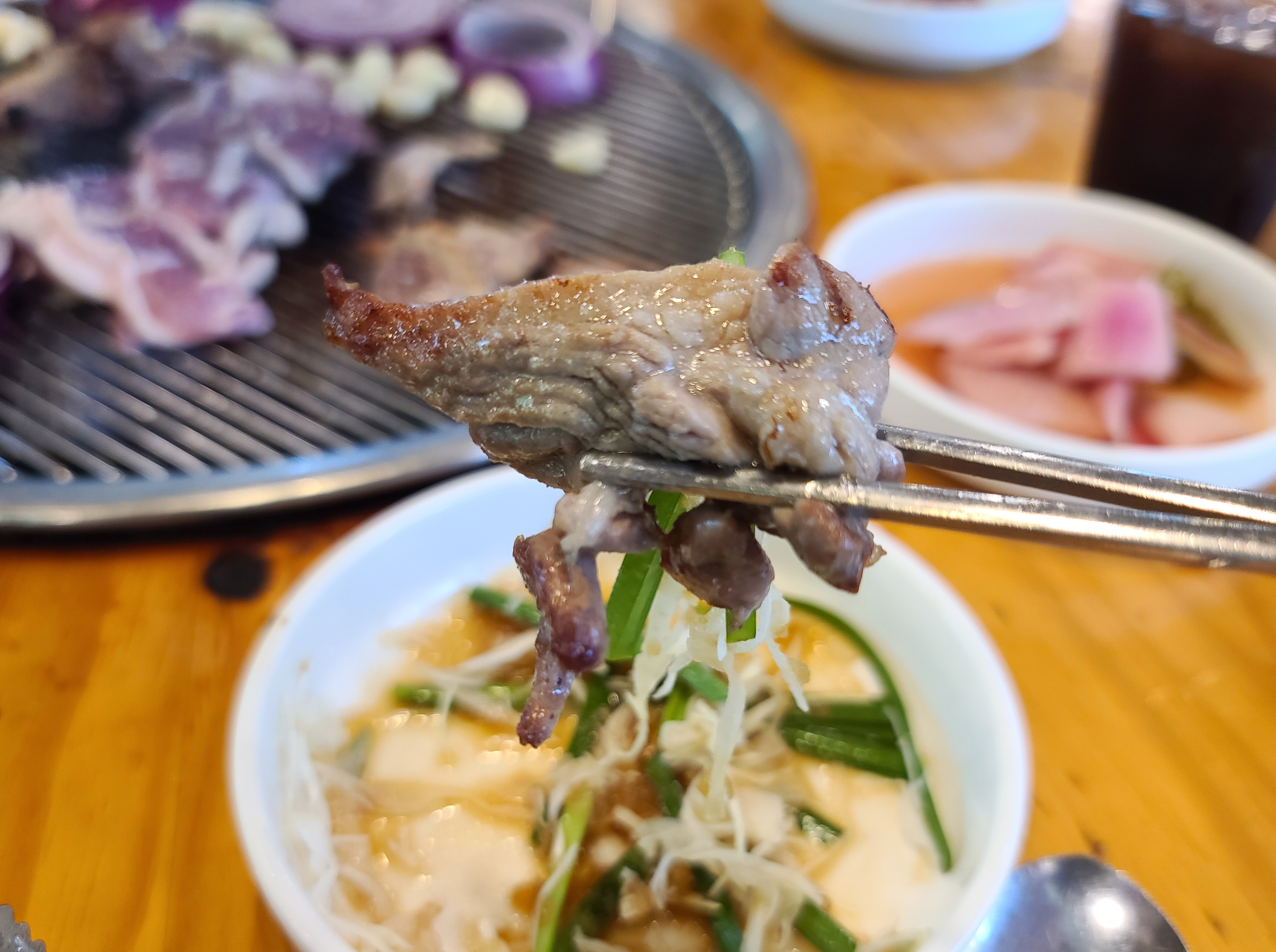 오리고기는 확실히 숯불에 구워 먹는 게 맛있는 것 같습니다. 담백한 식감의 고기를 숯불향까지 입혀 노릇노릇 구워내면 아무리 먹어도 질리지 않는 그런 매력이 있습니다.