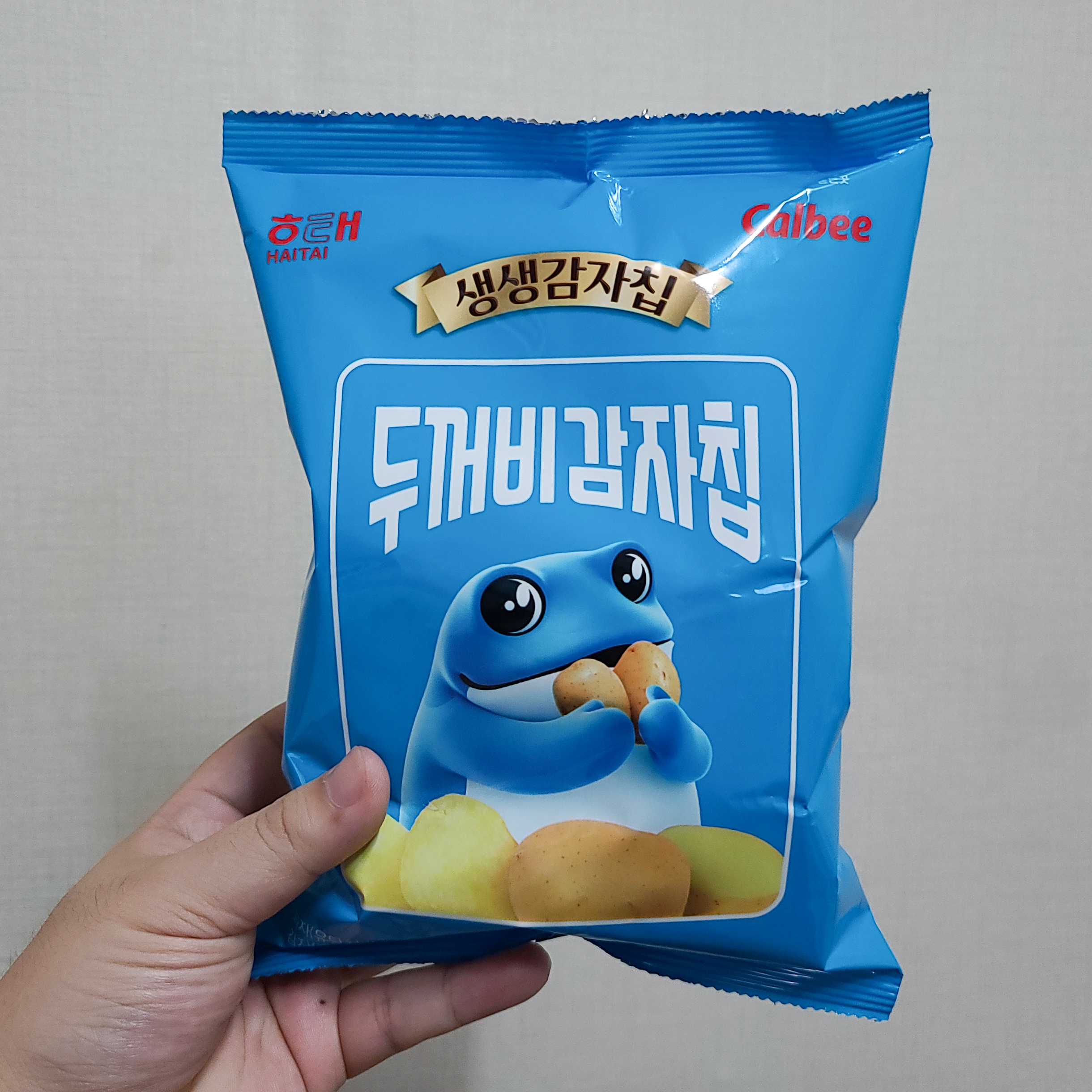 편의점에서 간단하게 한 끼 때우려고 도시락을 구입하고 간식으로 먹을 것을 찾아보다가 하이트진로의 파란 두꺼비 그림이 들어간 '두꺼비감자칩'이 눈에 띄어 구입했습니다.