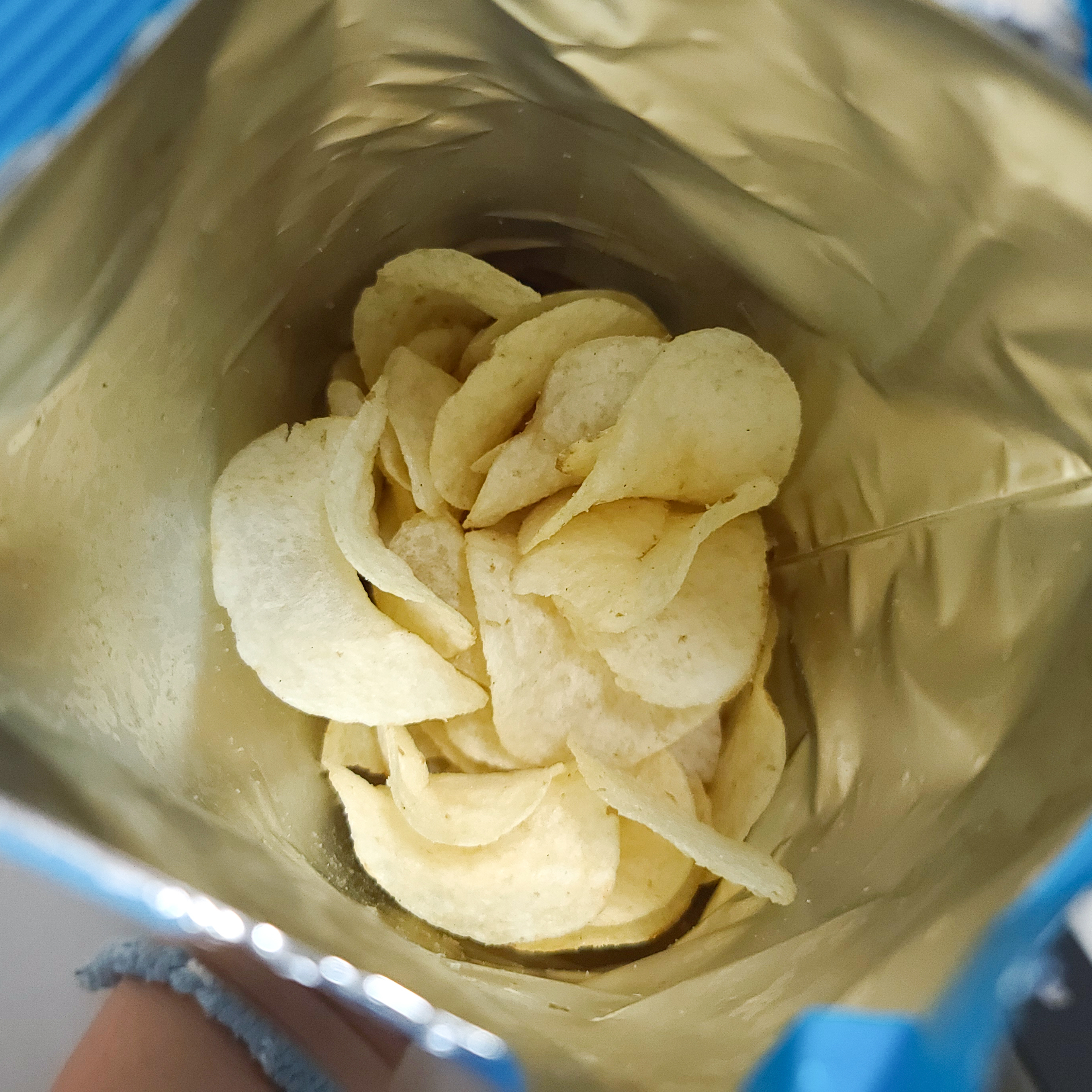 해태 두꺼비 감자칩 과자 봉지를 열어보니 과자가 위와 같이 들어있었습니다. 양이 넉넉하진 않았지만 평범한 감자칩의 모습이었습니다. 두꺼비 감자칩의 맛은 과연 어떨까요?